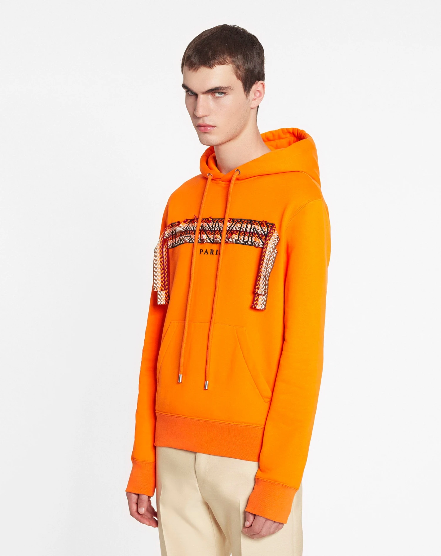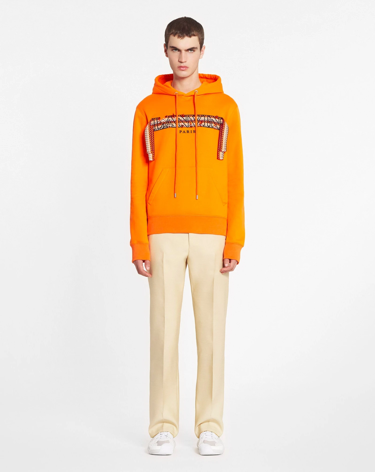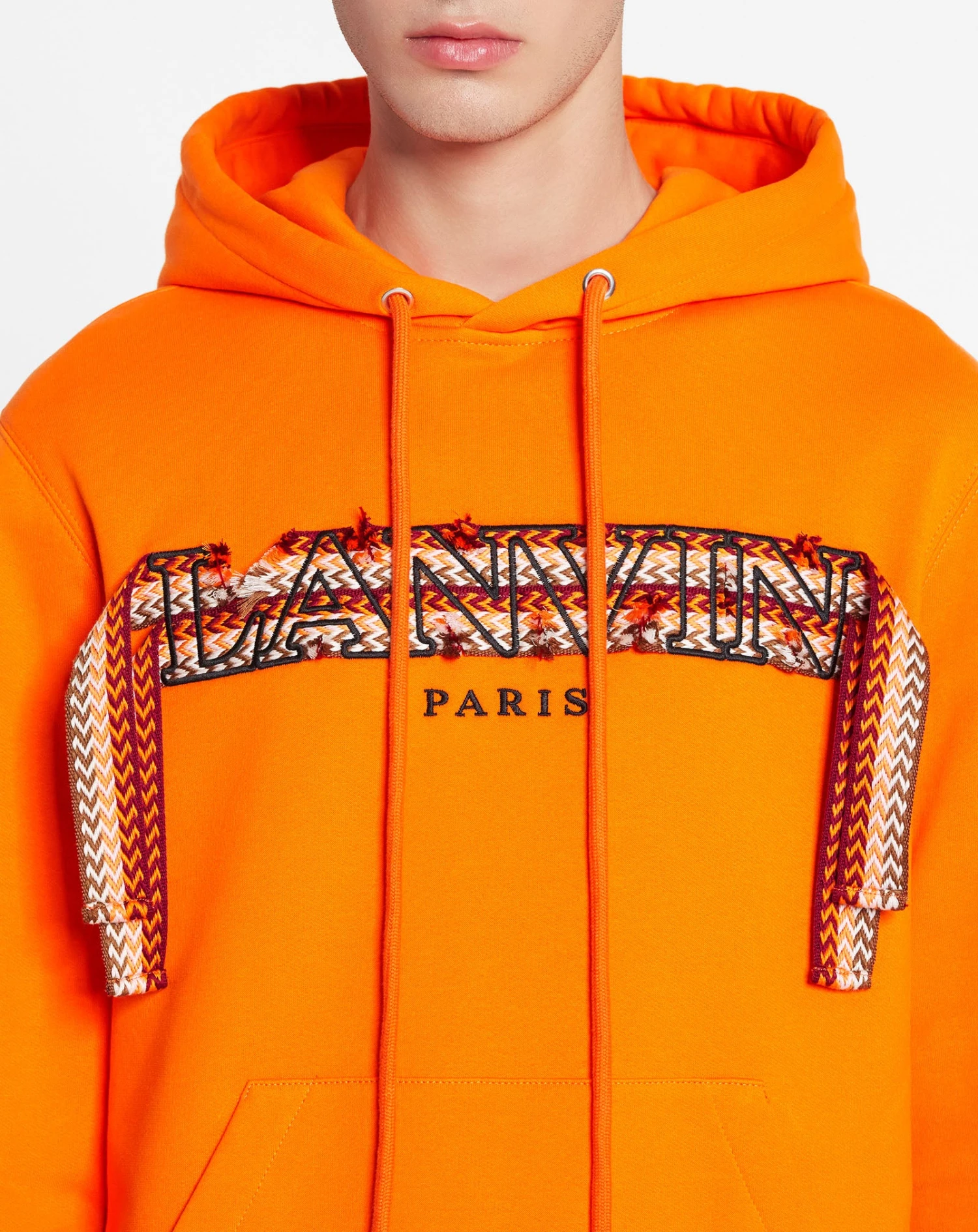 - Oversized cotton jersey hoodie decorated with an embroidered “Curb” Lanvin logo on the front and long, topstitched Curb laces