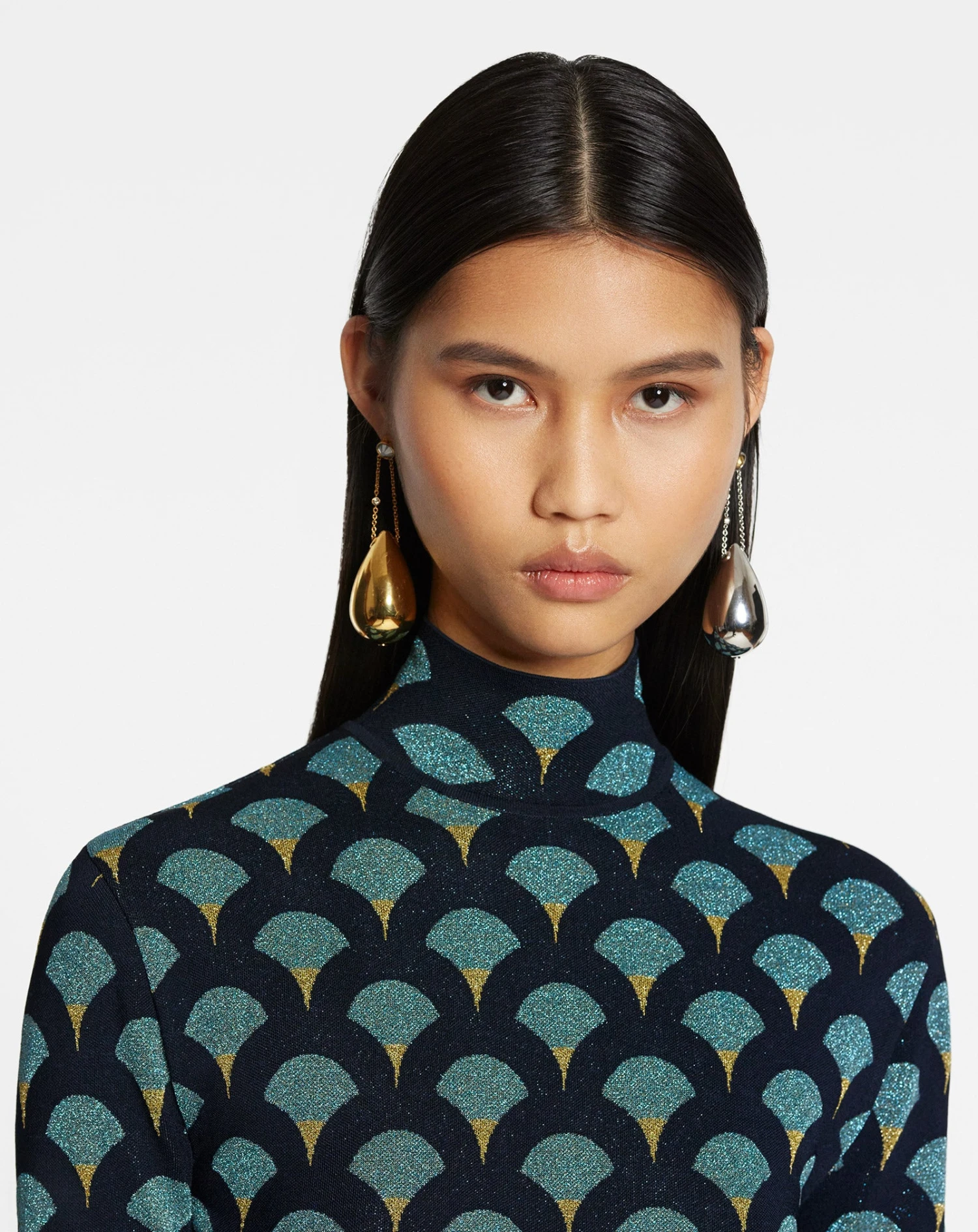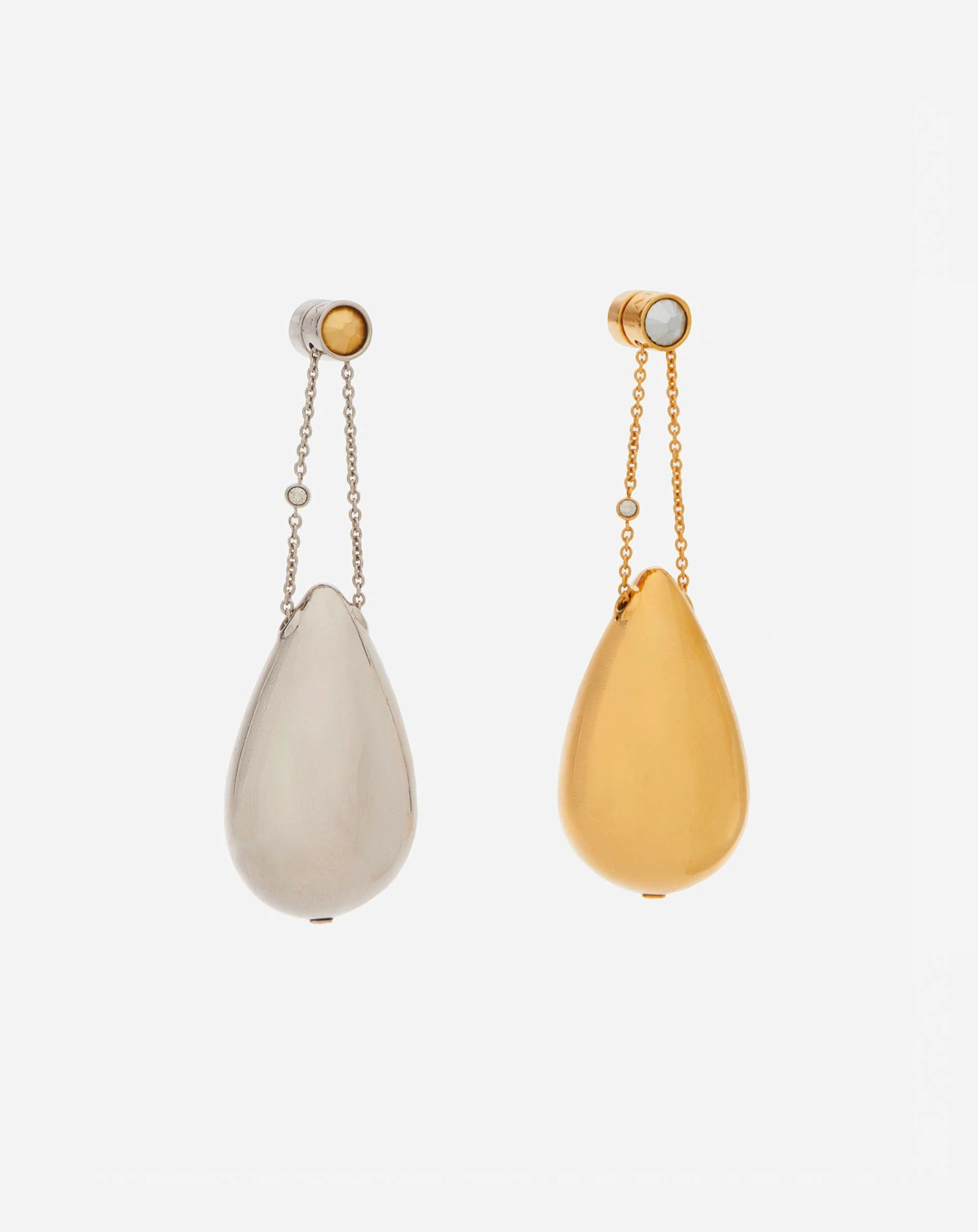 The Arpège jewelry line pays tribute to the iconic stopper of the Lanvin perfume. This season the line features large smooth drops like water drops, or spheres crowned with a rhinestone.