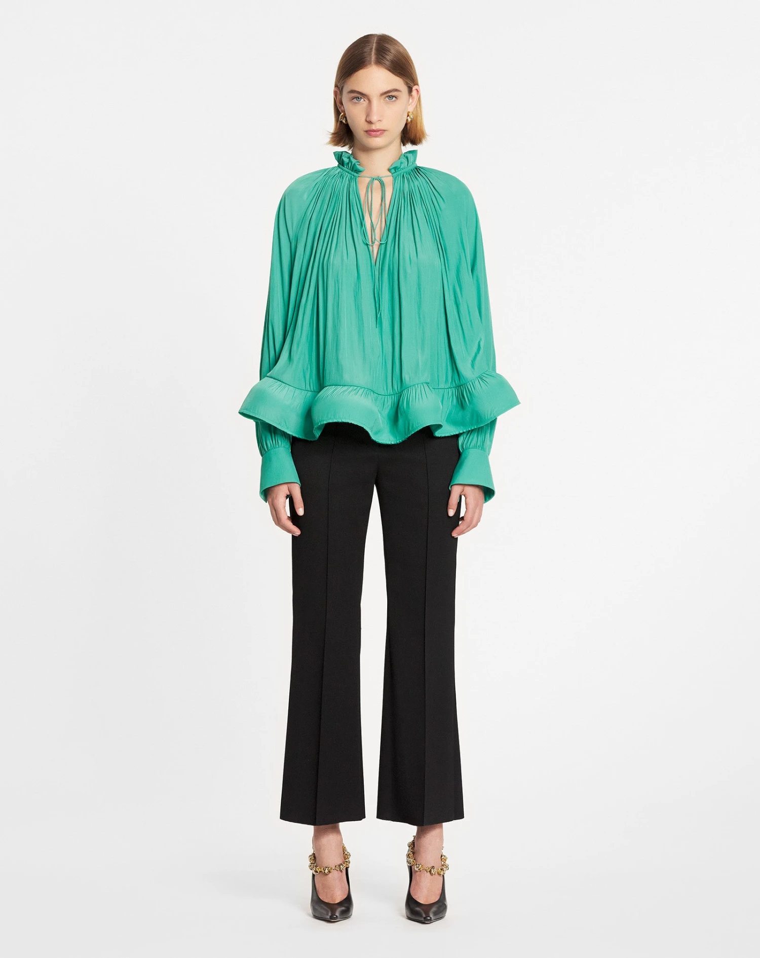 - Blouse with long sleeves and ruffles in flowing plain charmeuse