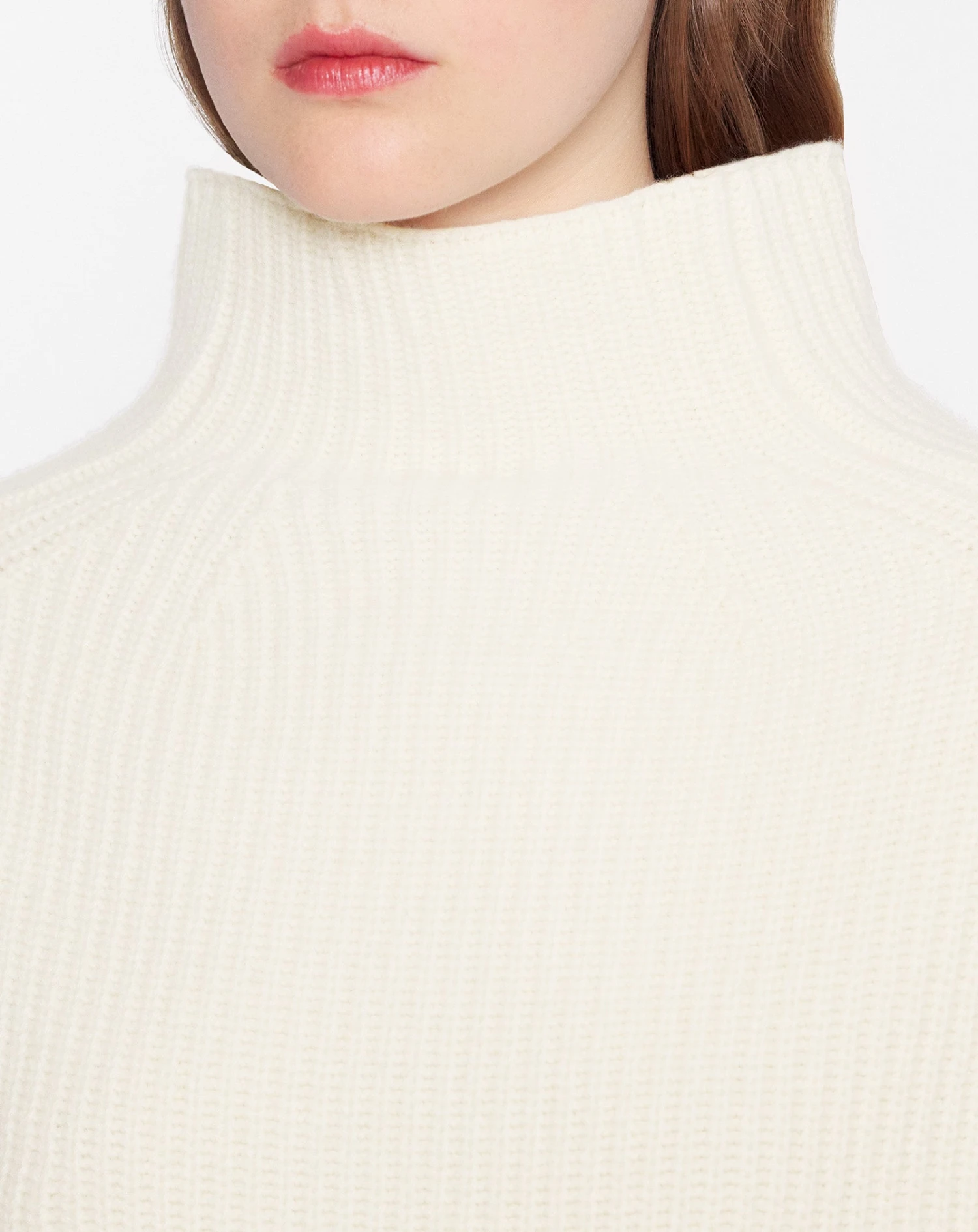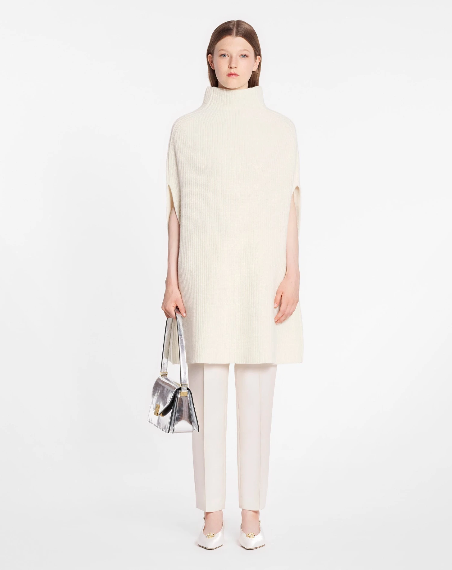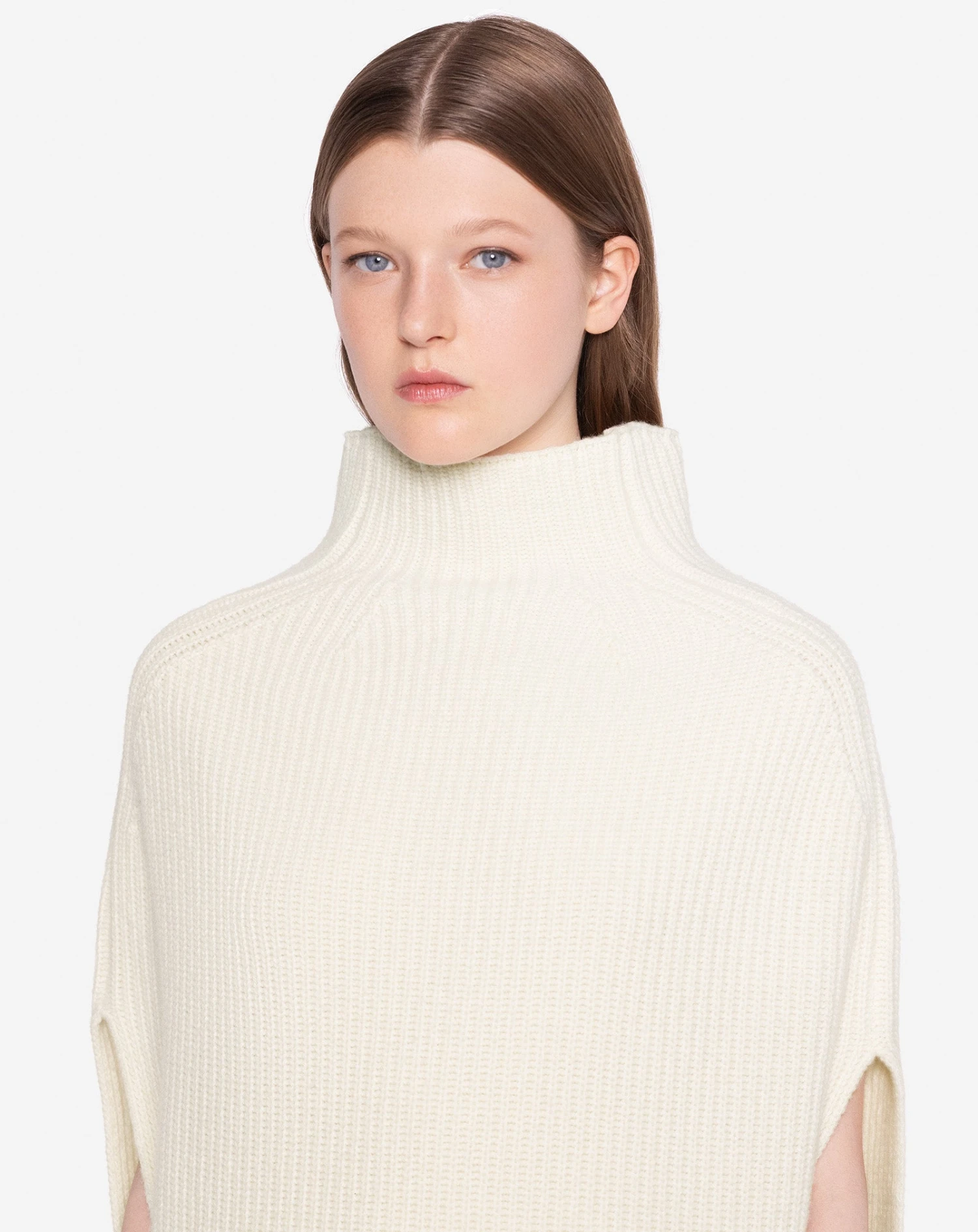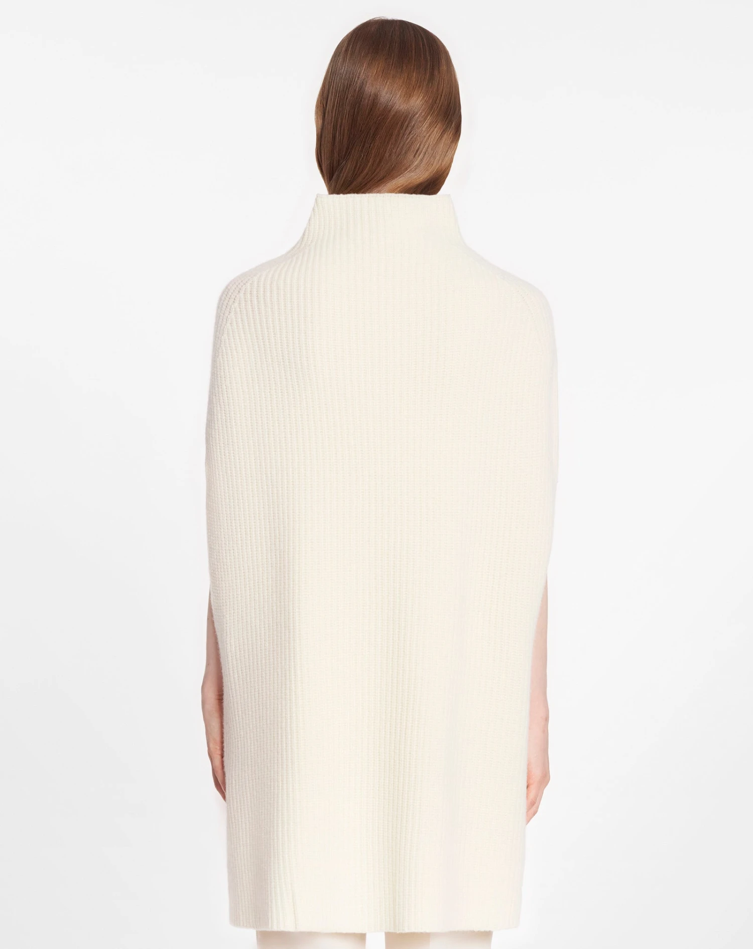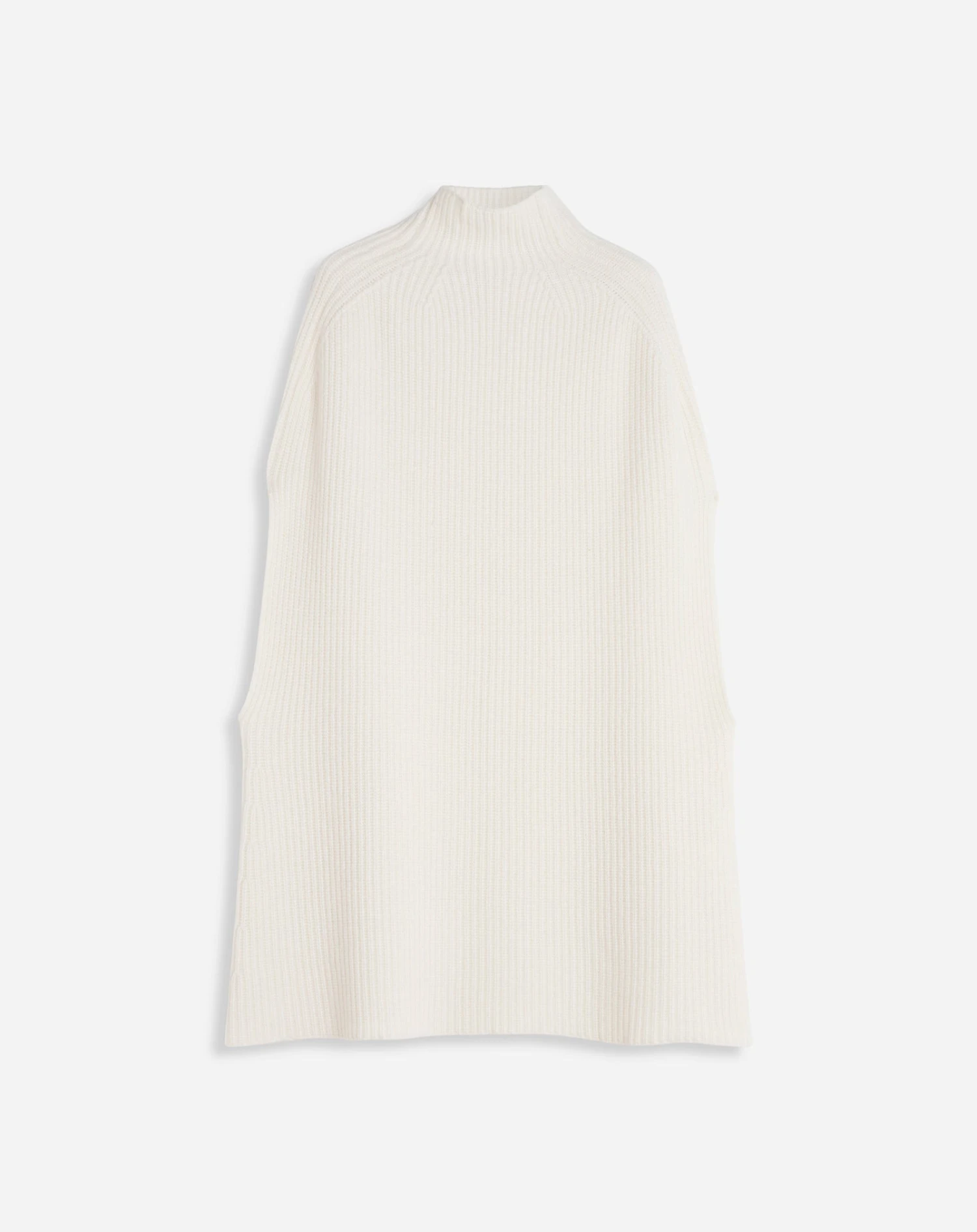 - High neck poncho in chunky merino rib.