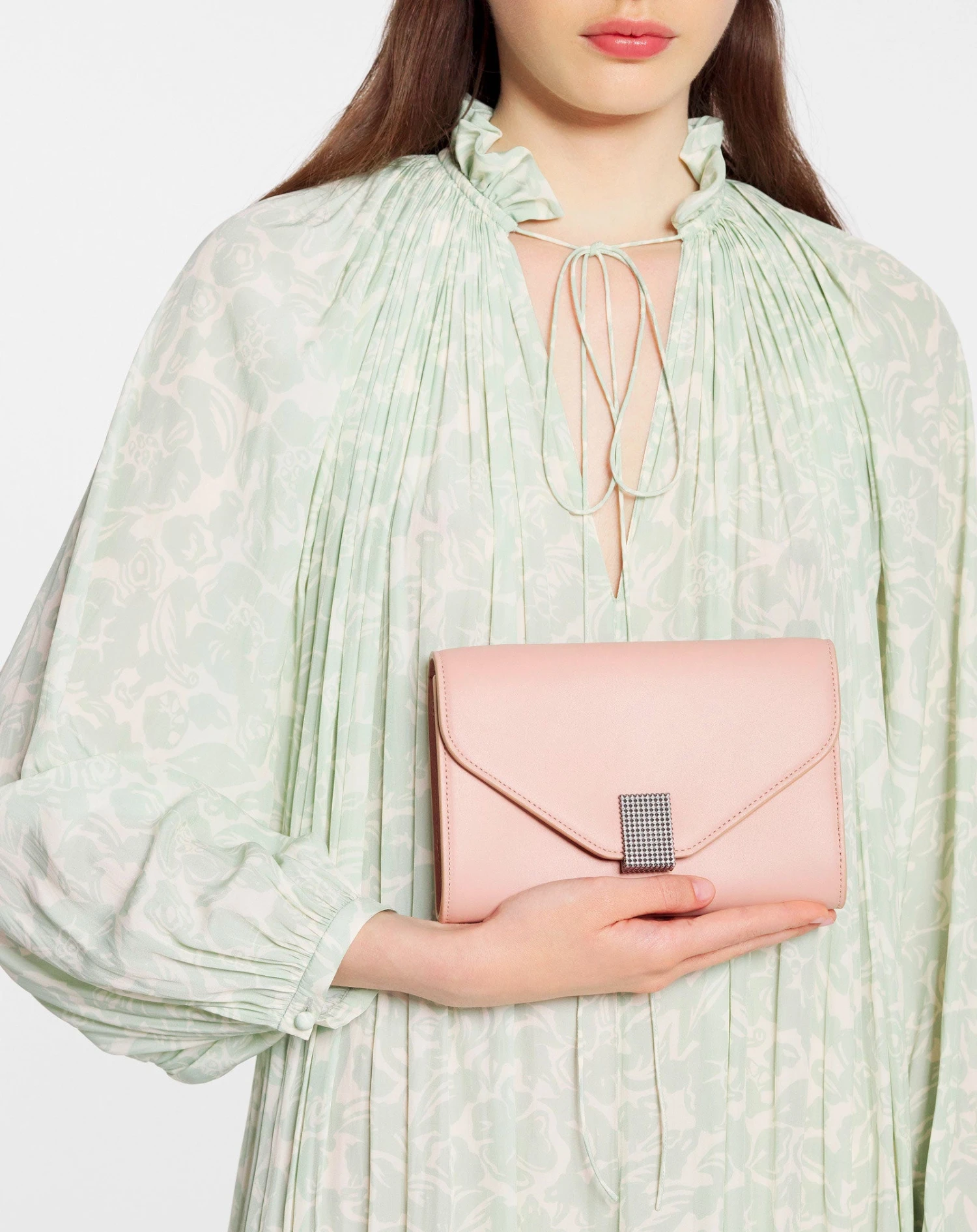 The elegant clutch of the new Concerto line features a magnetic diamond-point clasp. It derives its inspiration from the geometric shape of an iconic LANVIN dress of the 1934 Fall/Winter collection.