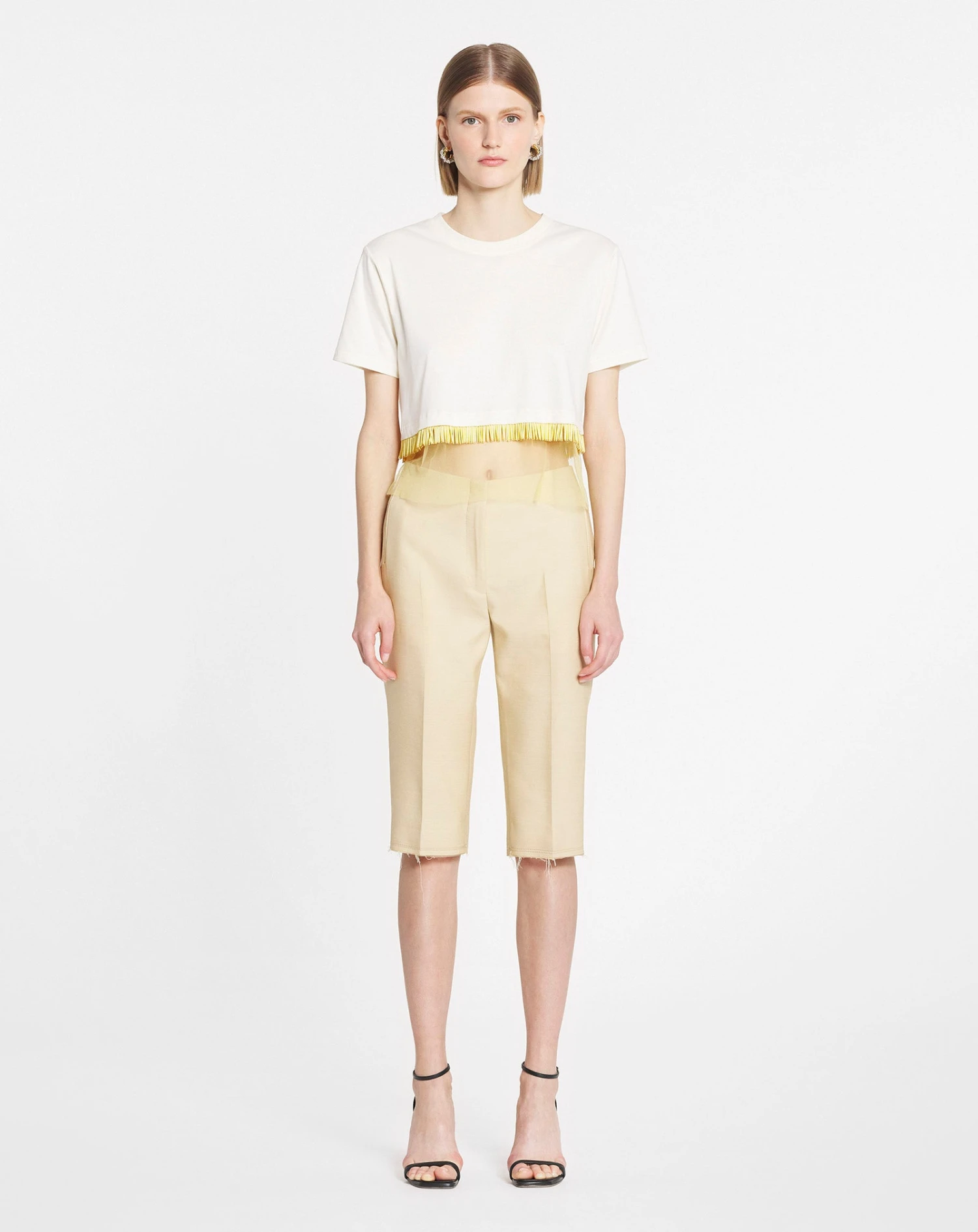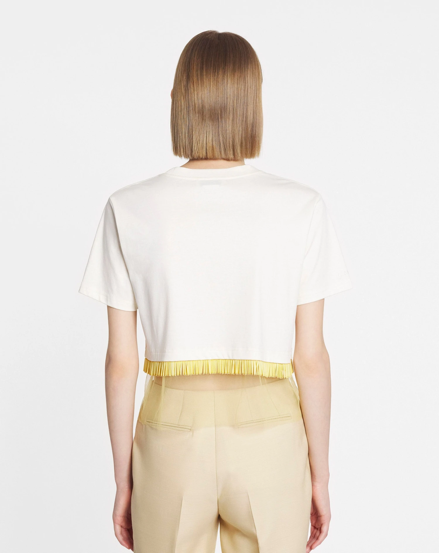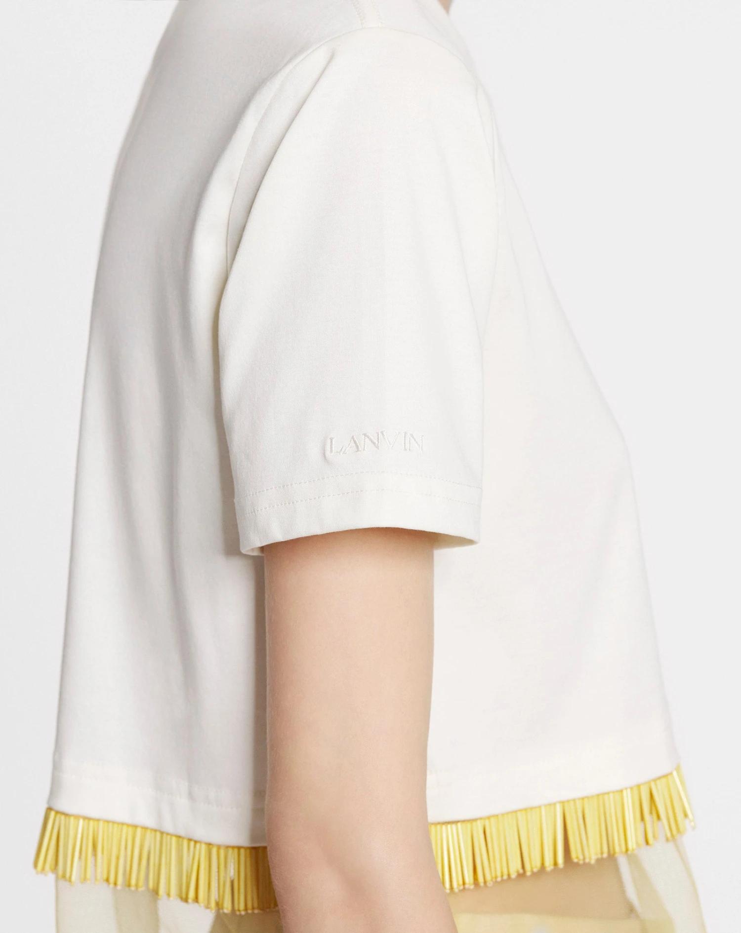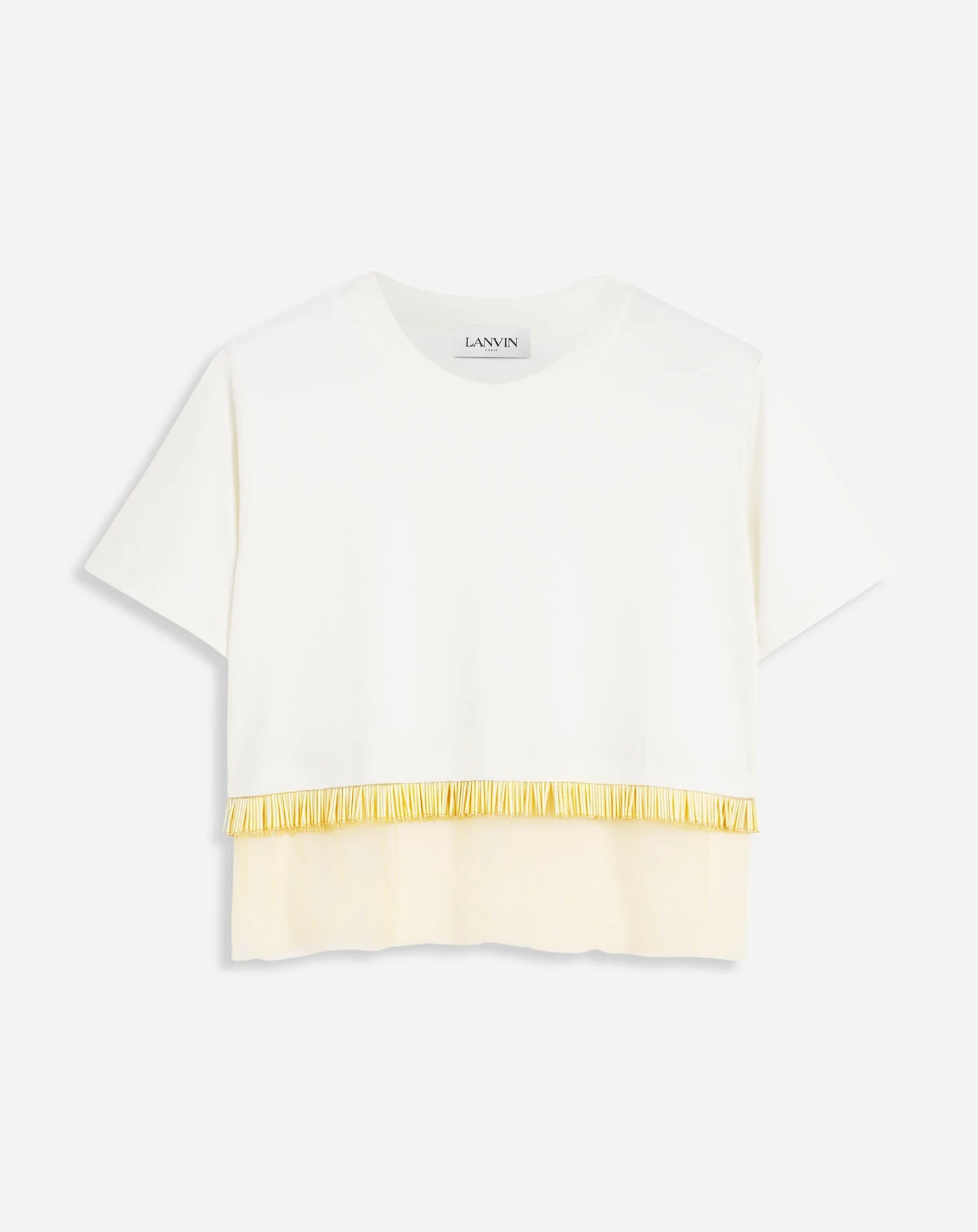 - Classic cotton jersey T-shirt with a visible lining effect in tulle and embroidery