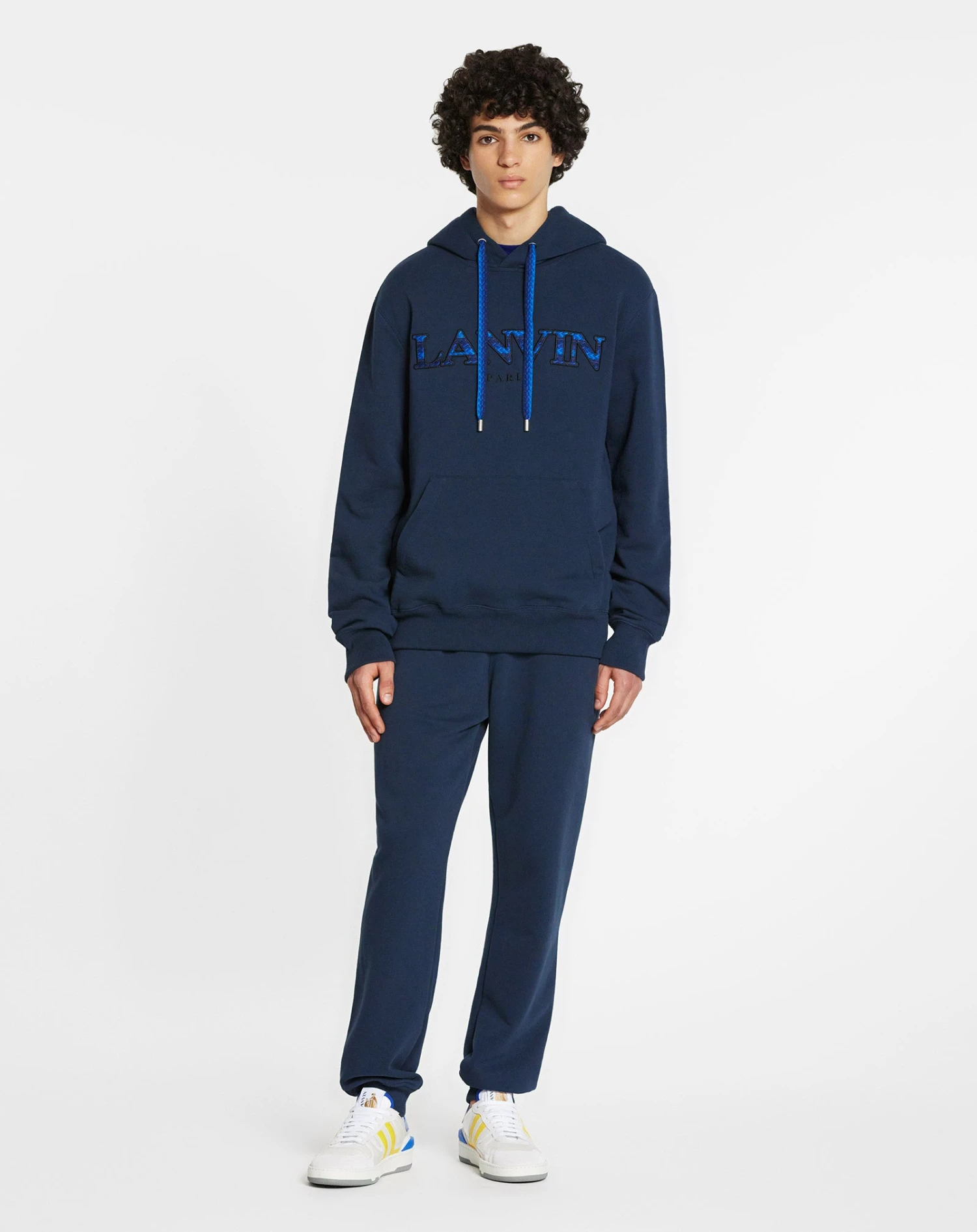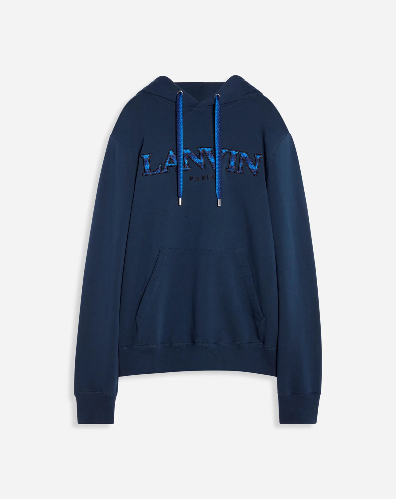 - Hooded sweater in cotton fleece adorned with the Lanvin Curb logo embroidered on the front and matching Curb drawstrings