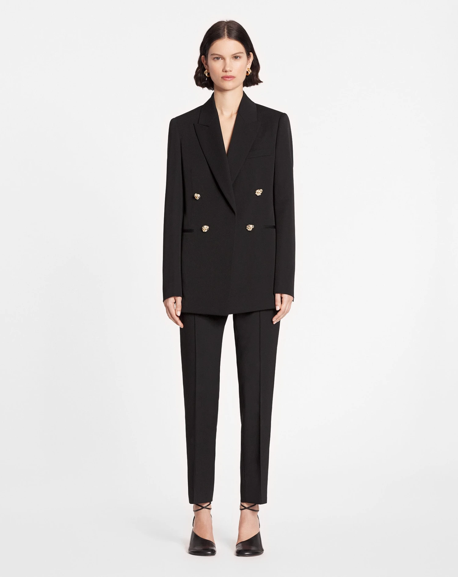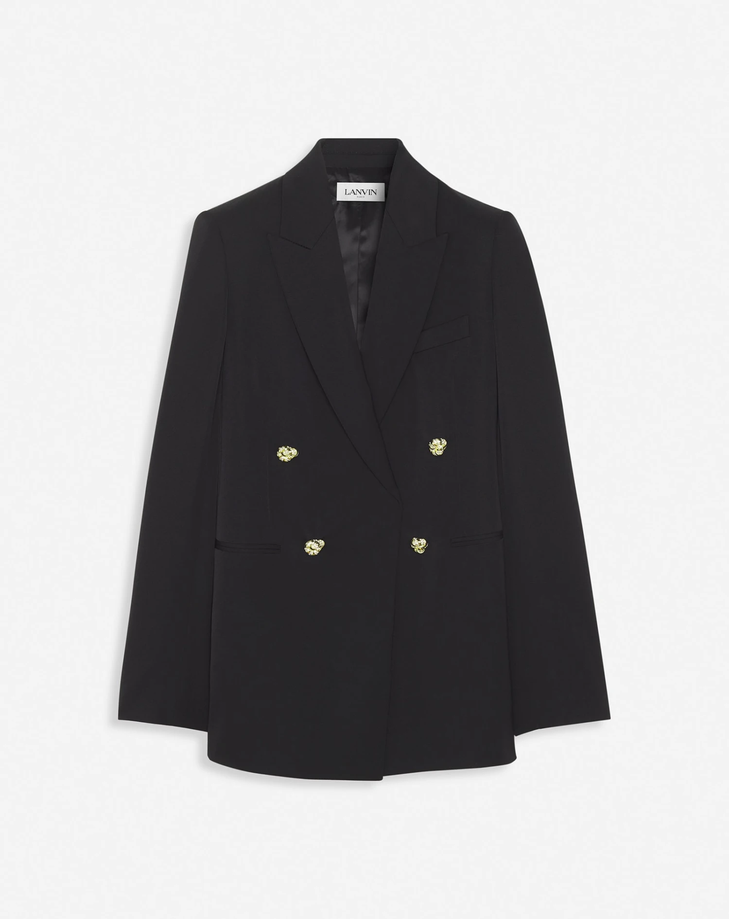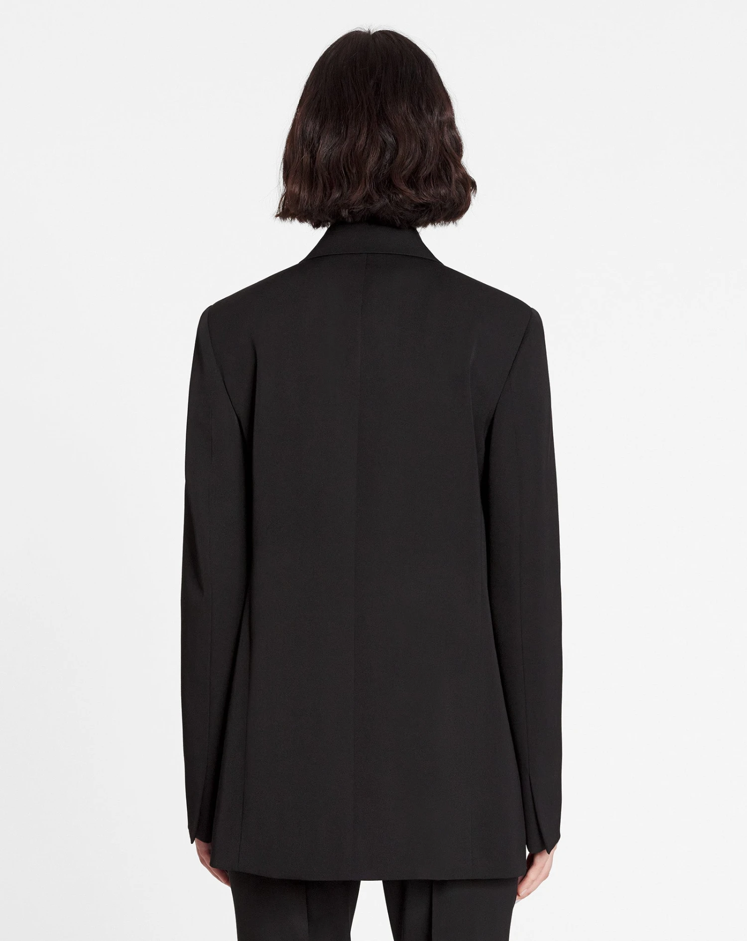 - Double-breasted jacket in traditional tuxedo grain de poudre wool, to be worn unbuttoned