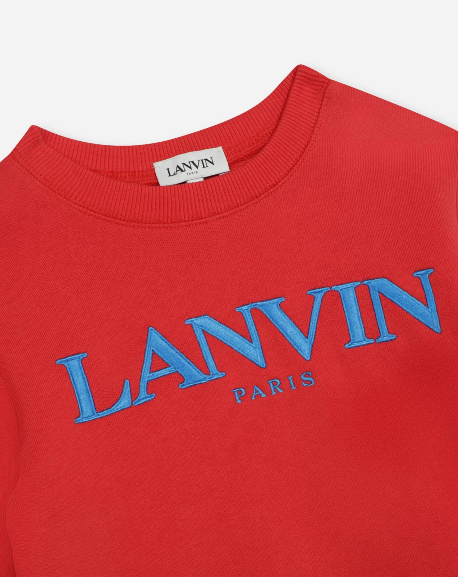 This fleece sweatshirt will add a splash of colour to your little one’s wardrobe. It is made of 100% organic cotton. The Lanvin logo is embroidered across the front in contrasting thread.