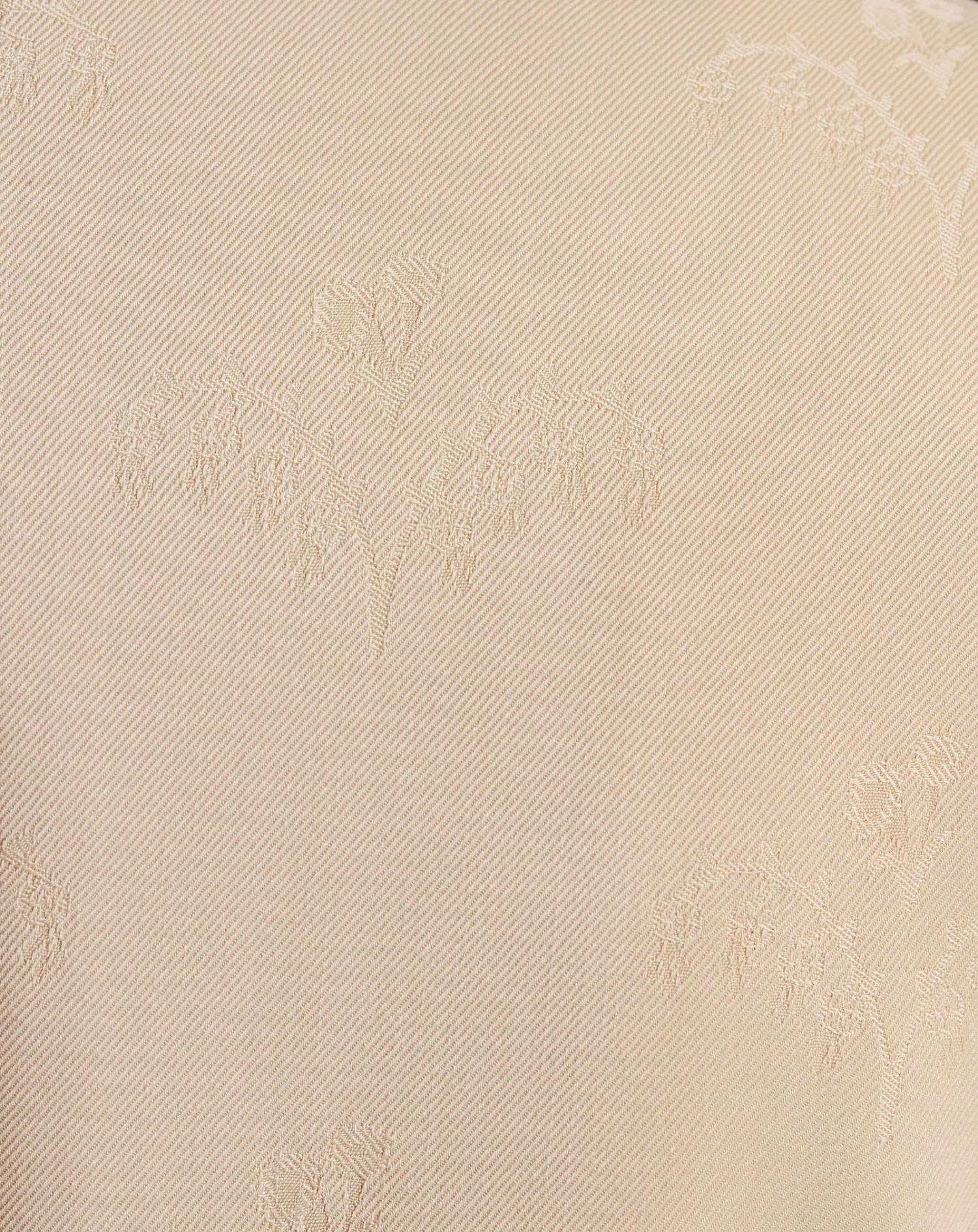 The art works have been designed by hand for a natural and romantic look. This fabric made in 100% virgin wool will provide a sharp and impeccable silhouette thanks to its natural crease resistance.