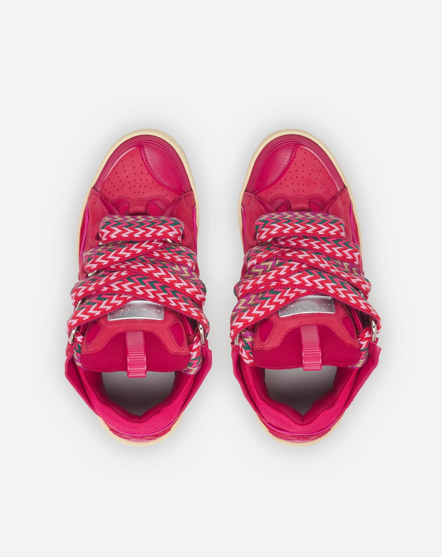 The Curb is a sneaker inspired by the 90s, with a confident design and exaggerated dimensions. Made in nappa calfskin, suede and mesh, this elaborately constructed shoe stands out for its extraordinary comfort thanks to the rounded shape, padded tongue, and metallic eyelets.