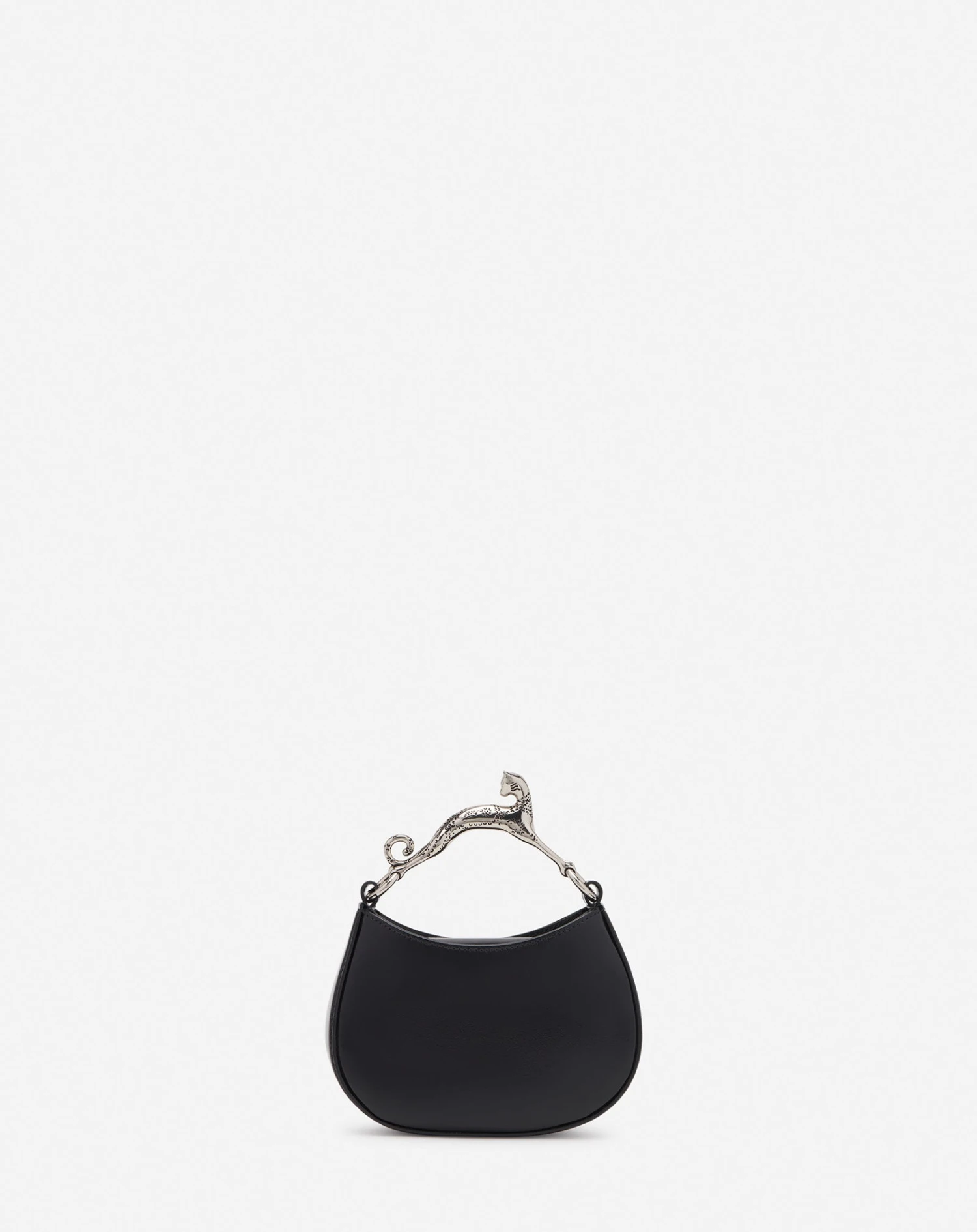 Embellished with a sculptural cat handle, this hobo bag with soft and elegant lines can be carried in the hand or over the shoulder.