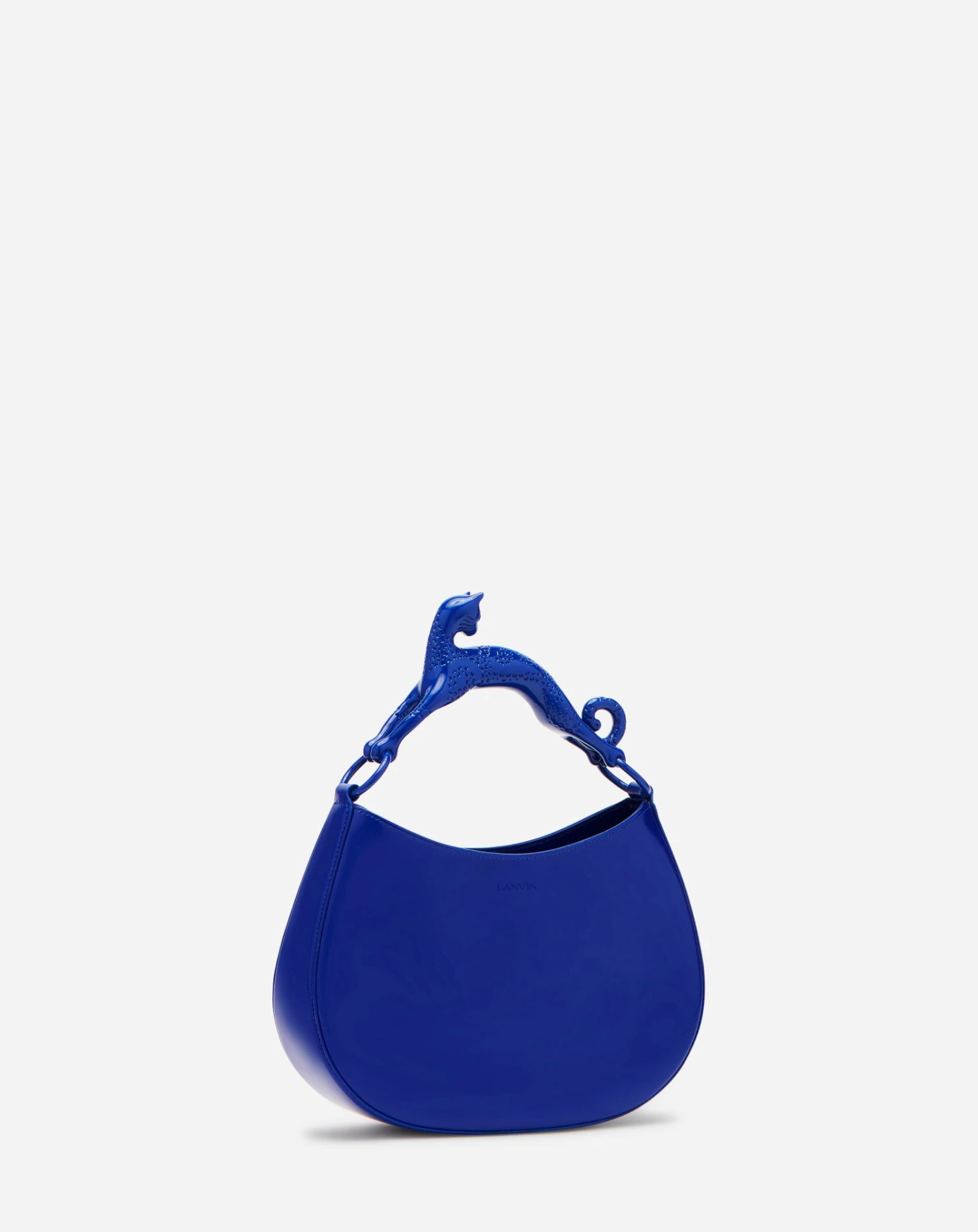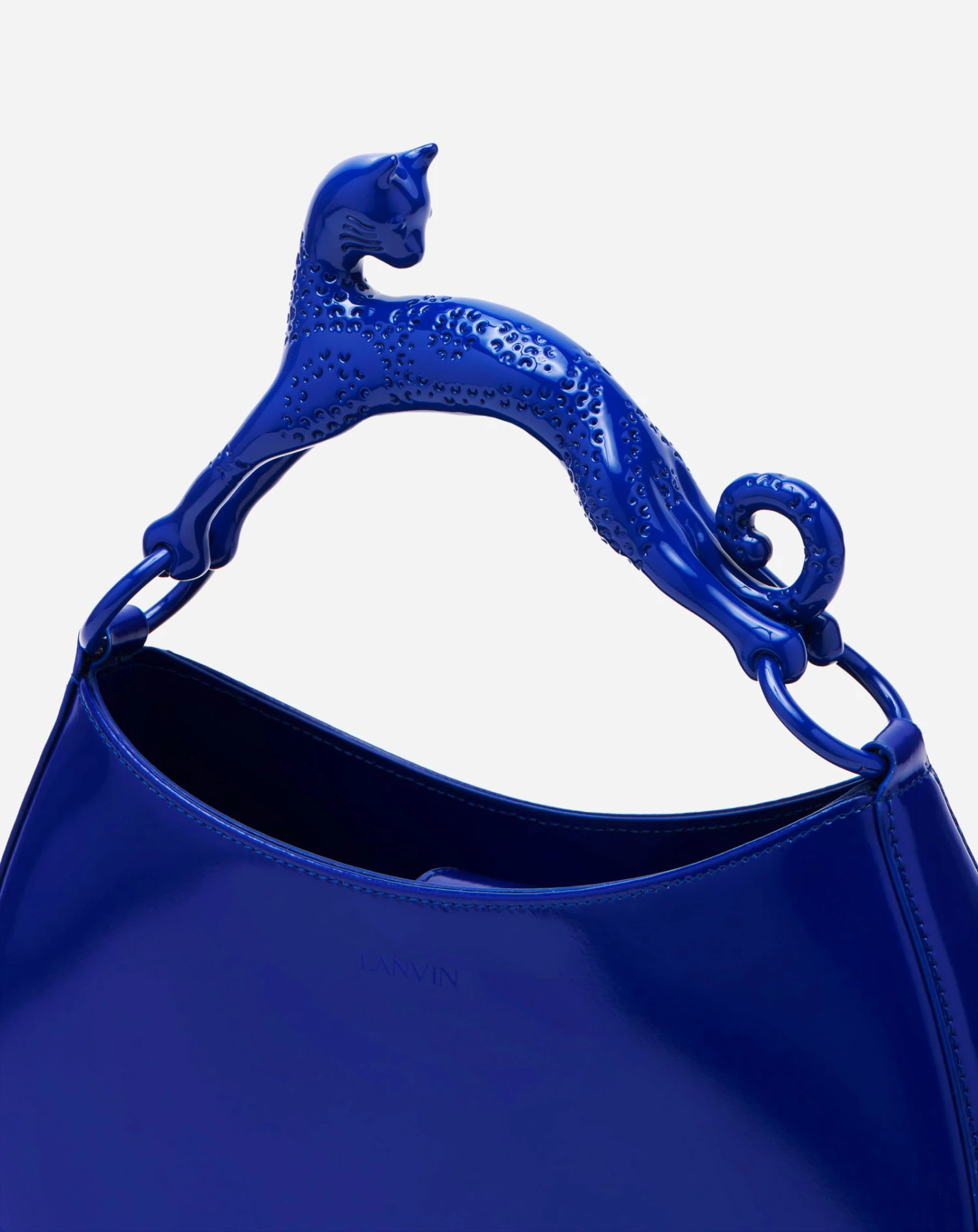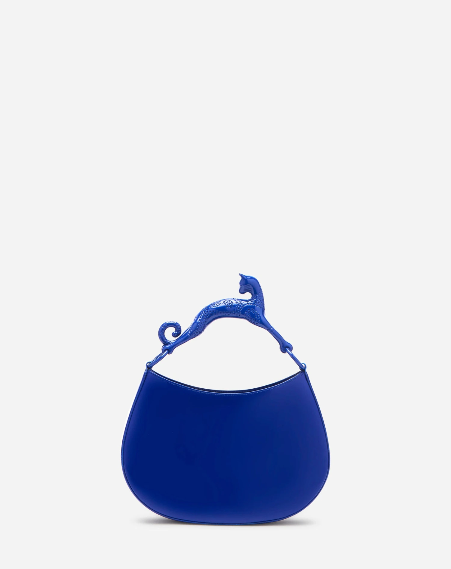 Embellished with a sculptural cat handle, this hobo bag with soft and elegant lines can be carried in the hand or over the shoulder.