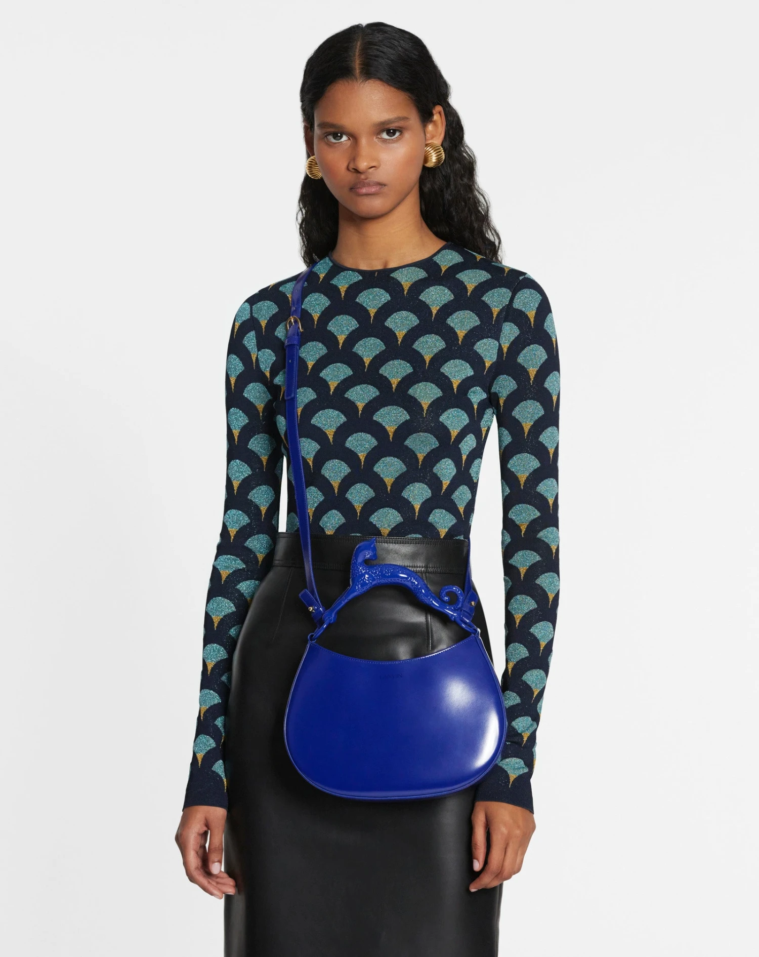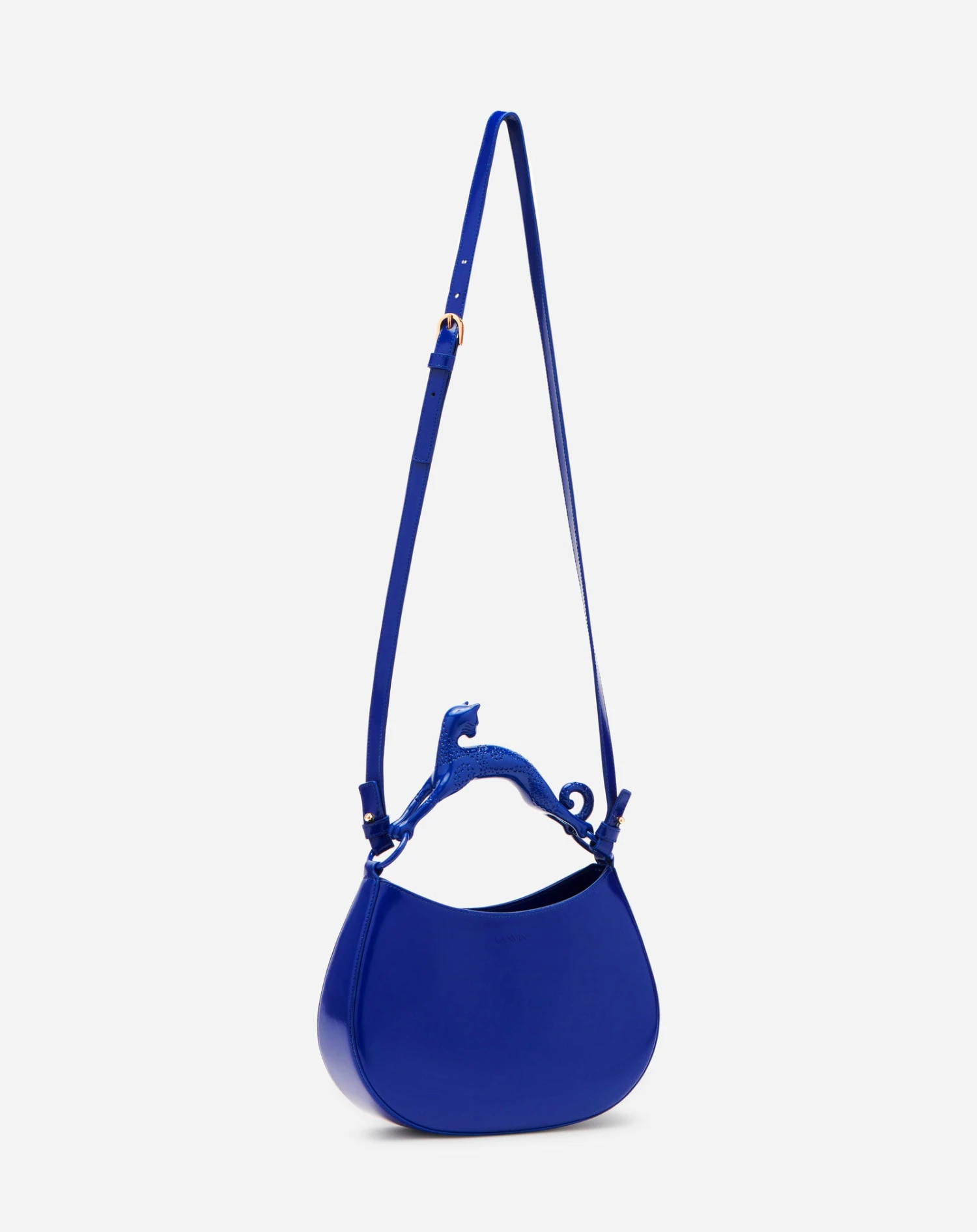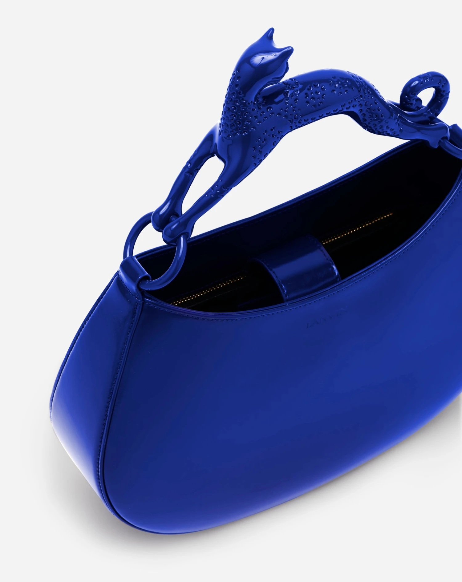 Embellished with a sculptural cat handle, this hobo bag with soft and elegant lines can be carried in the hand or over the shoulder.