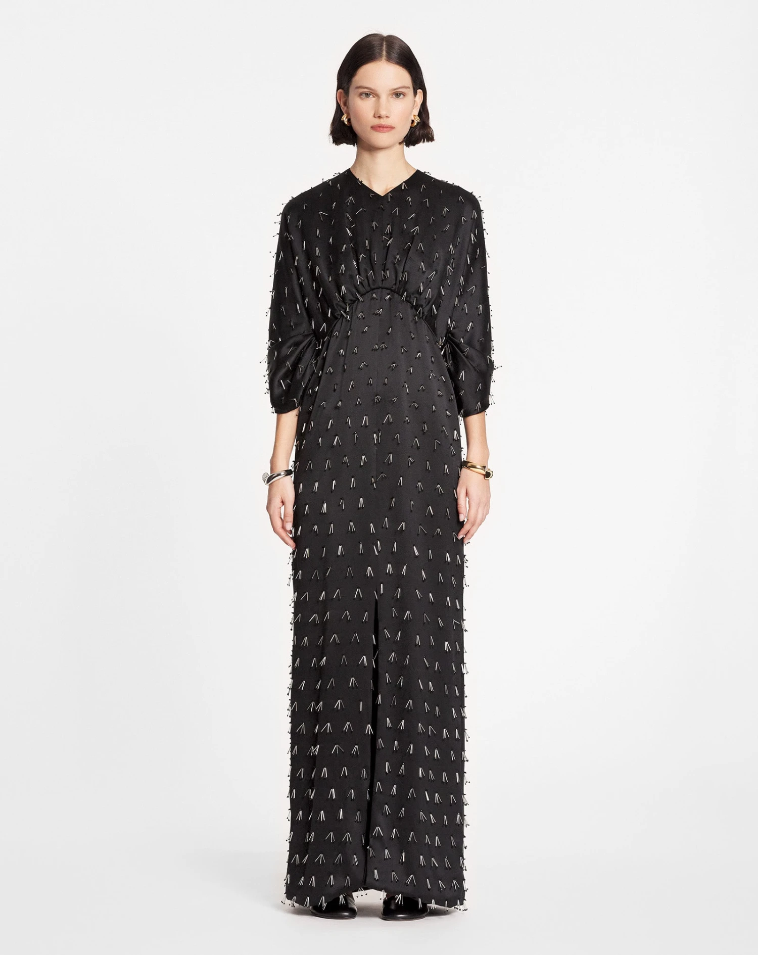 Embroidered details pay tribute to Marguerite, Jeanne Lanvin’s daughter. 95 hours of handmade embroidery went into creating this exquisite motif, which depicts small bouquets of flowers.