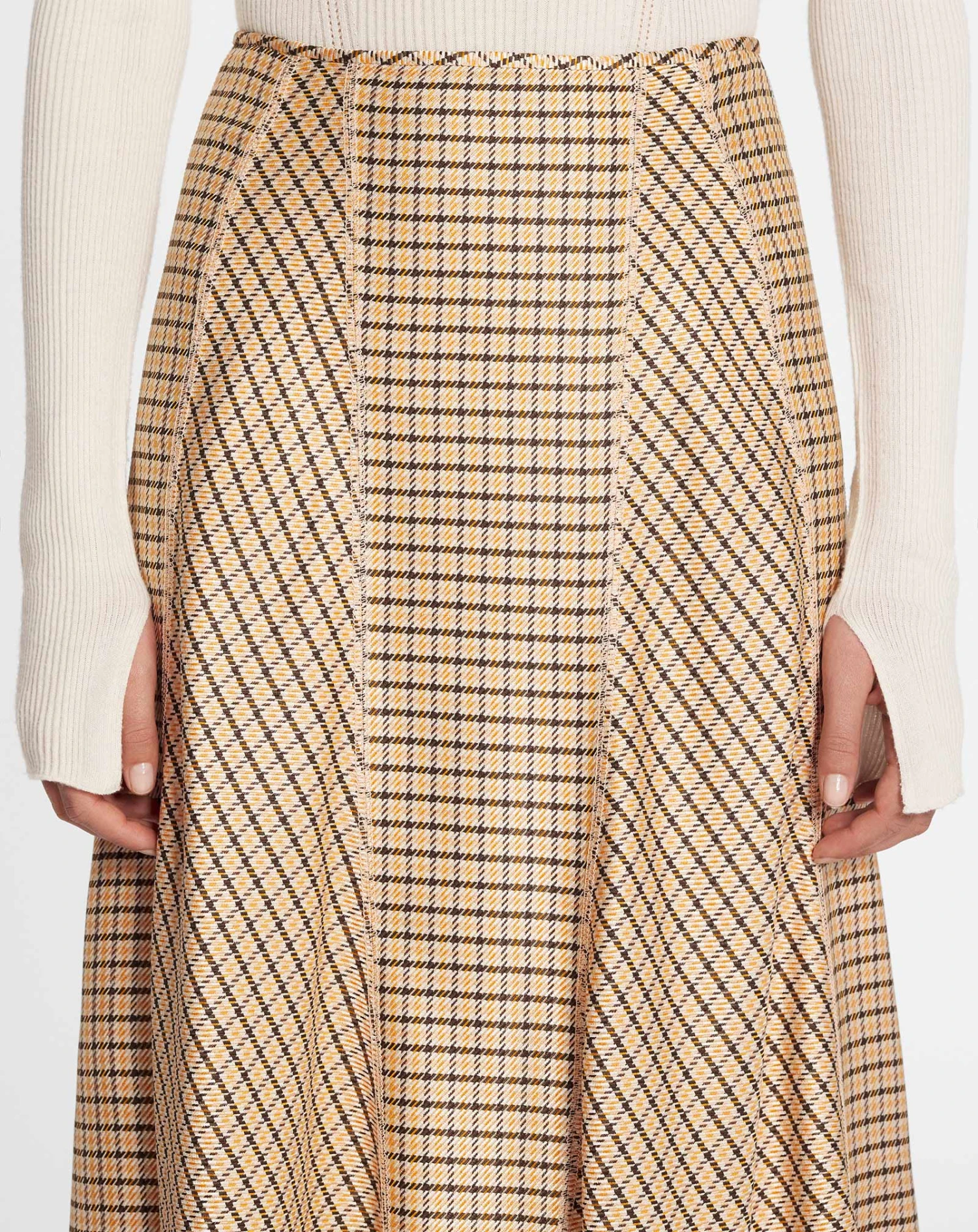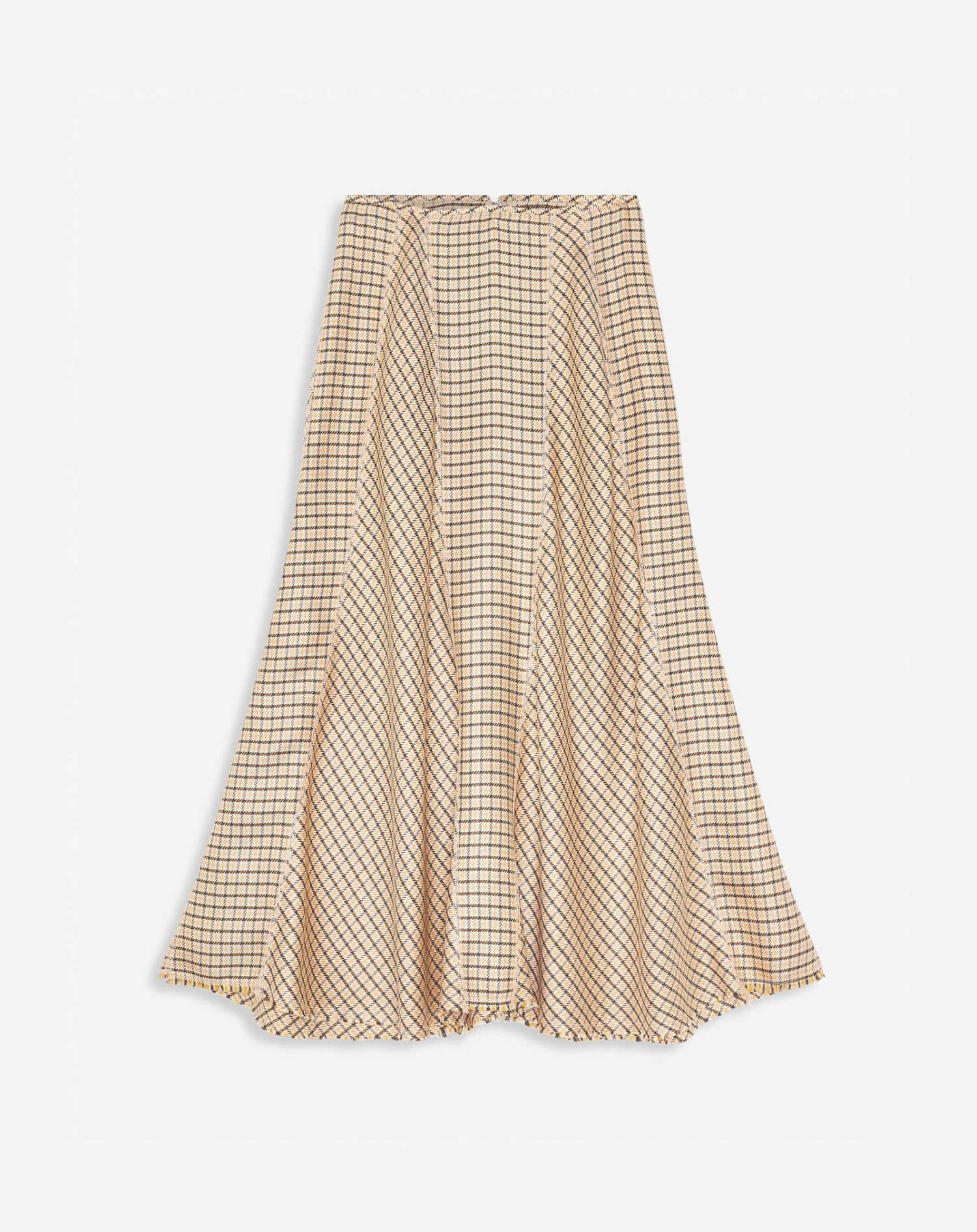 - Long flared panel skirt with a checkered print