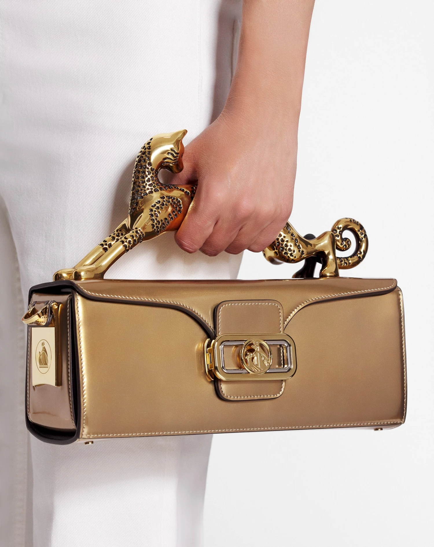 A unique collector’s Lanvin bag, the Pencil Cat is embellished with a precious sculptural handle, inspired by an andiron belonging to Jeanne Lanvin designed by the French designer Armand-Albert Rateau.