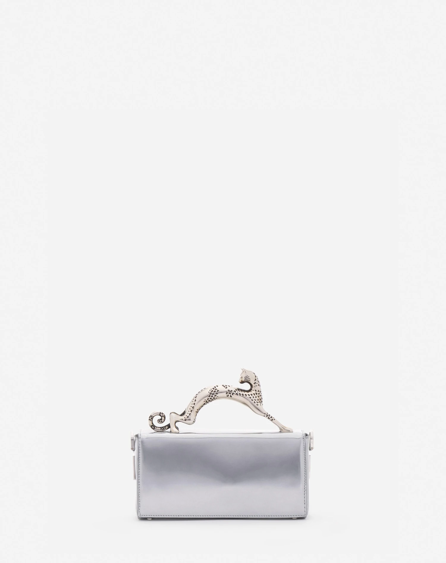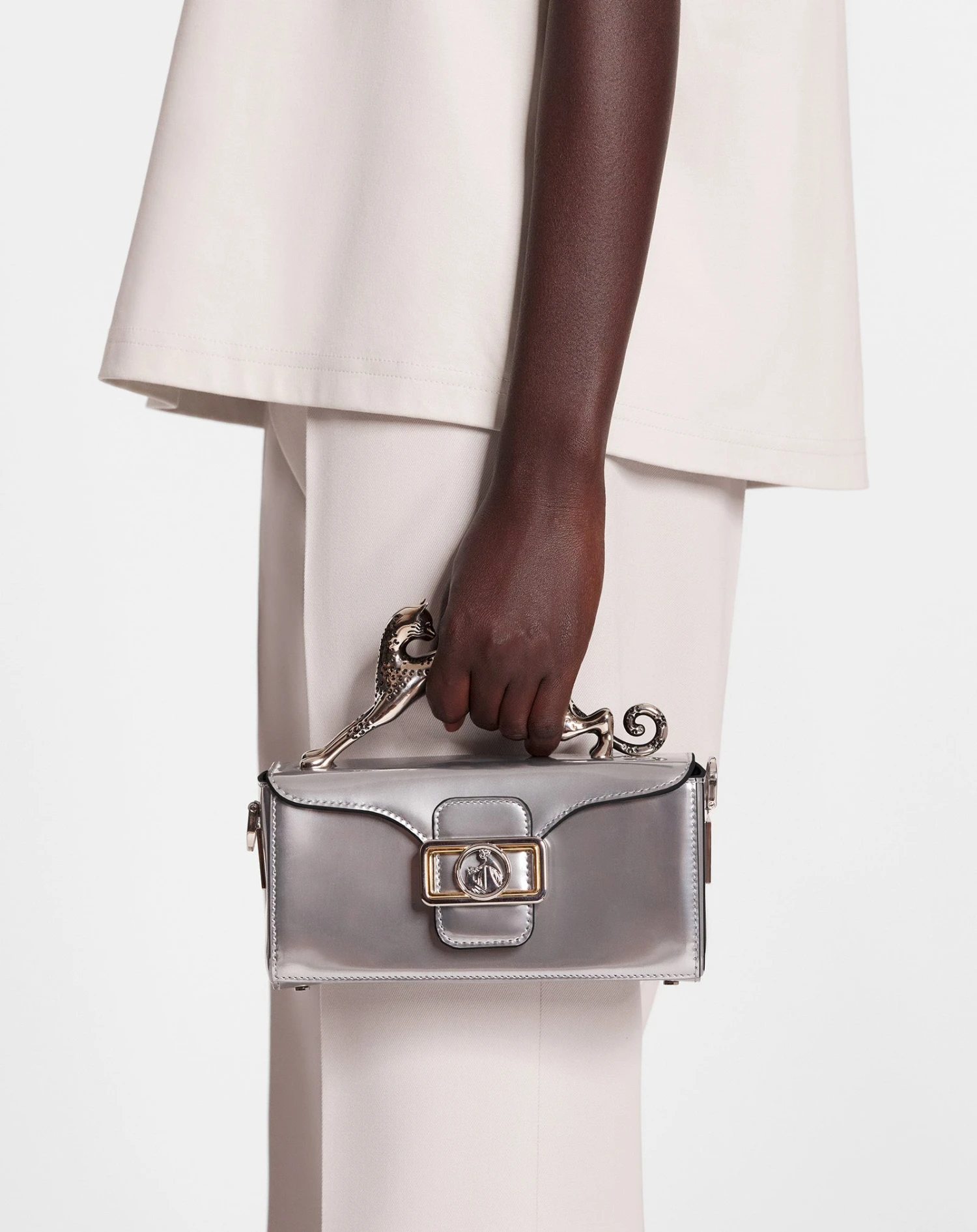 A unique collector’s Lanvin bag, the Pencil Cat is embellished with a precious sculptural handle, inspired by an andiron belonging to Jeanne Lanvin designed by the French designer Armand-Albert Rateau.