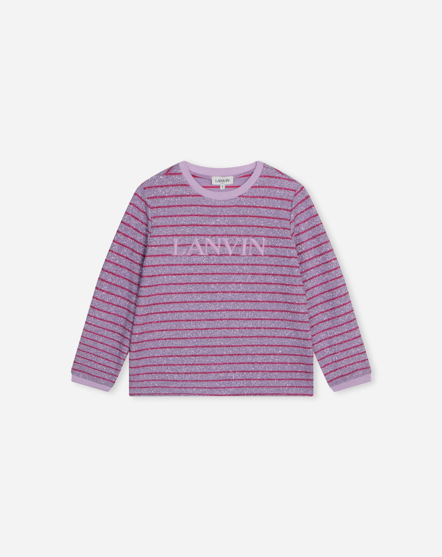 Perfect for an everyday outfit, this straight-cut sweatshirt with metallic stripes is made of fleece. The Lanvin logo appears on the chest, and its long sleeves and round neck come in a matte, contrasting shade.