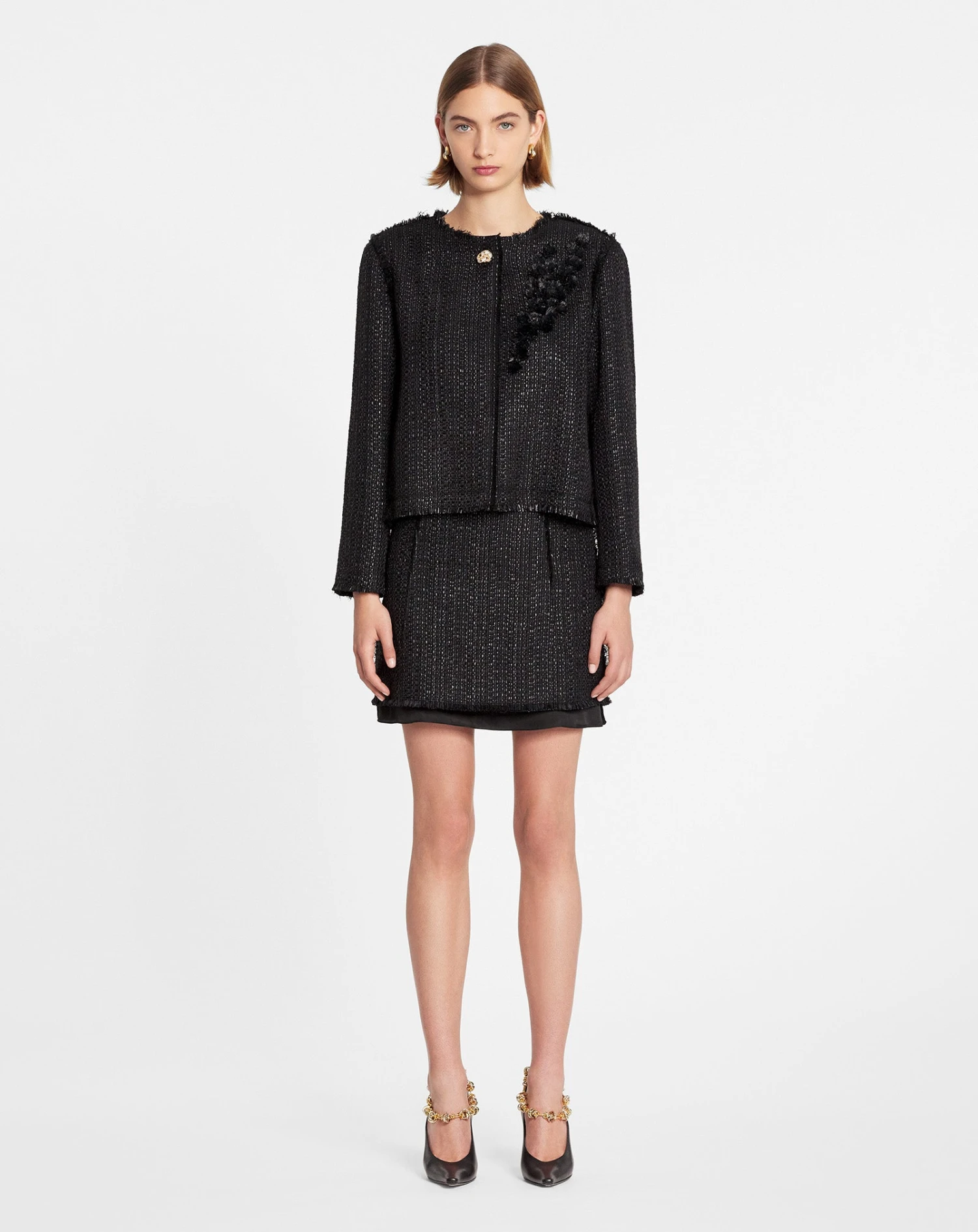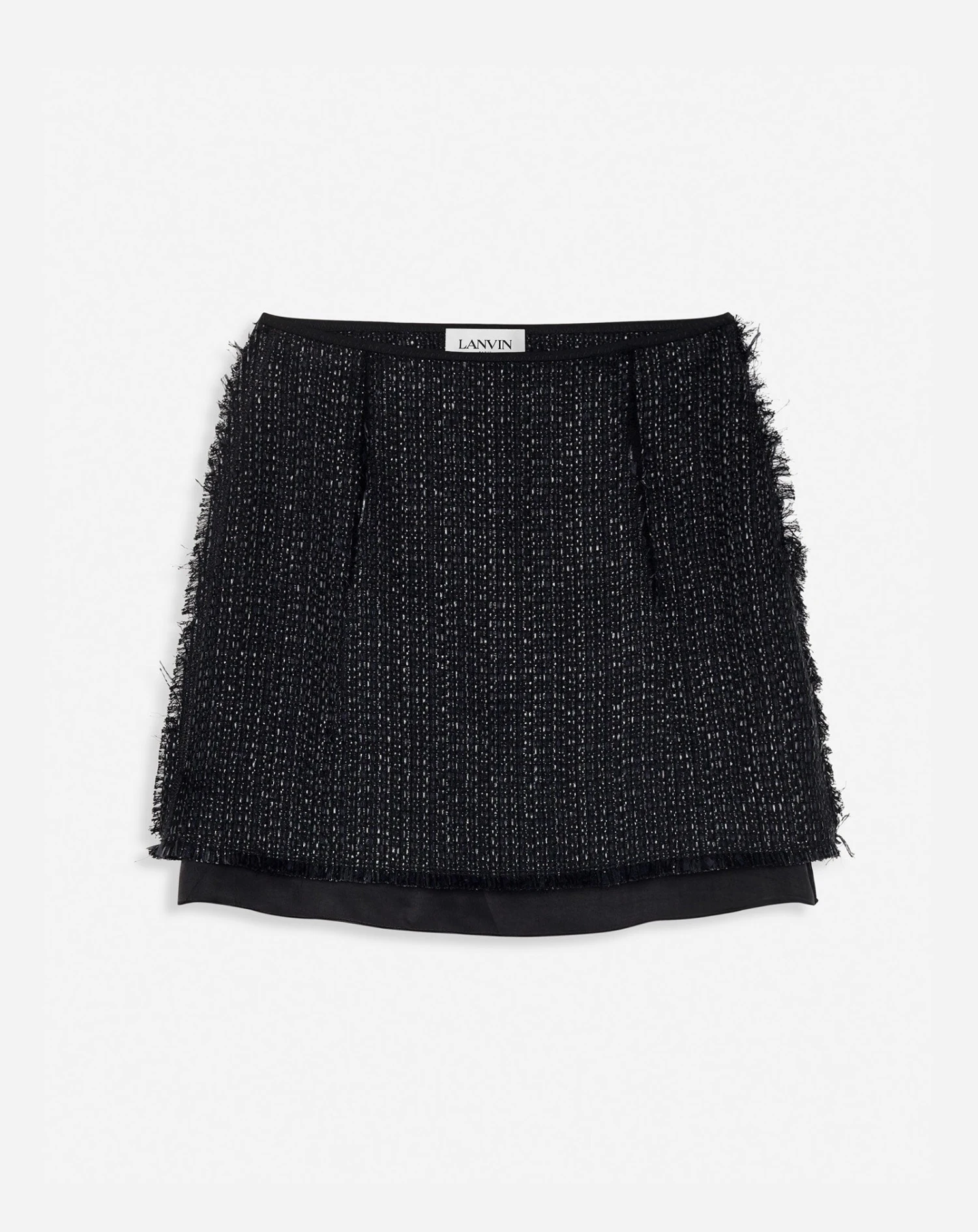 The floral embroidery on this skirt is a reinterpretation of the many flowers Jeanne Lanvin used to embroider on her creations. It is created entirely by hand using a blend of crystals and raffia.