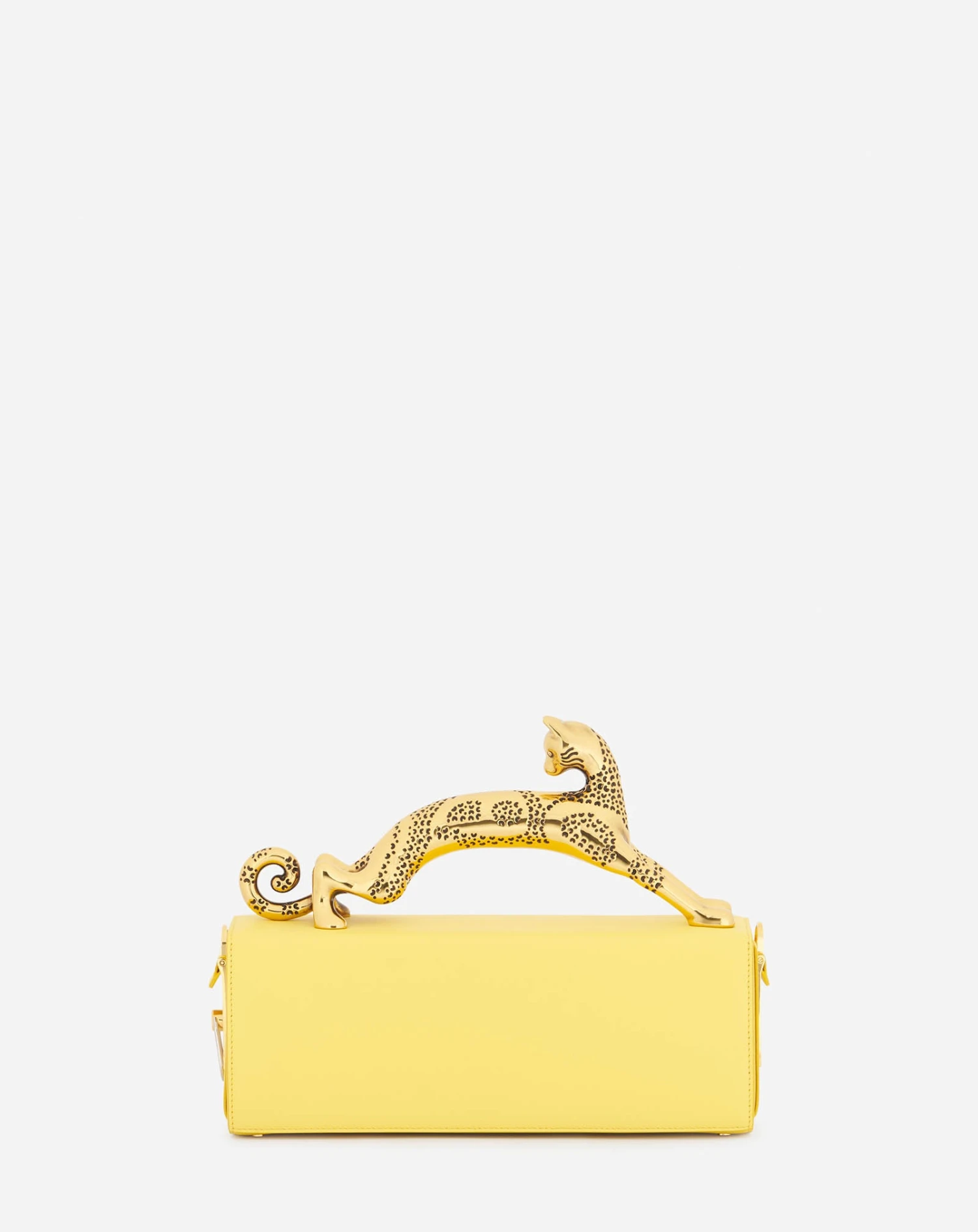 A unique collector’s Lanvin bag, the Pencil Cat is embellished with a precious sculptural handle, inspired by an andiron belonging to Jeanne Lanvin designed by the French designer Armand-Albert Rateau.