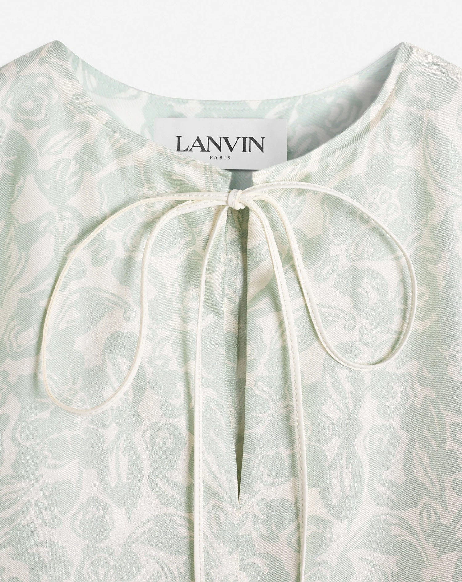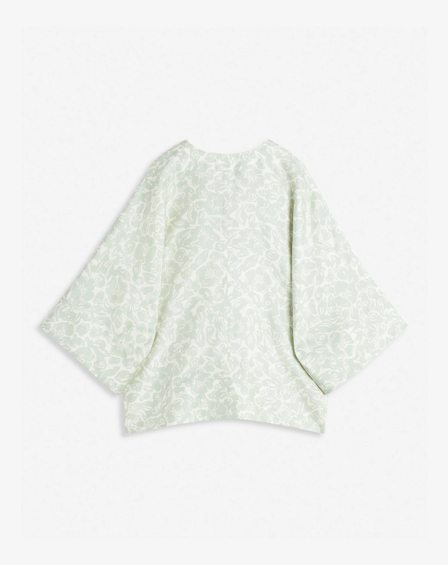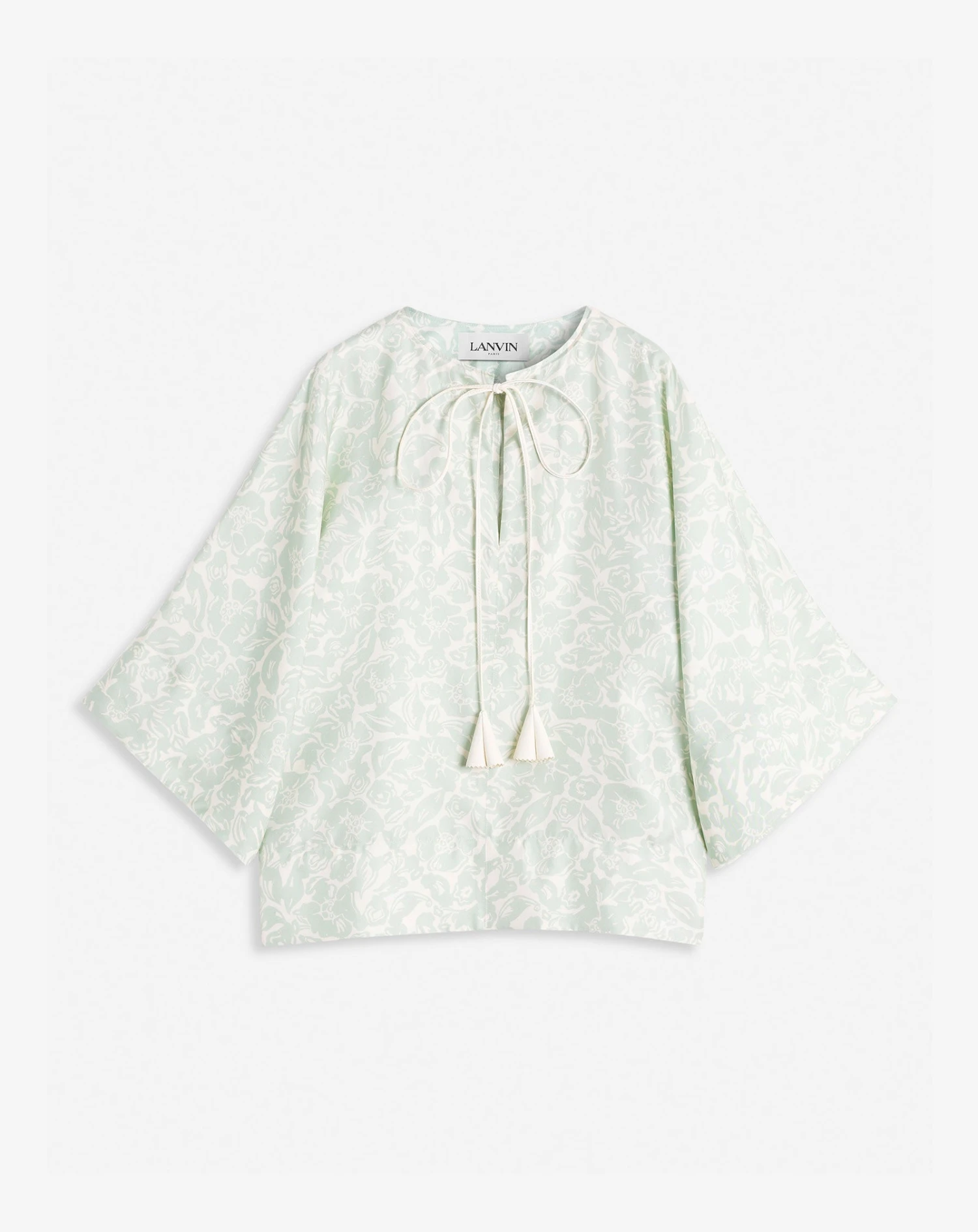 - Elbow sleeve cape back elegant top with leather draw strings fastening.