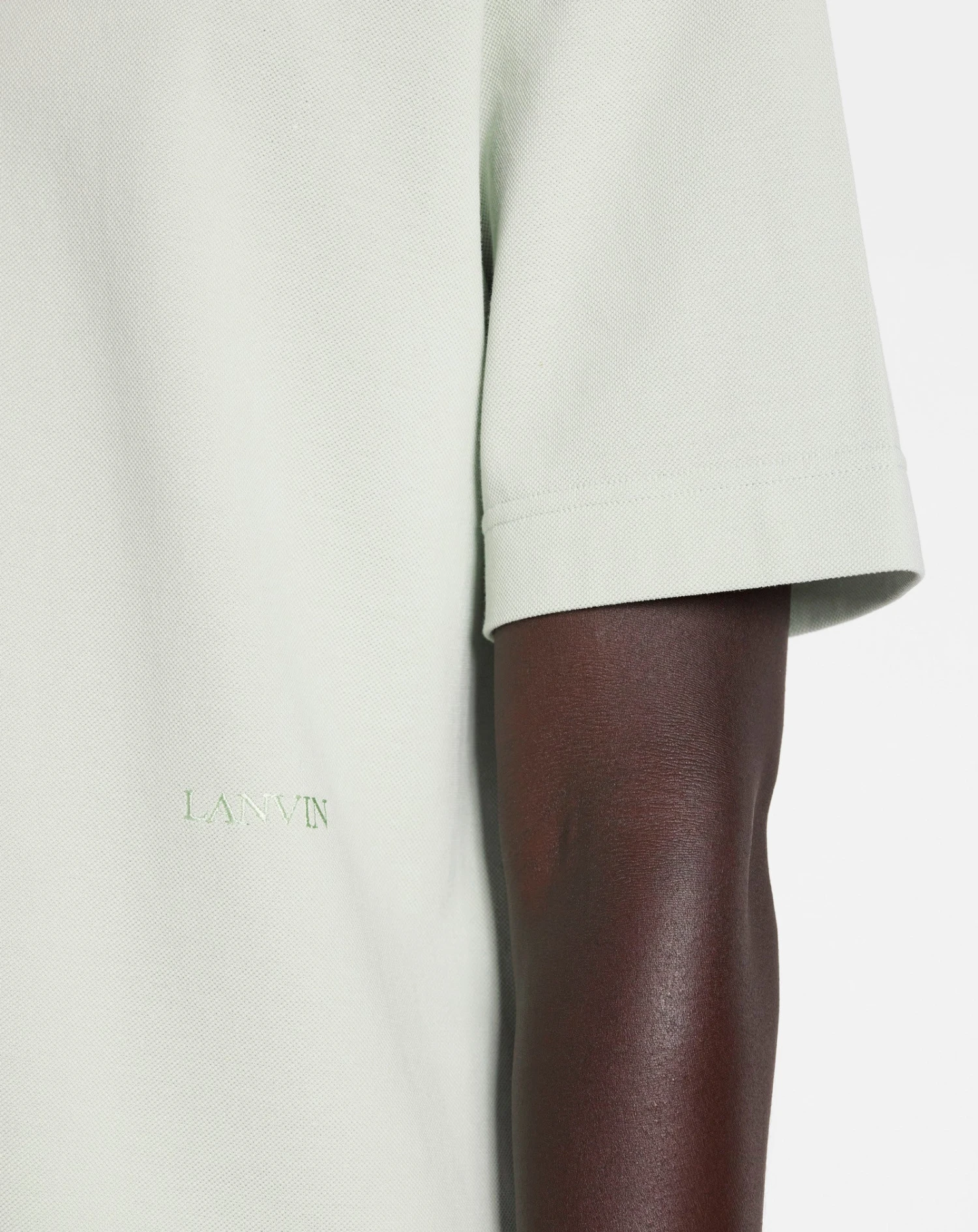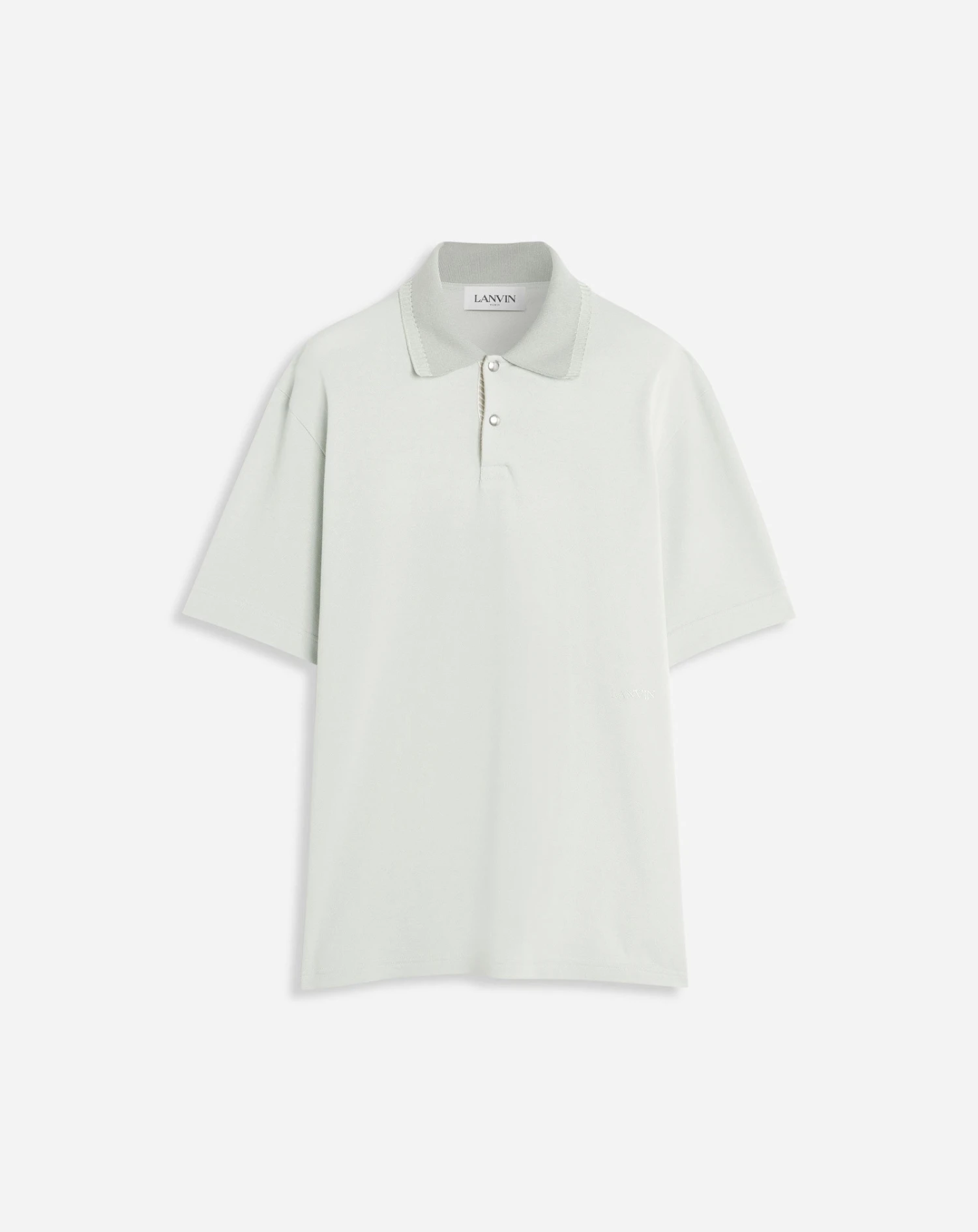 - Short sleeve, oversized fit, polo in cotton jersey pique, with Curb lace details on button placket, ribbed collar edges
