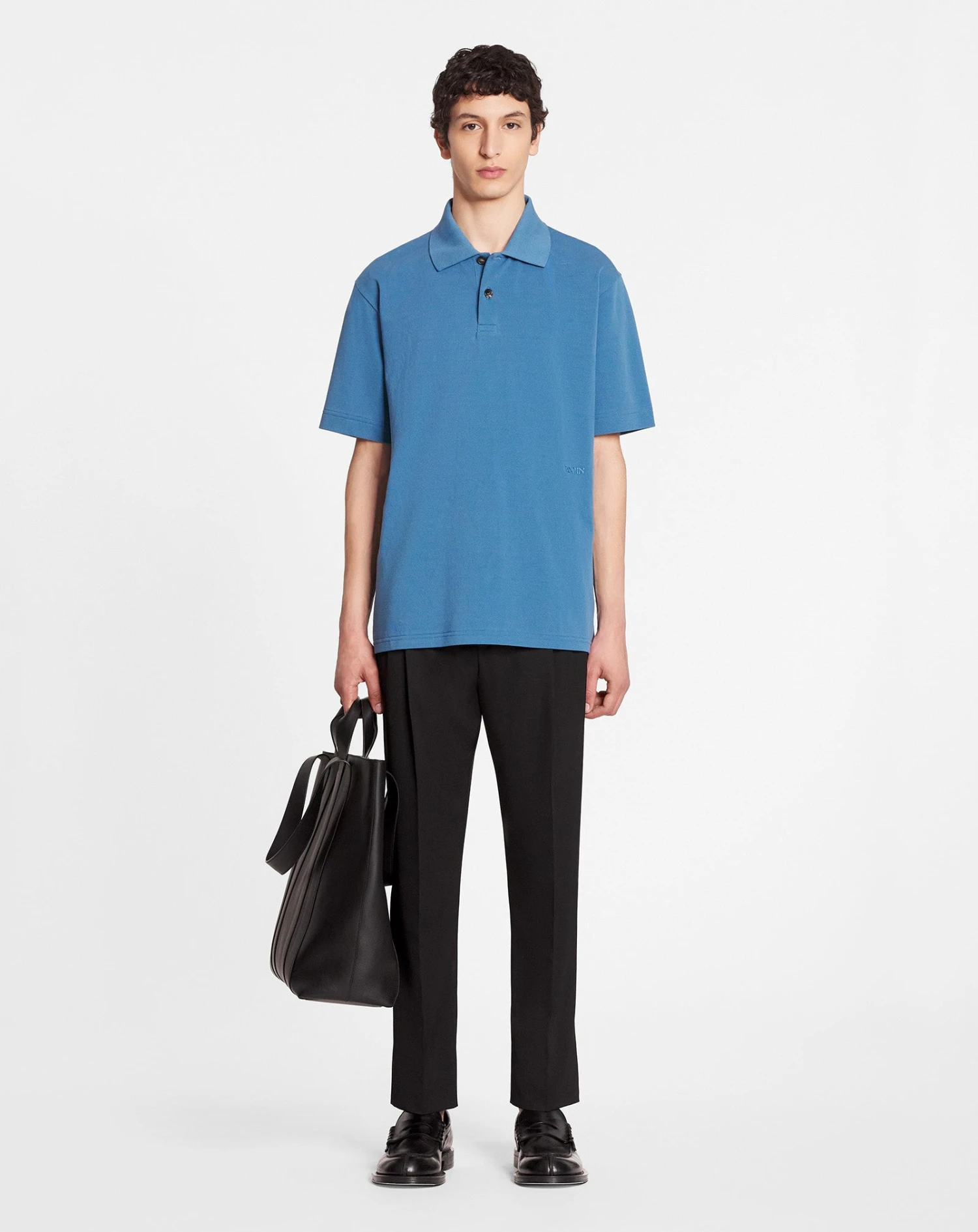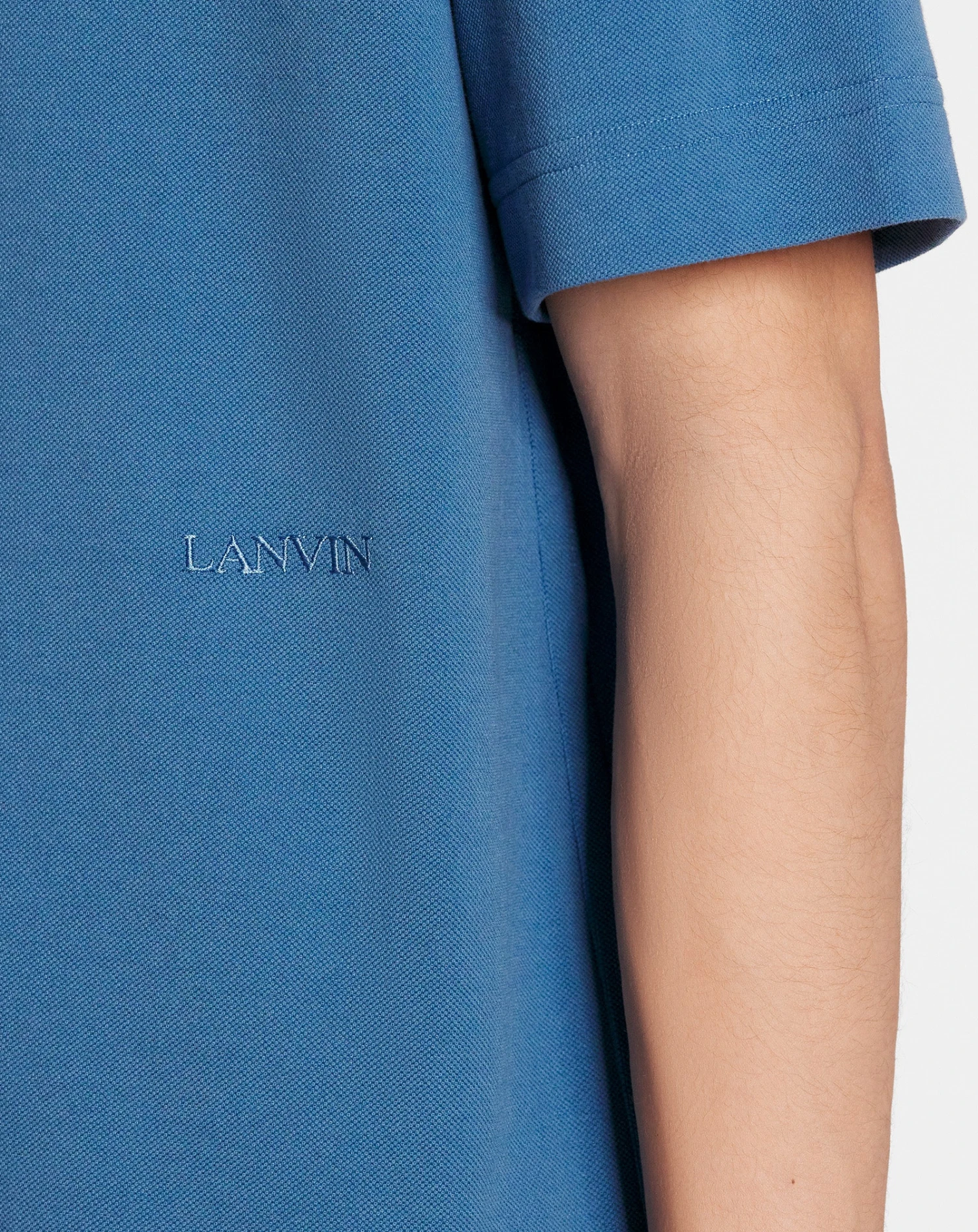- Tone-on-tone Lanvin logo embroidery detail on front.