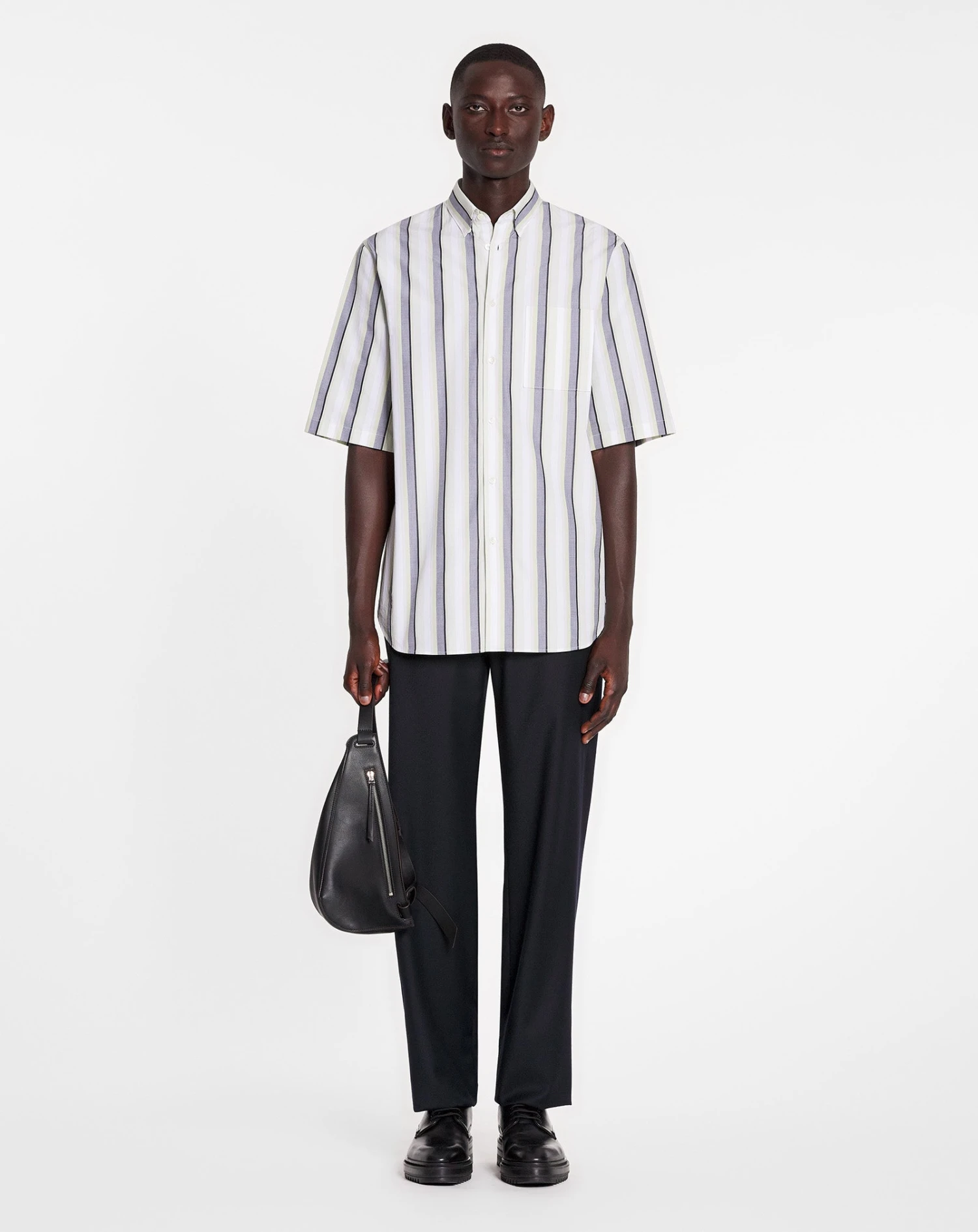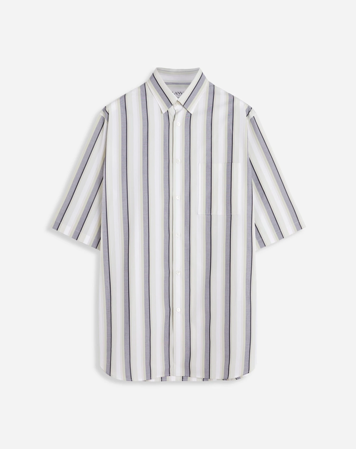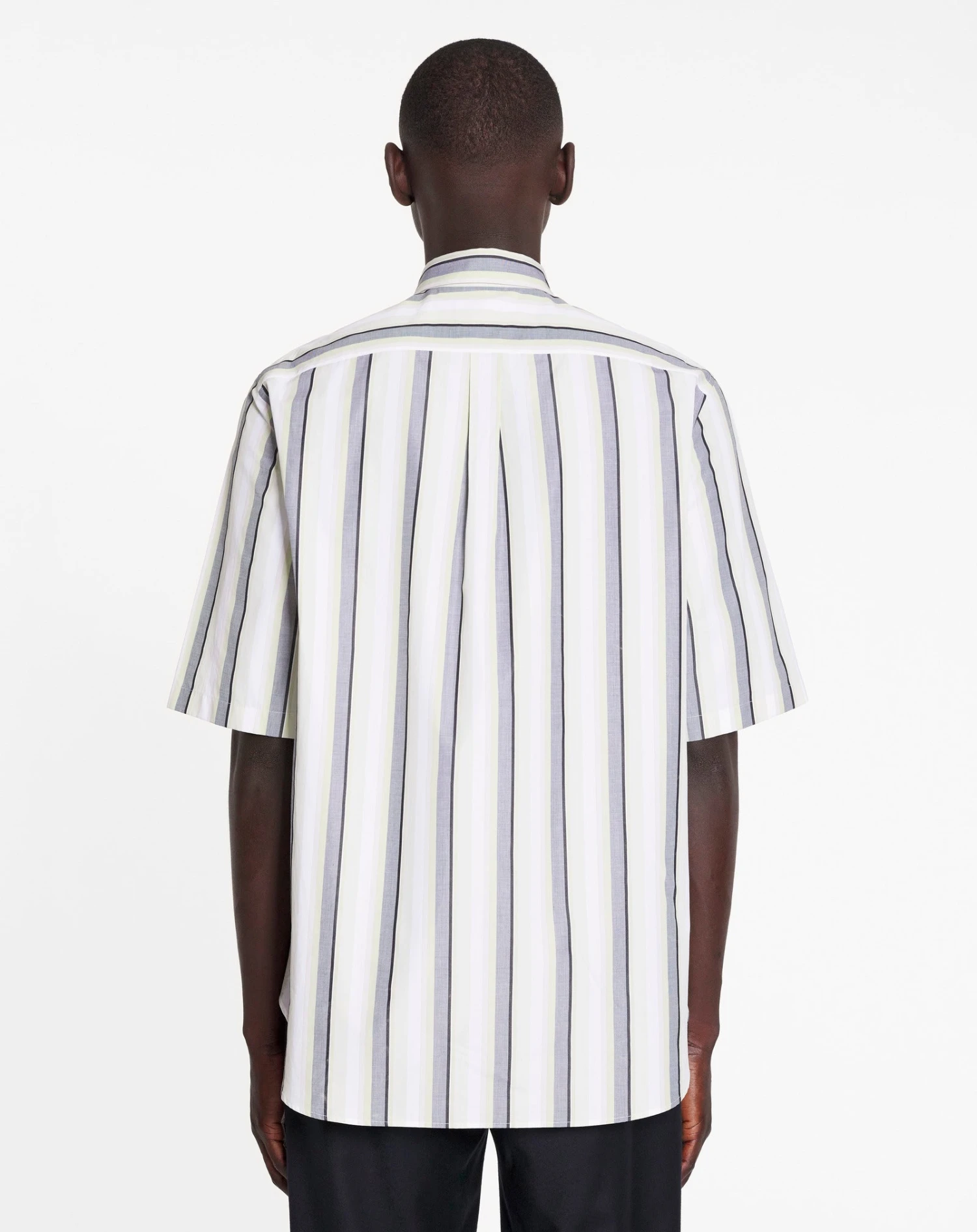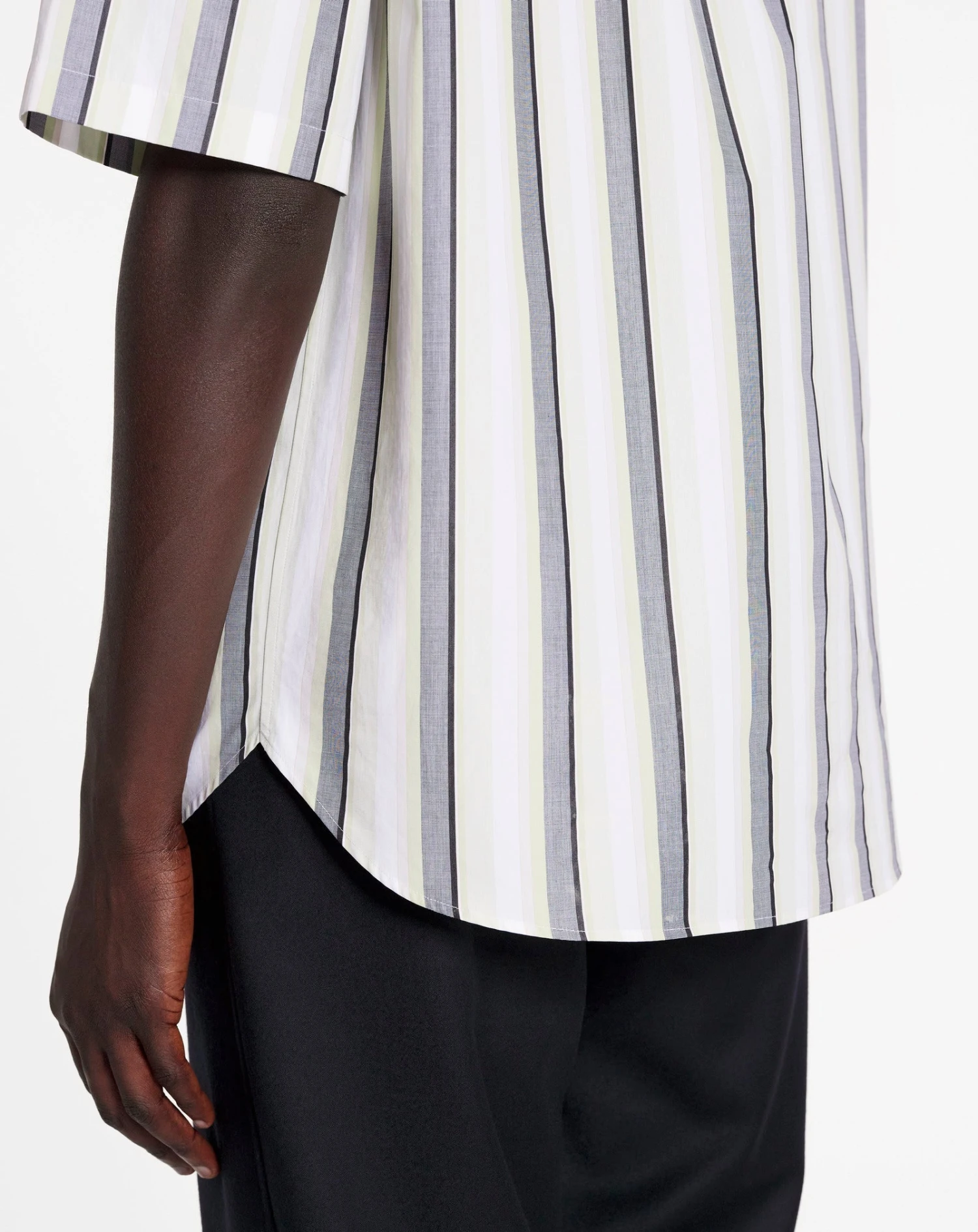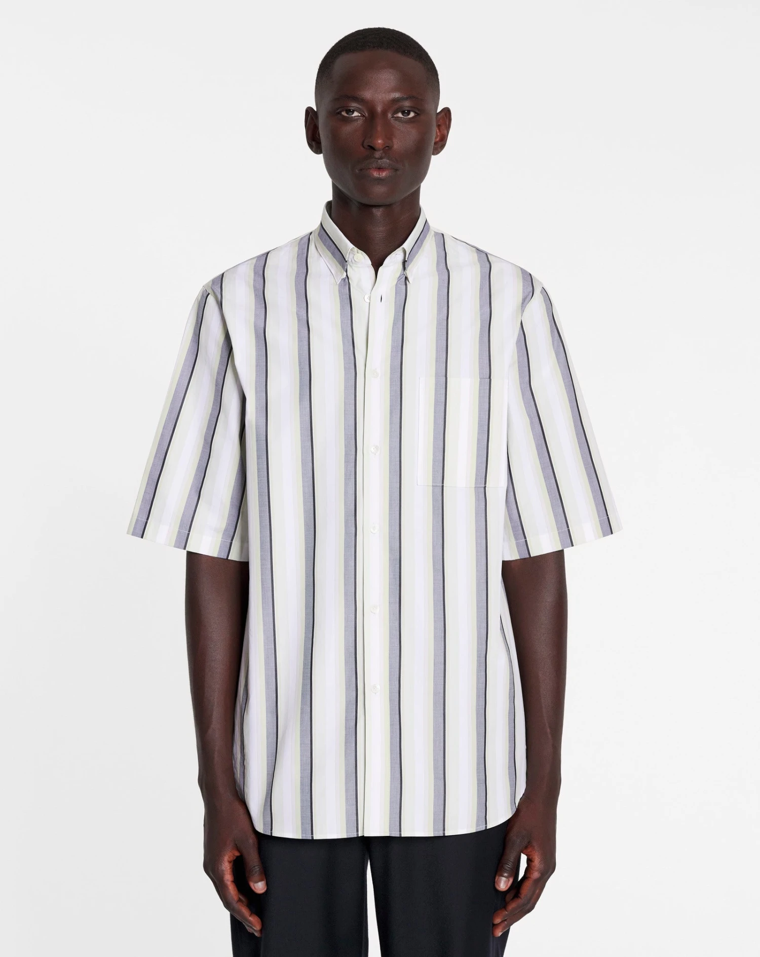 - Short sleeve, oversized fit, shirt with front pocket in multicolor jumbo striped cotton poplin.