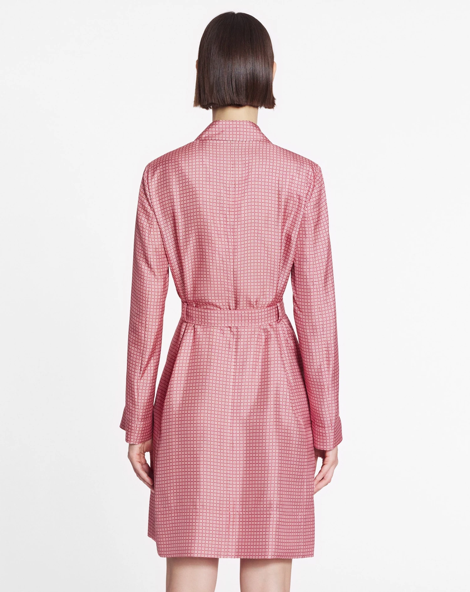 - Belted midi wrap dress with long sleeves and a shirt collar