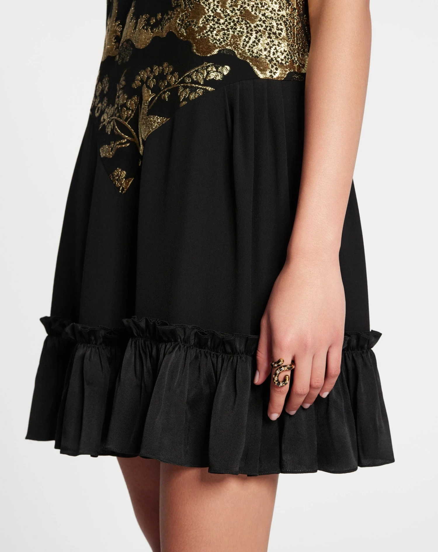 - Color: gold metal finish with black enamel and Swarovski crystals