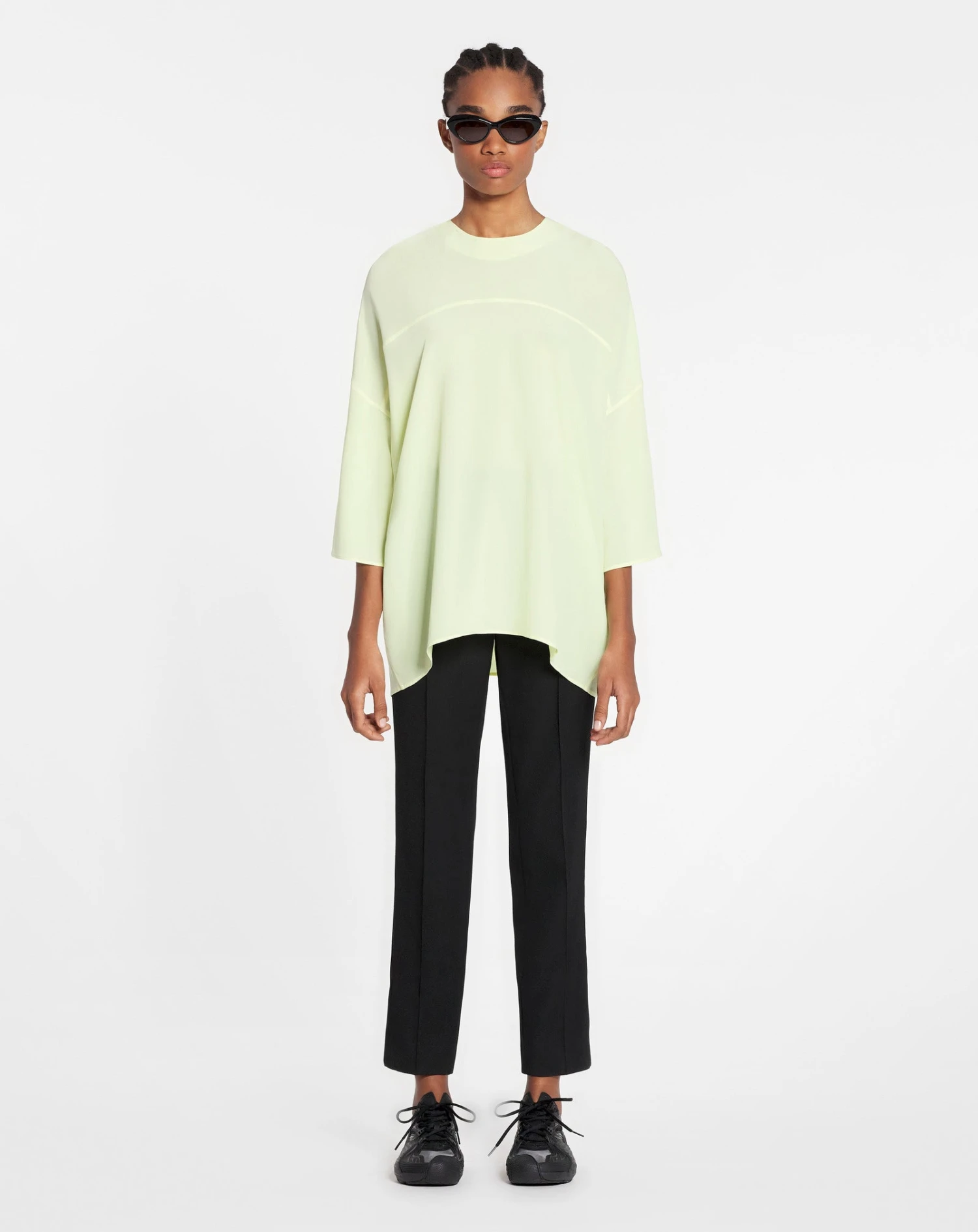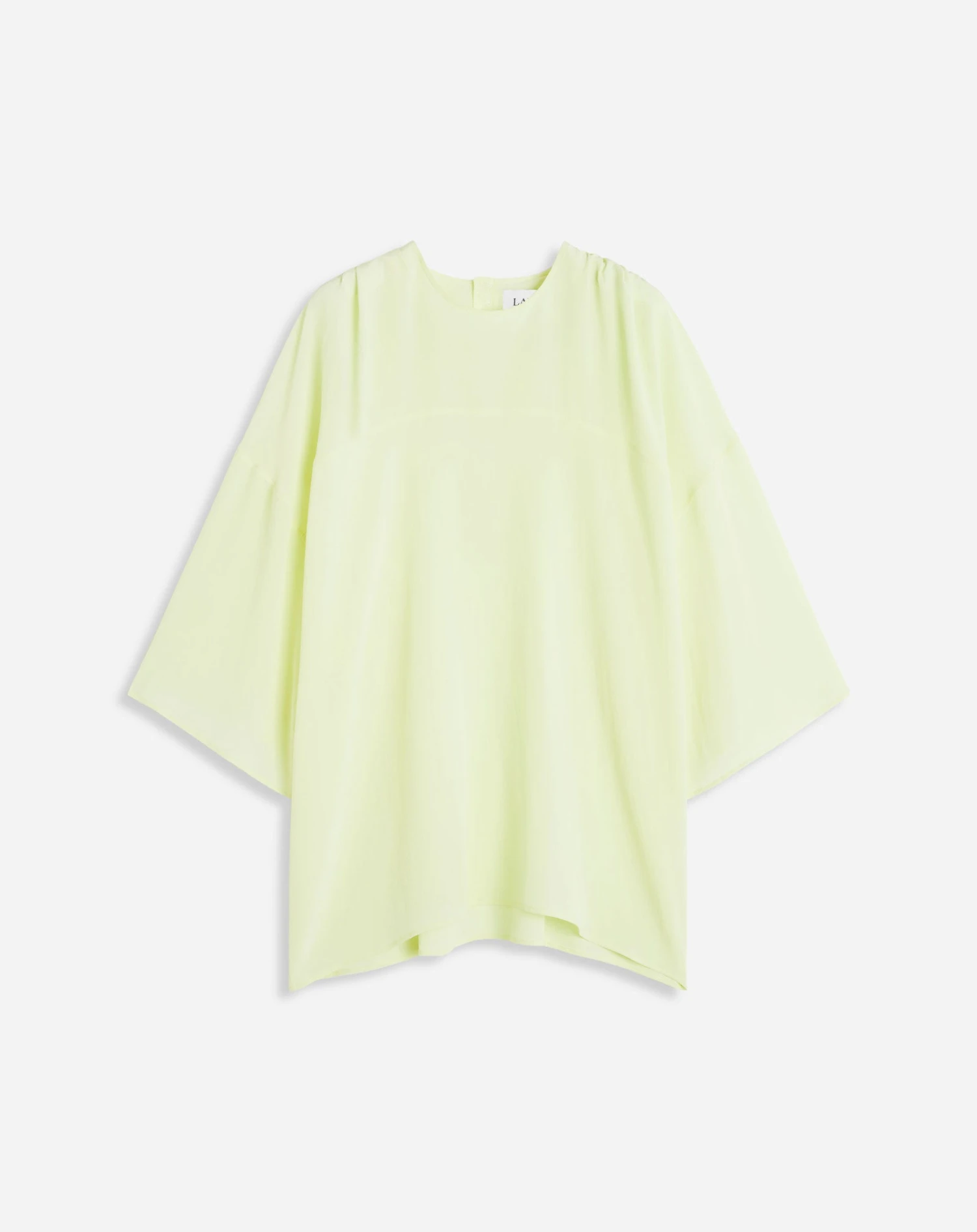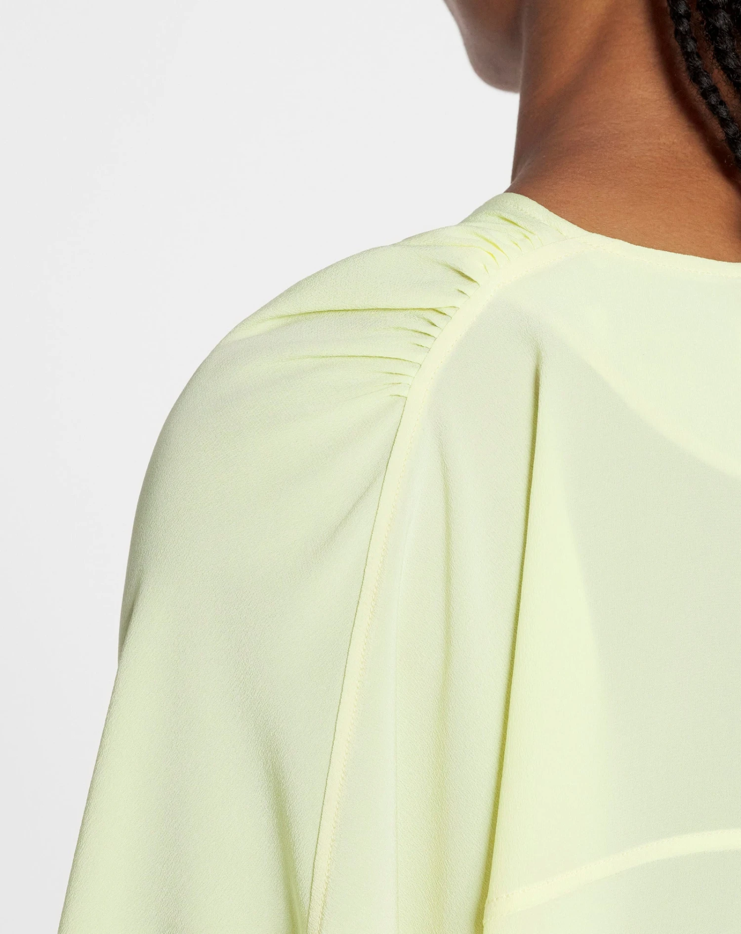 Relaxed volume elbow sleeve top in fluid silk. One button fastening on the back.