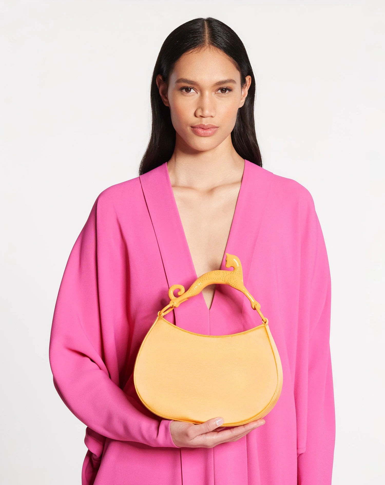 Embellished with a sculptural cat handle, this hobo bag with soft and elegant lines can be carried in the hand or over the shoulder.