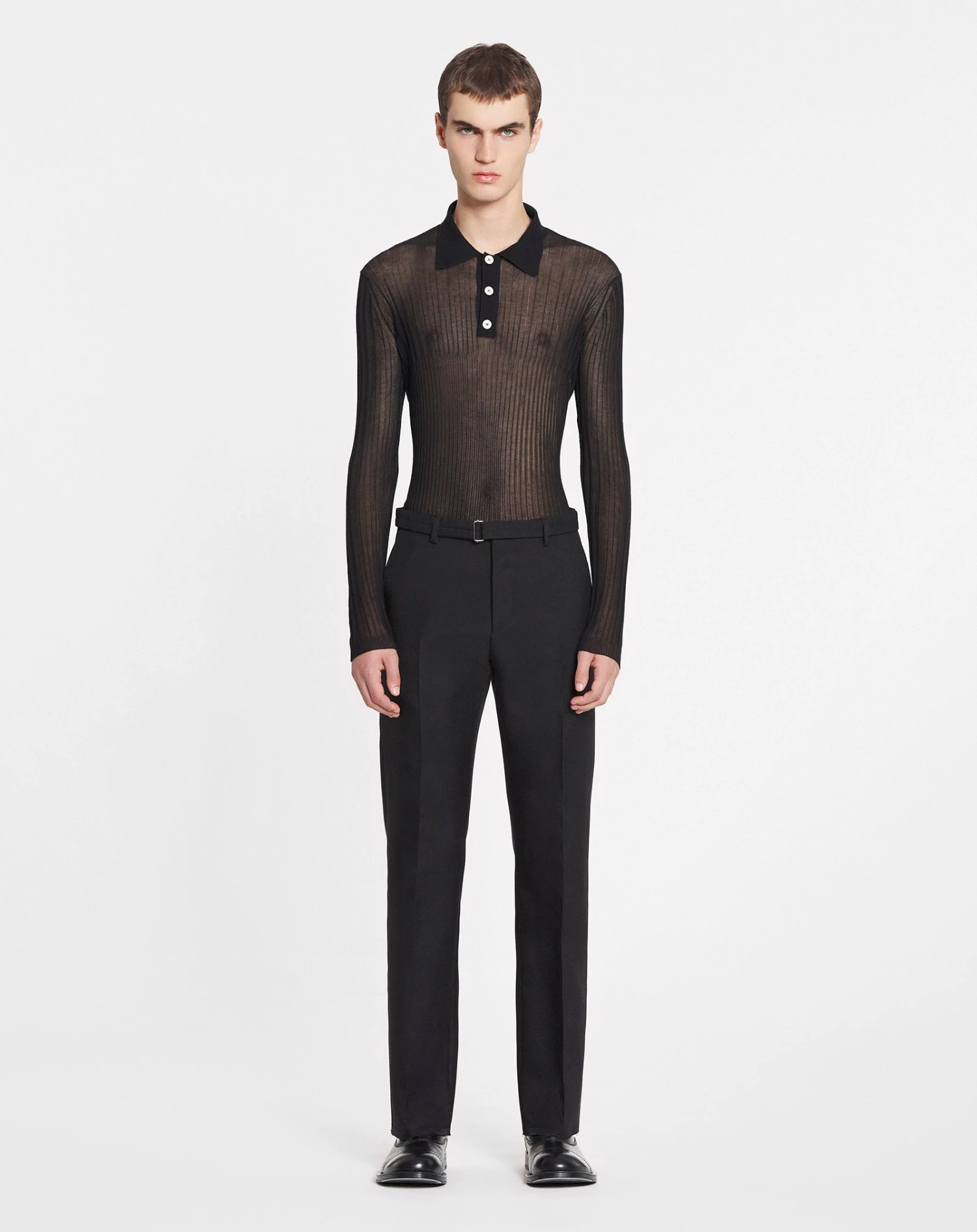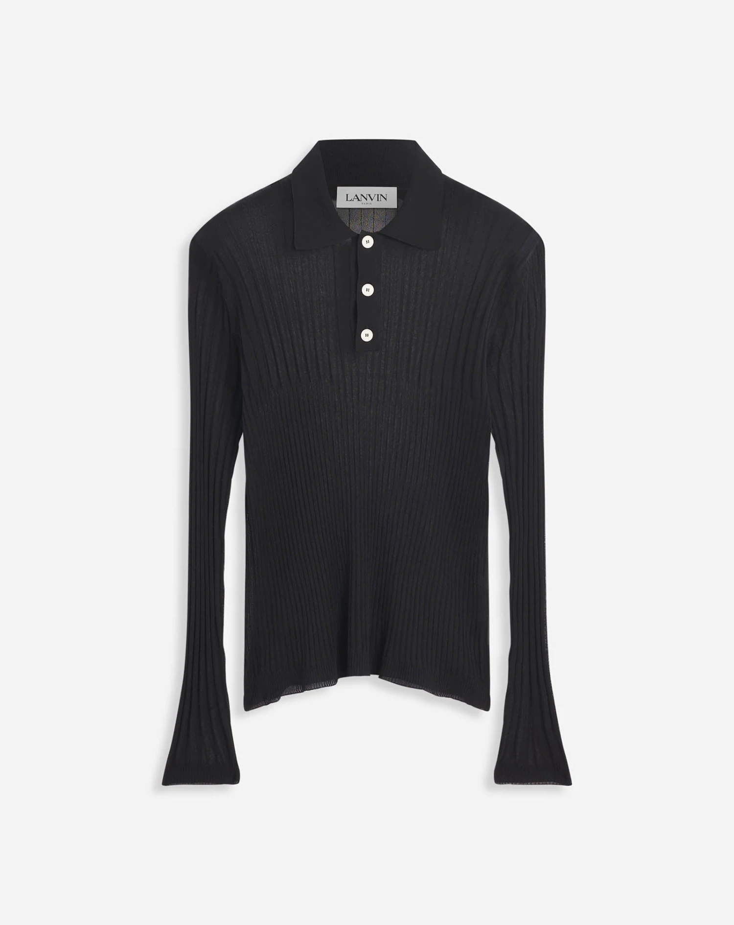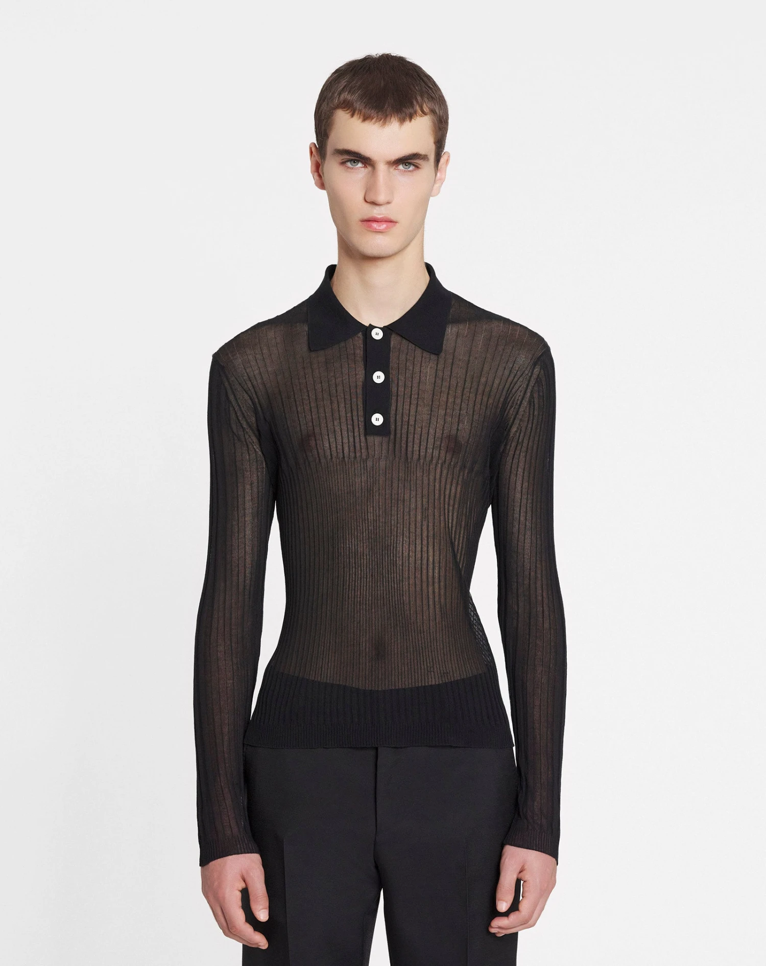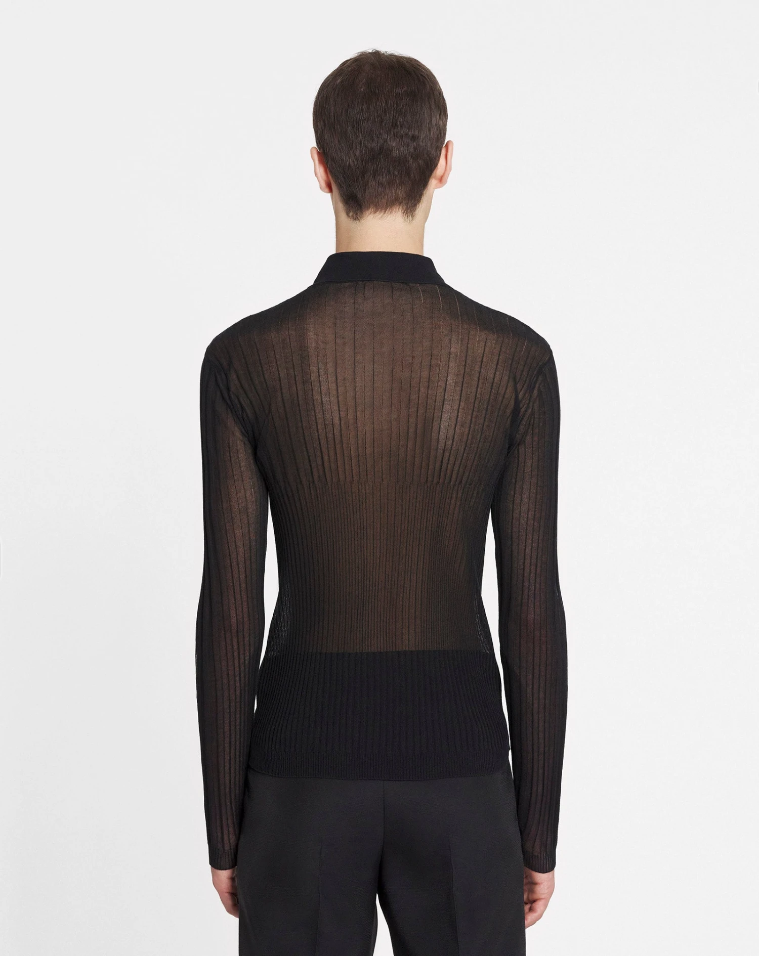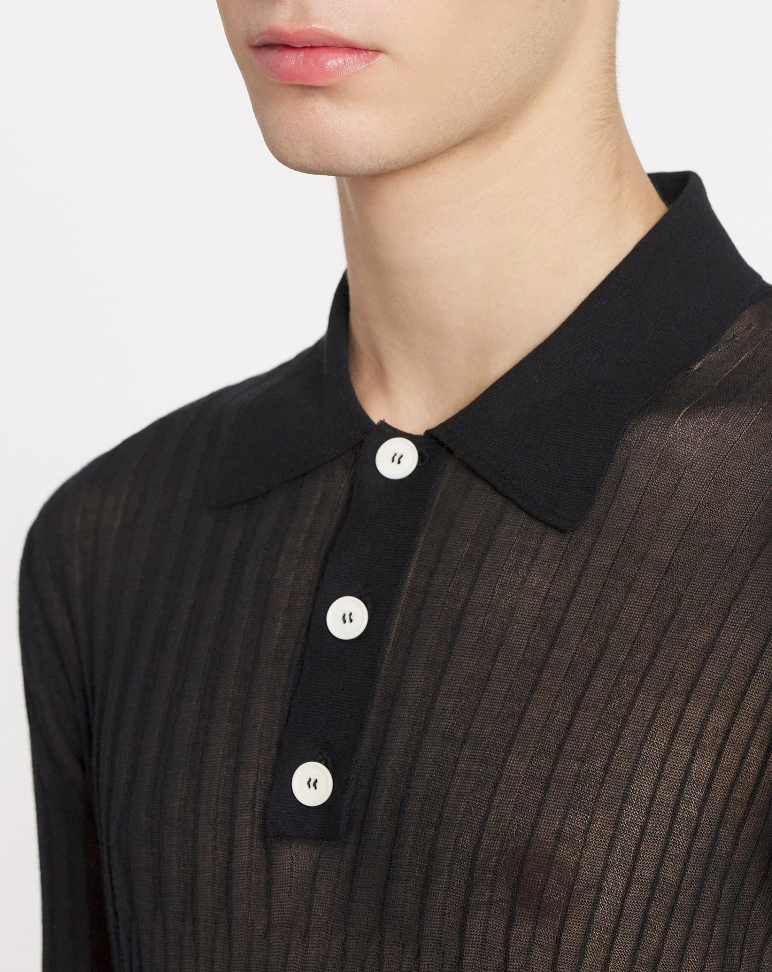 - Sheer polo in silk and cotton with a round neck and long sleeves