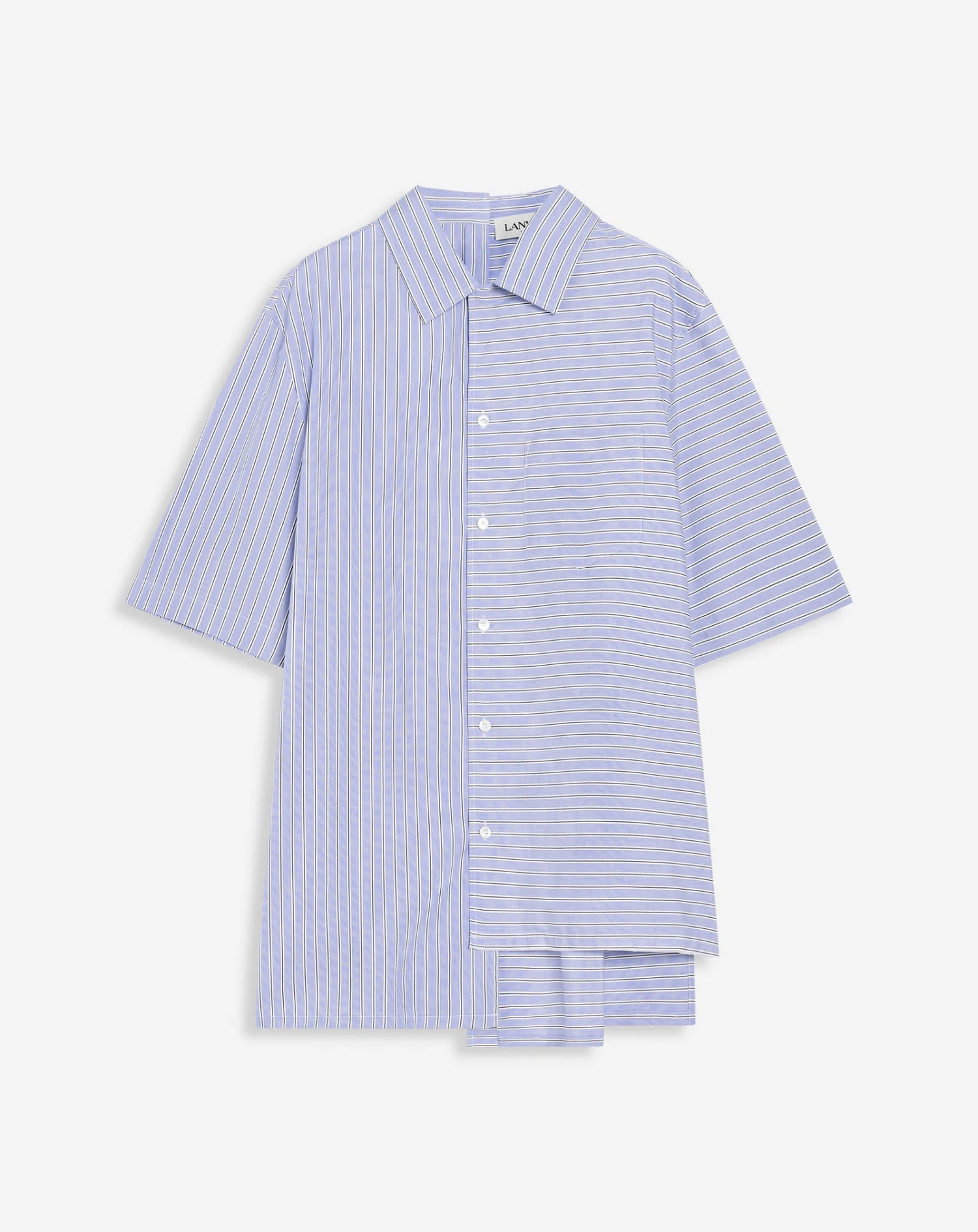 - Shirt with front pocket in wide striped cotton poplin.