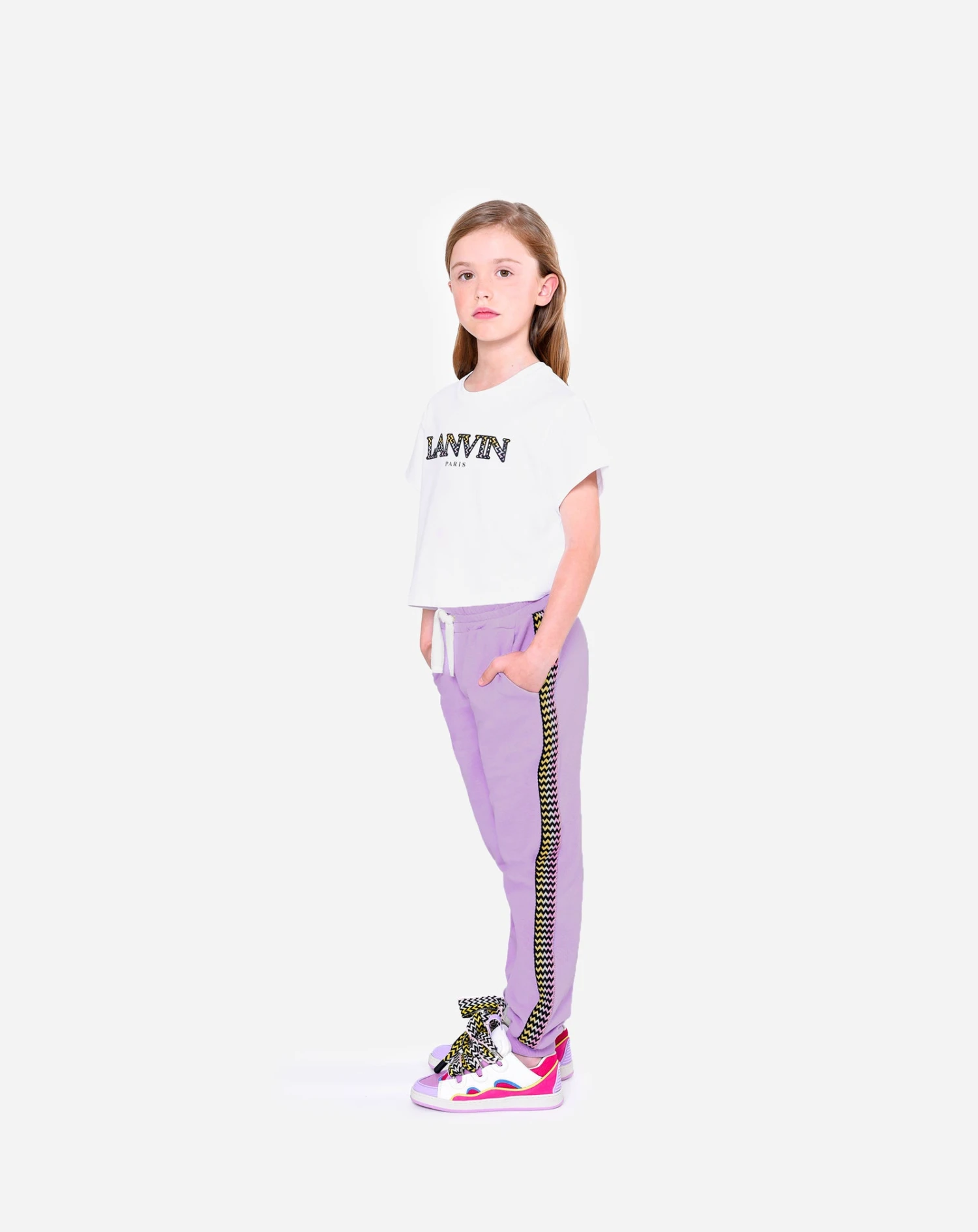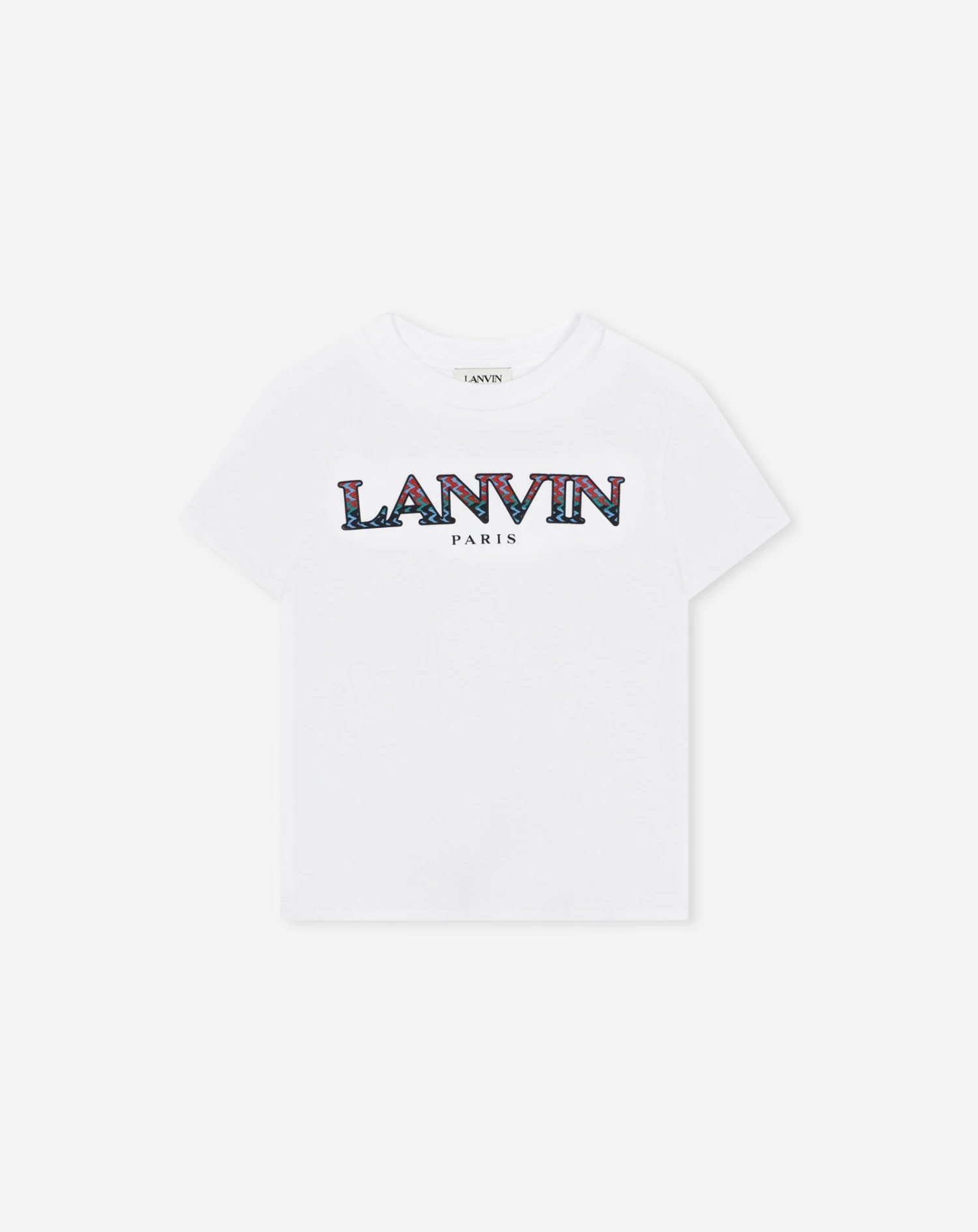 Perfect for big and little ones alike, this Lanvin T-shirt is inspired by the adult collection. This cotton garment features short sleeves and a round neck. The Lanvin logo also appears on the chest in a multicoloured zigzag print.