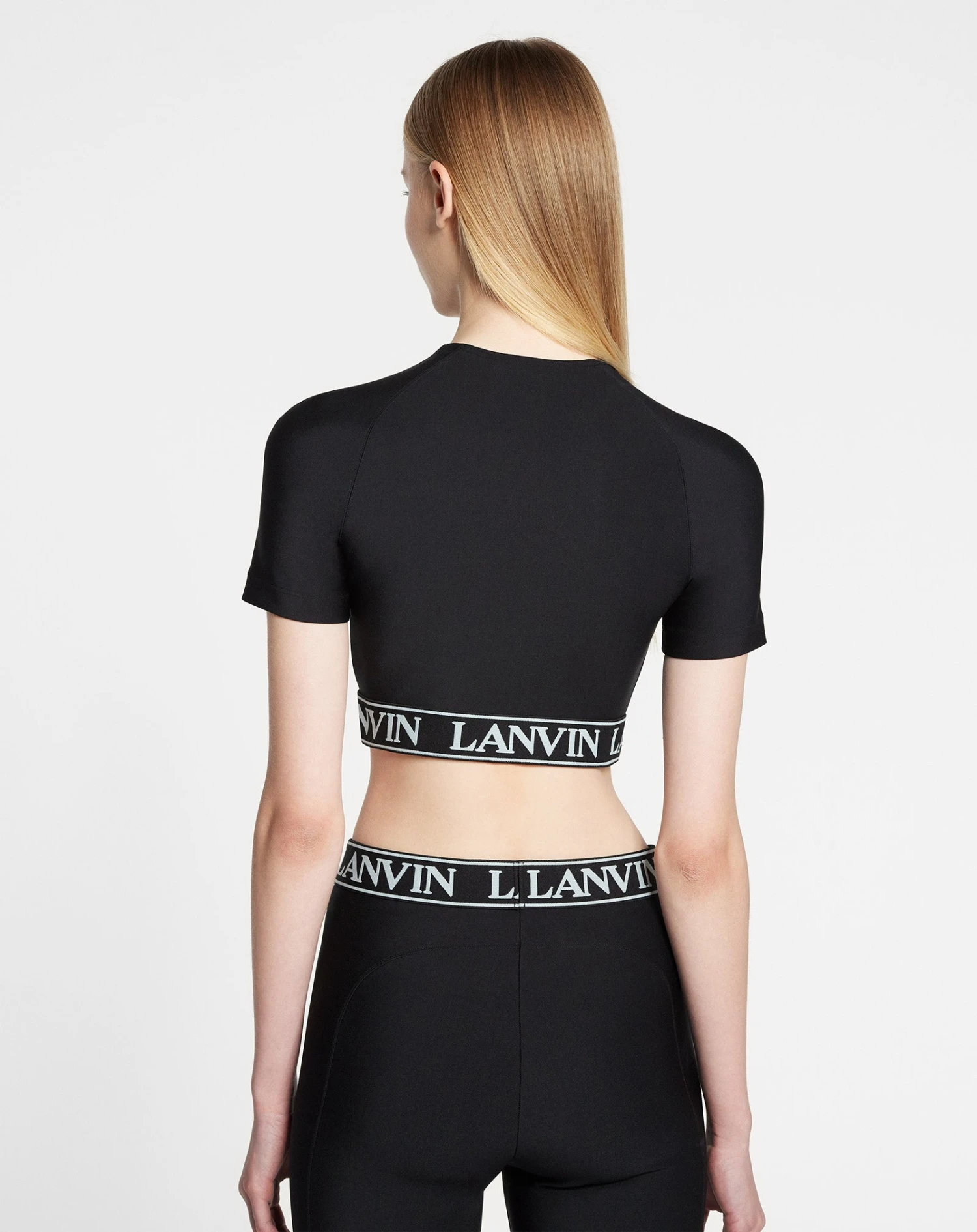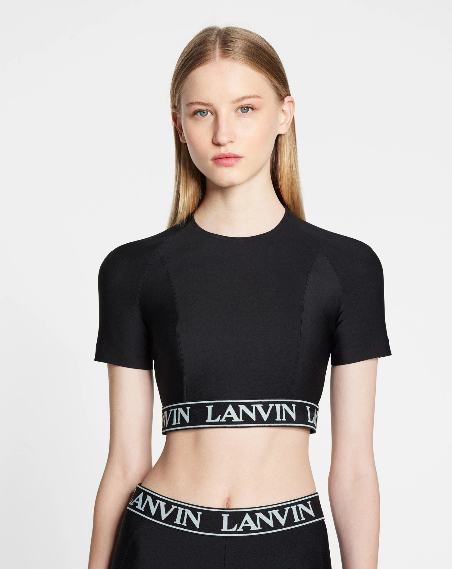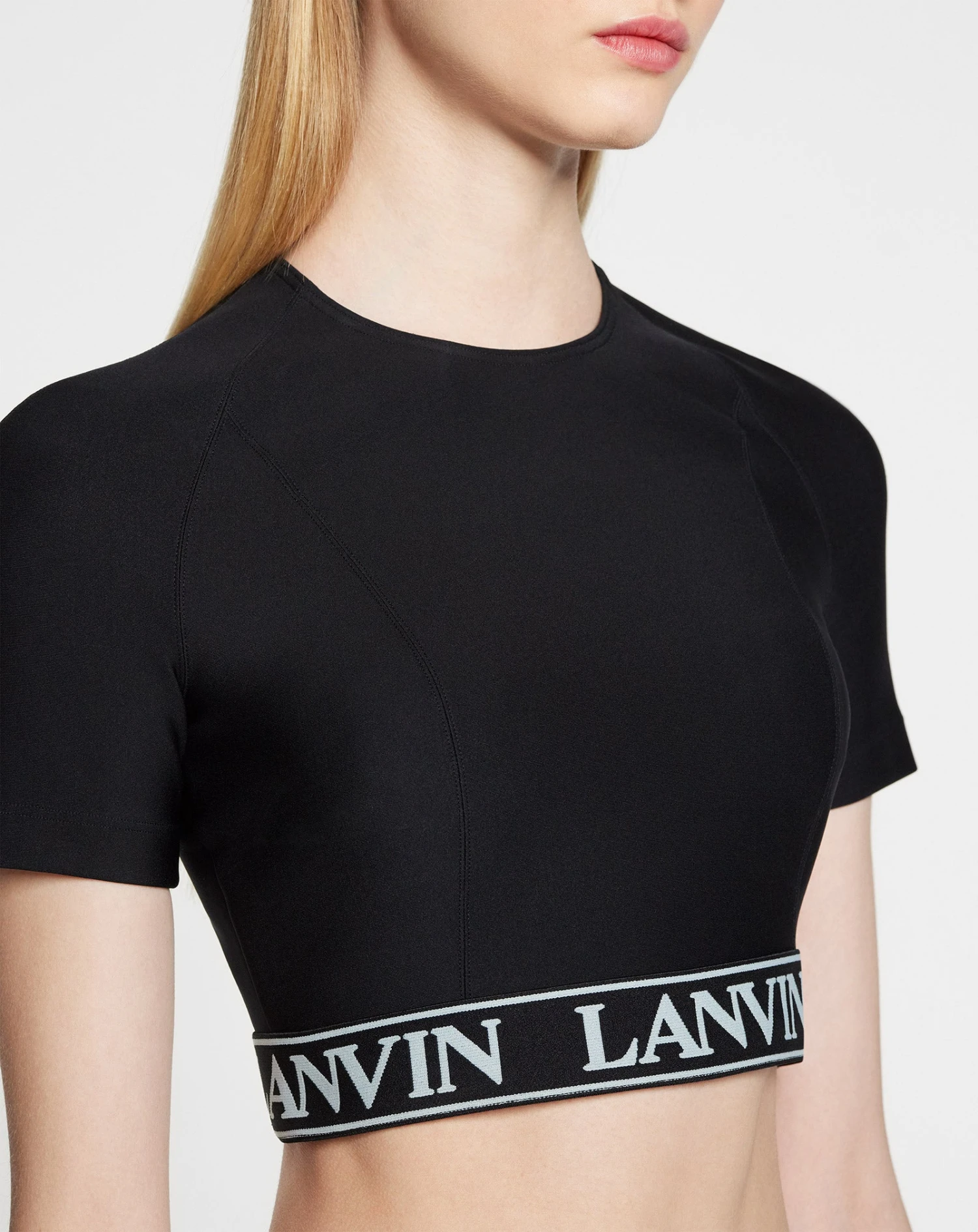 - Fitted short-sleeve technical fabric crop top