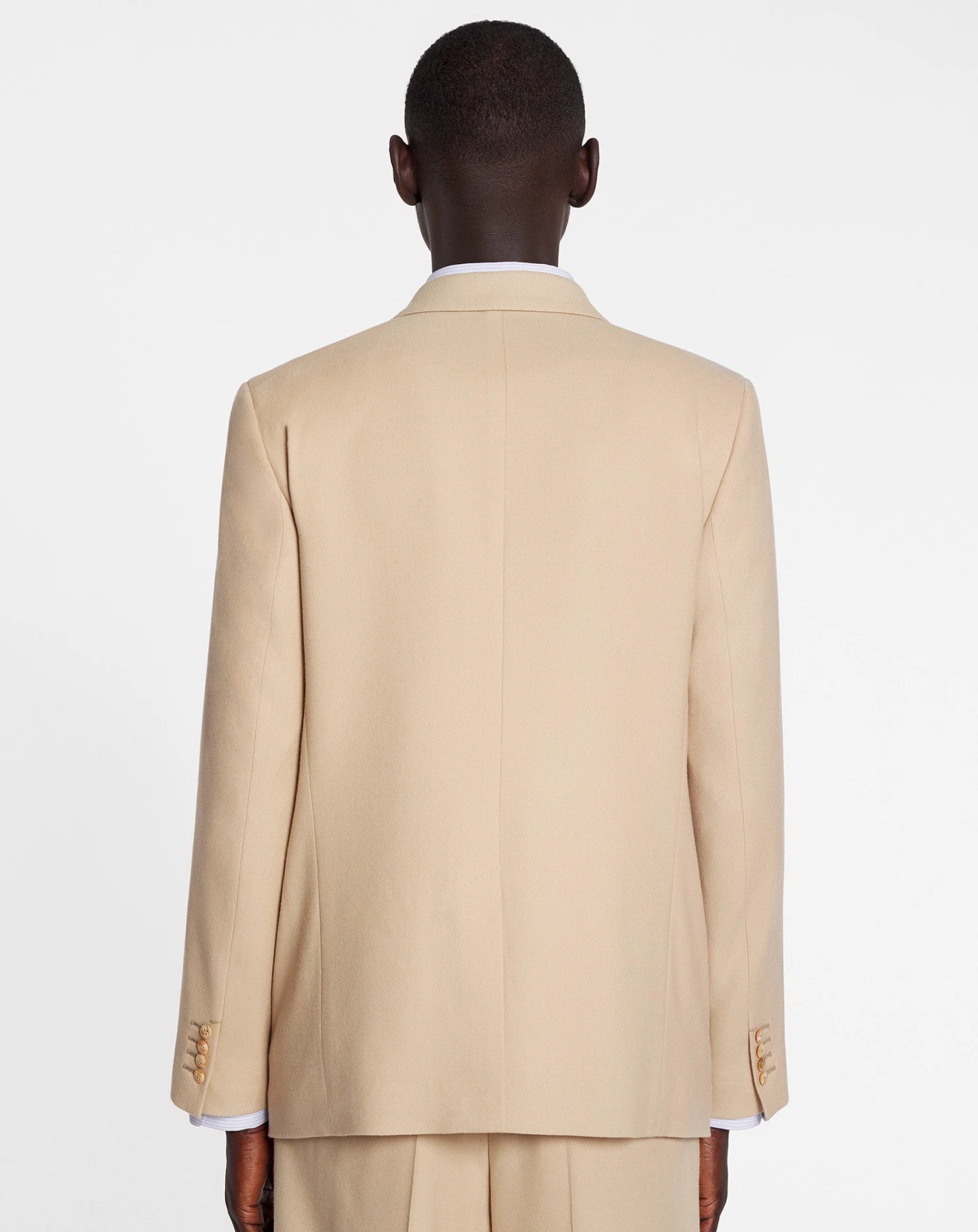 - The jacket features a single back vent and the Lanvin label on the inside left pocket.