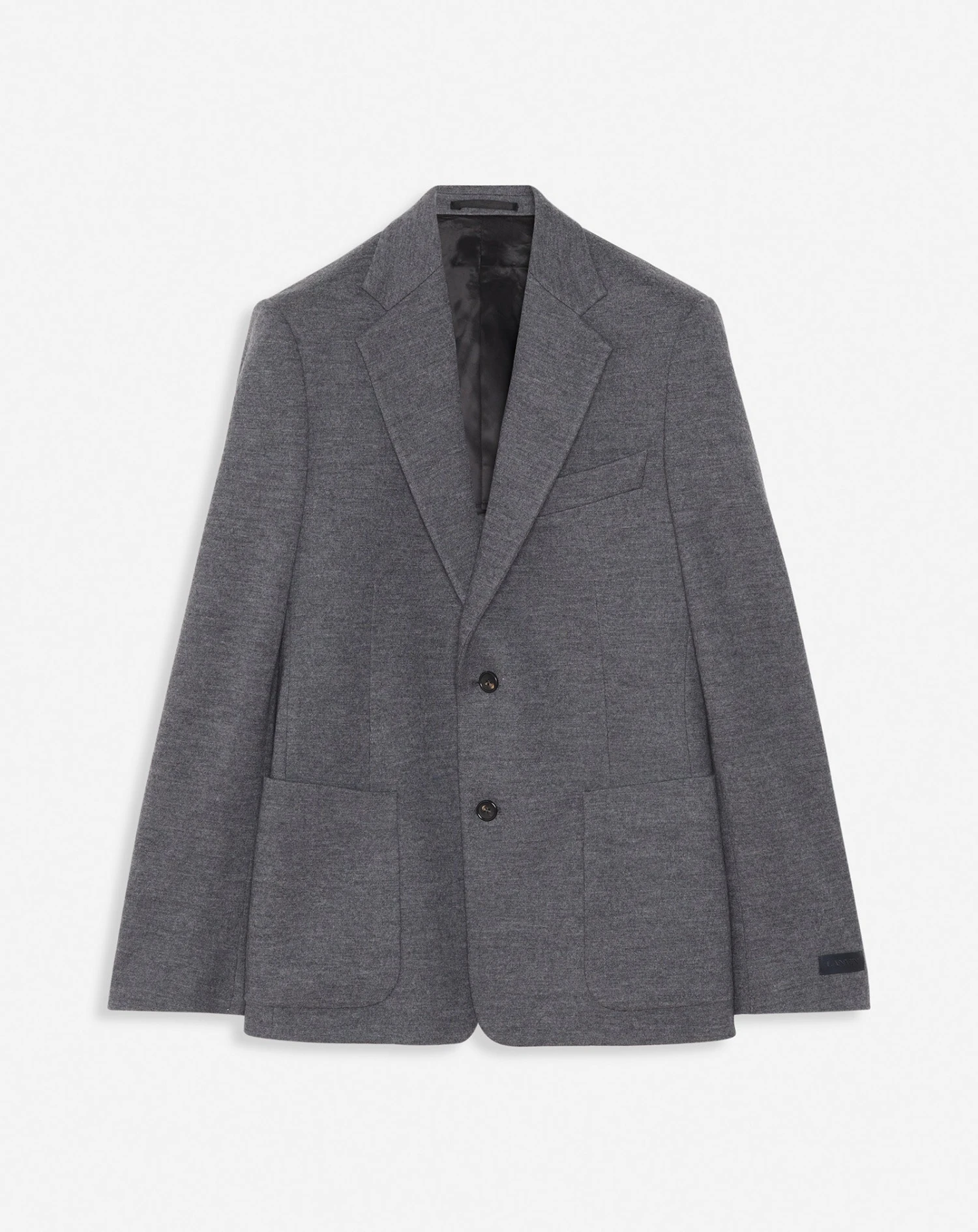 - Classic single-breasted jacket with patch pockets, notch lapels, a slightly fitted waist, and soft shoulders