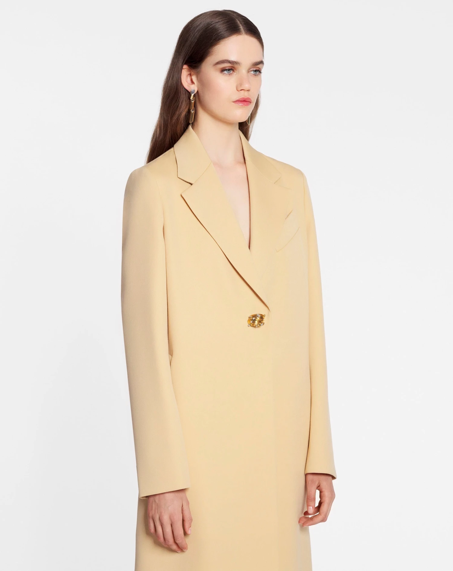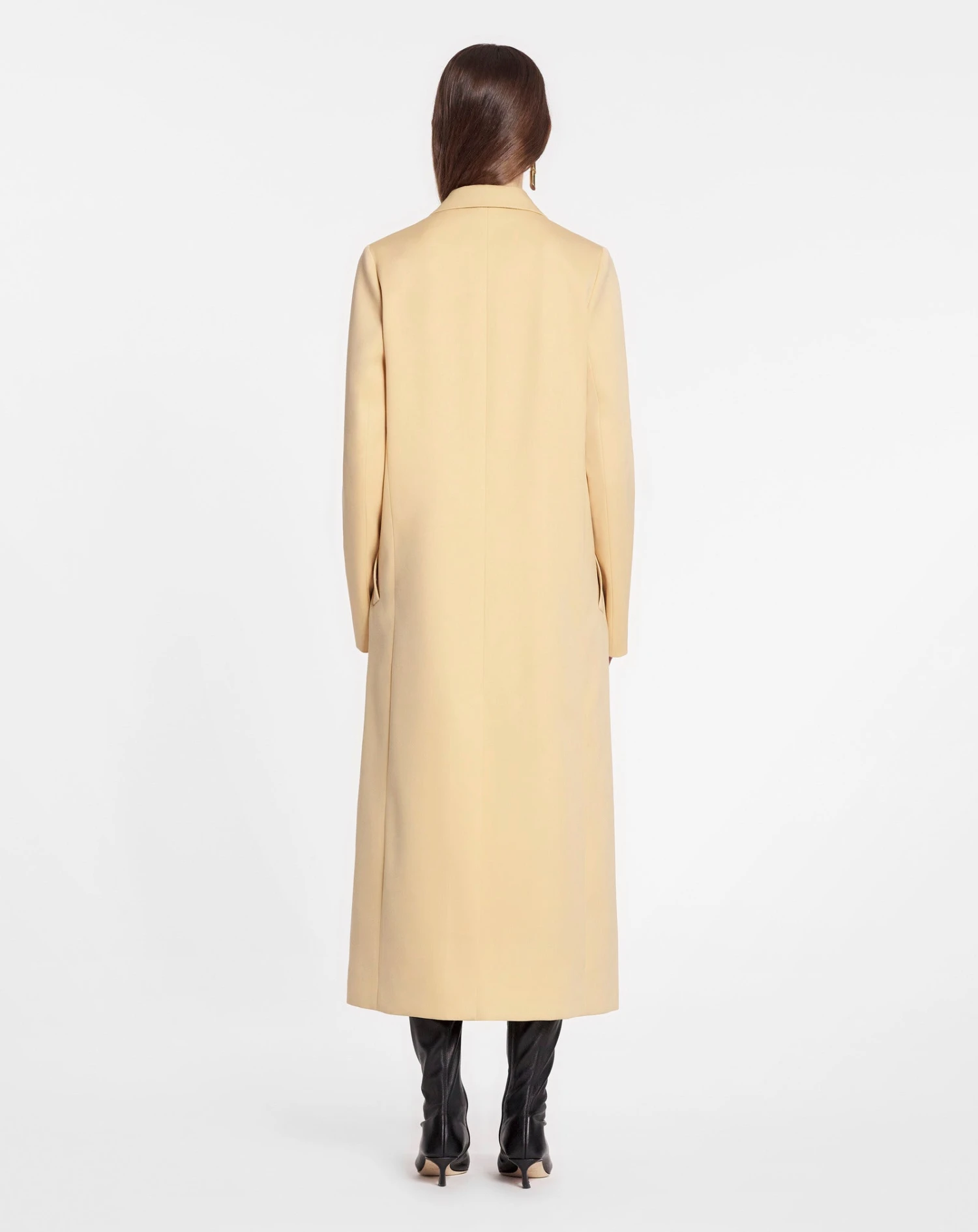 - Slim fit fully lined mid season tailored coat in textured mid weight suiting wool.