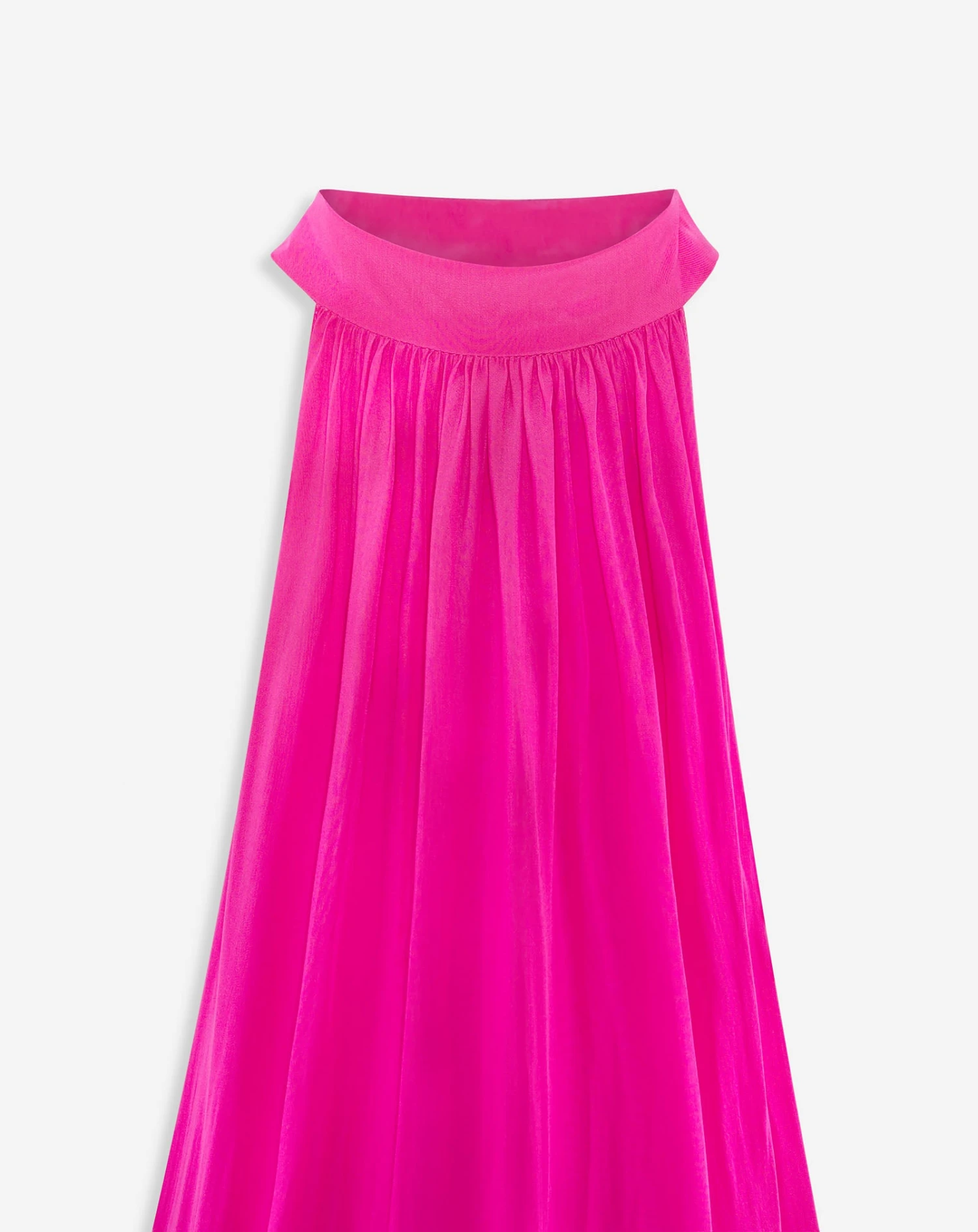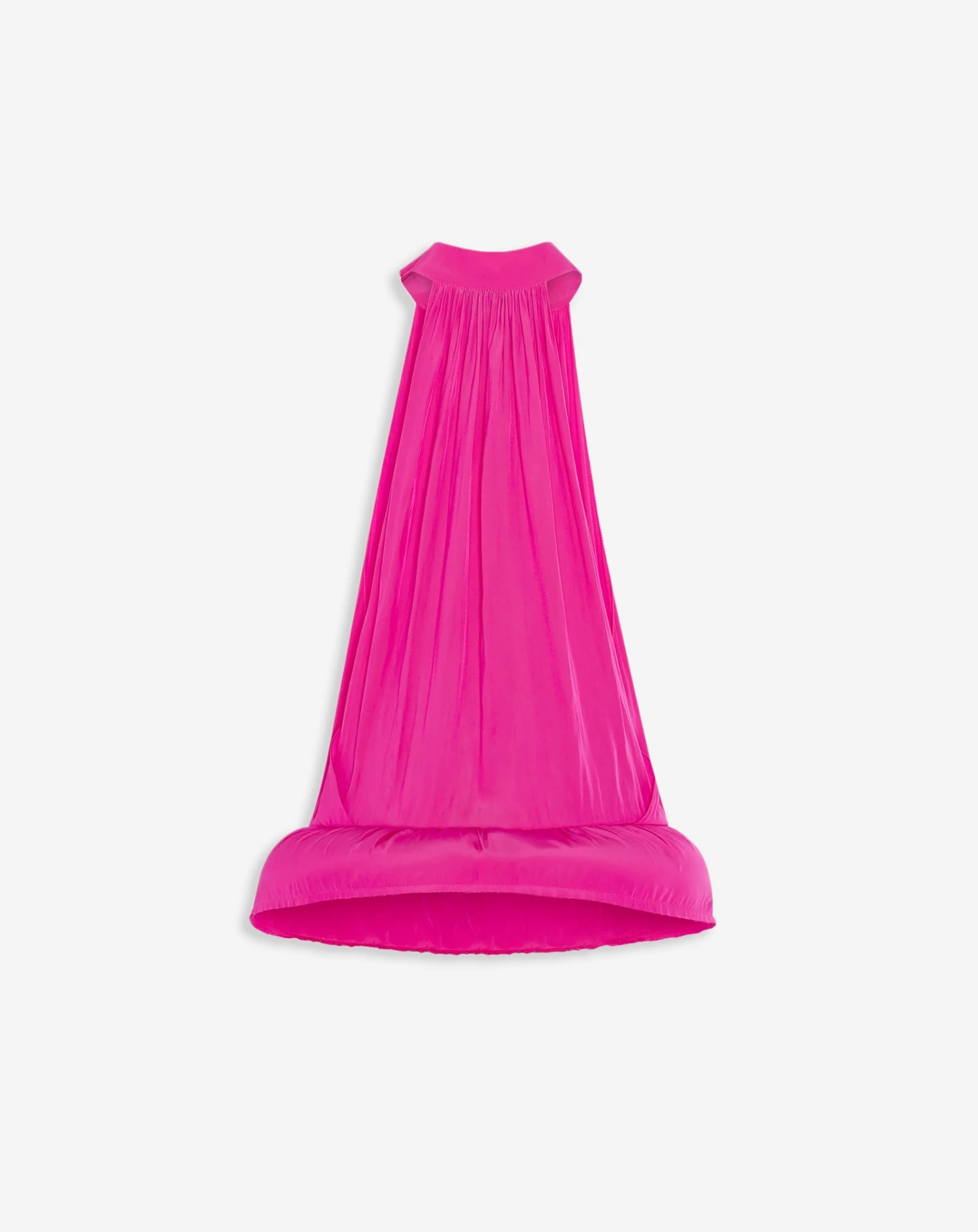 - Sleeveless top with high neck and horsehair, in the Maison’s signature Charmeuse fabric.