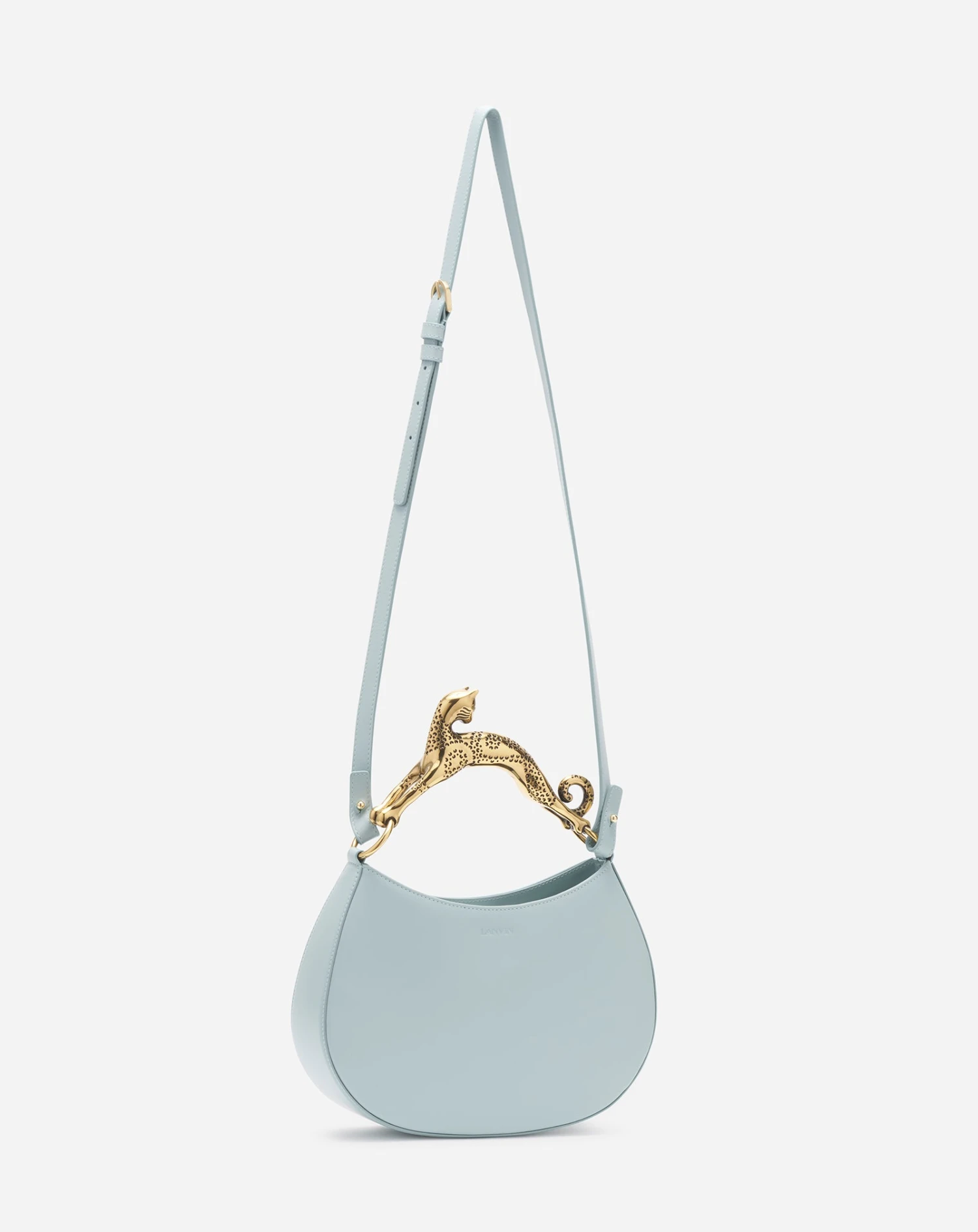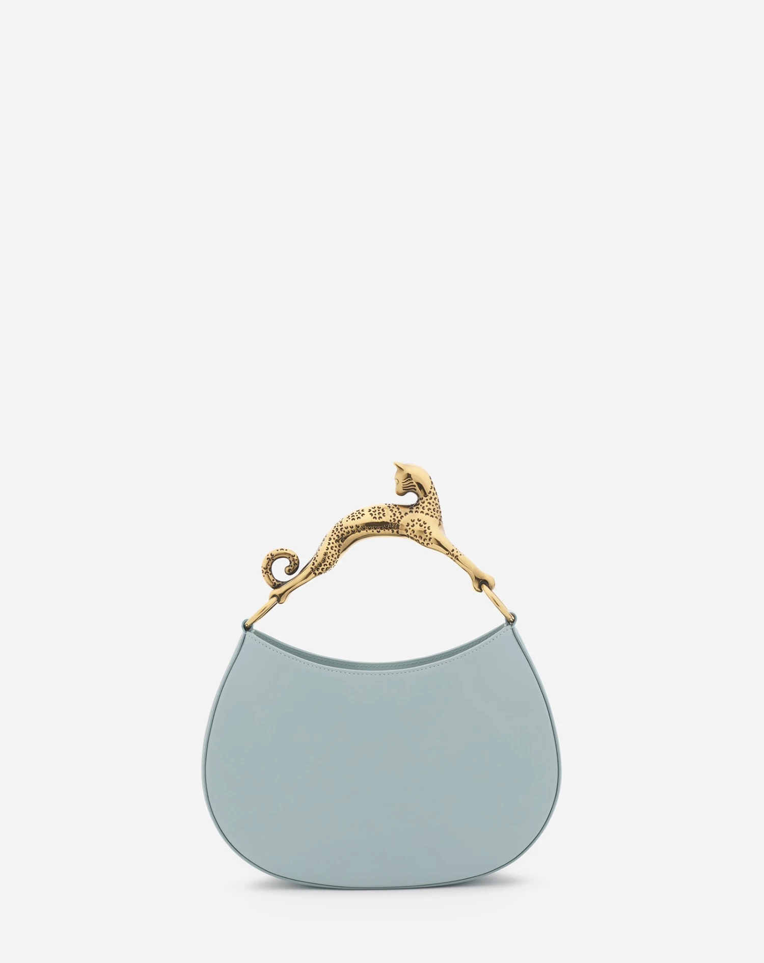 Embellished with a sculptural cat handle, this hobo bag with soft and elegant lines can be carried in the hand or over the shoulder.