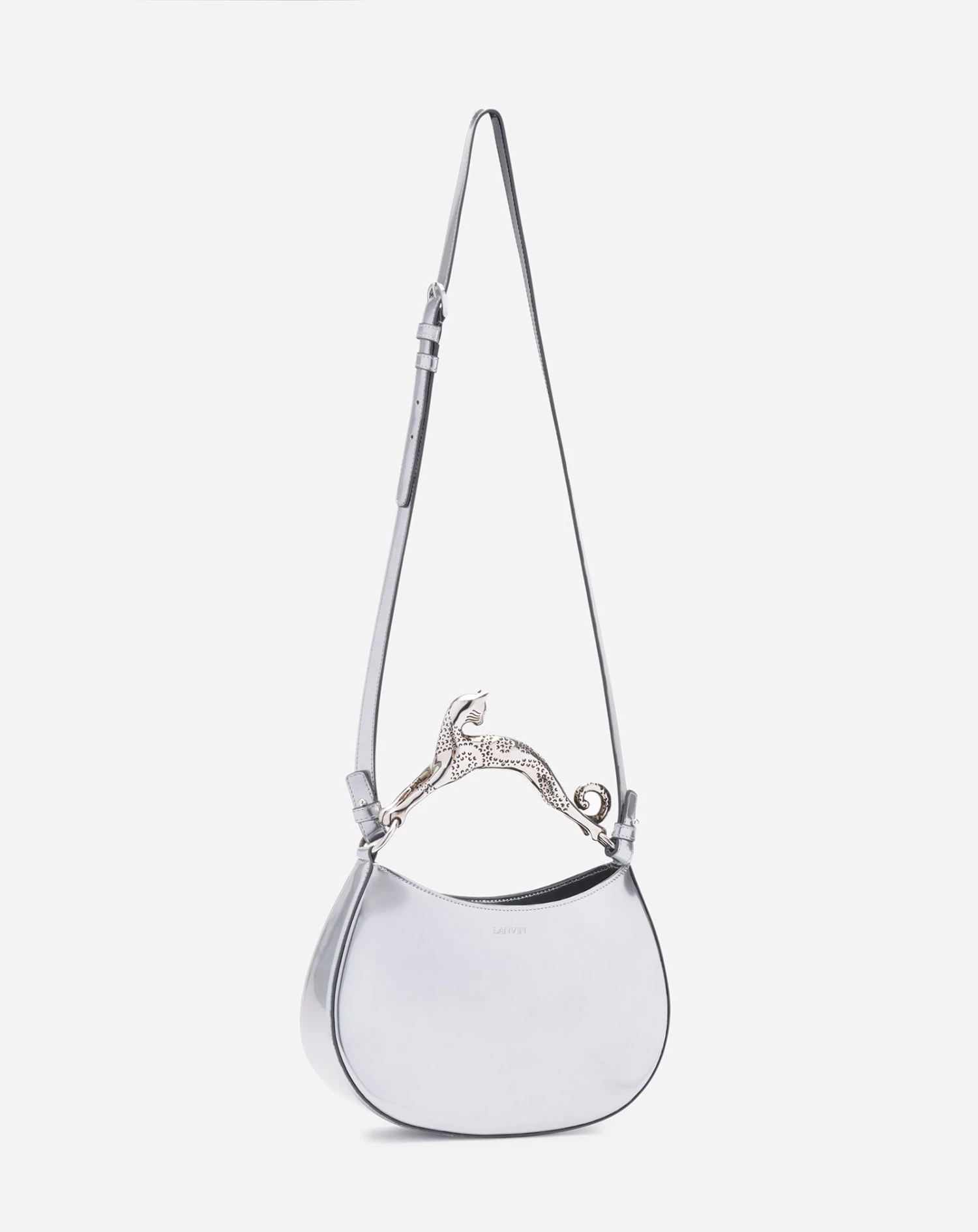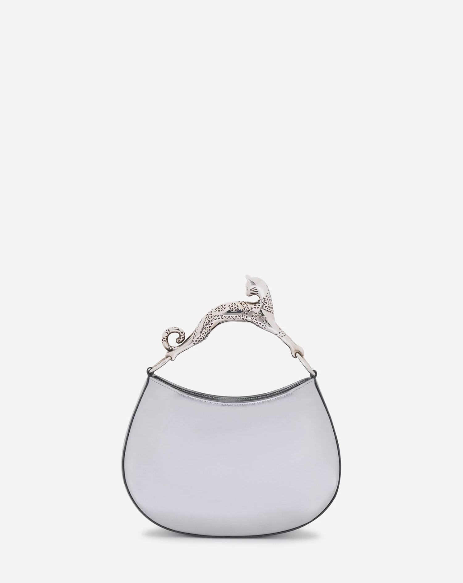 Embellished with a sculptural cat handle, this hobo bag with soft and elegant lines can be carried in the hand or over the shoulder.