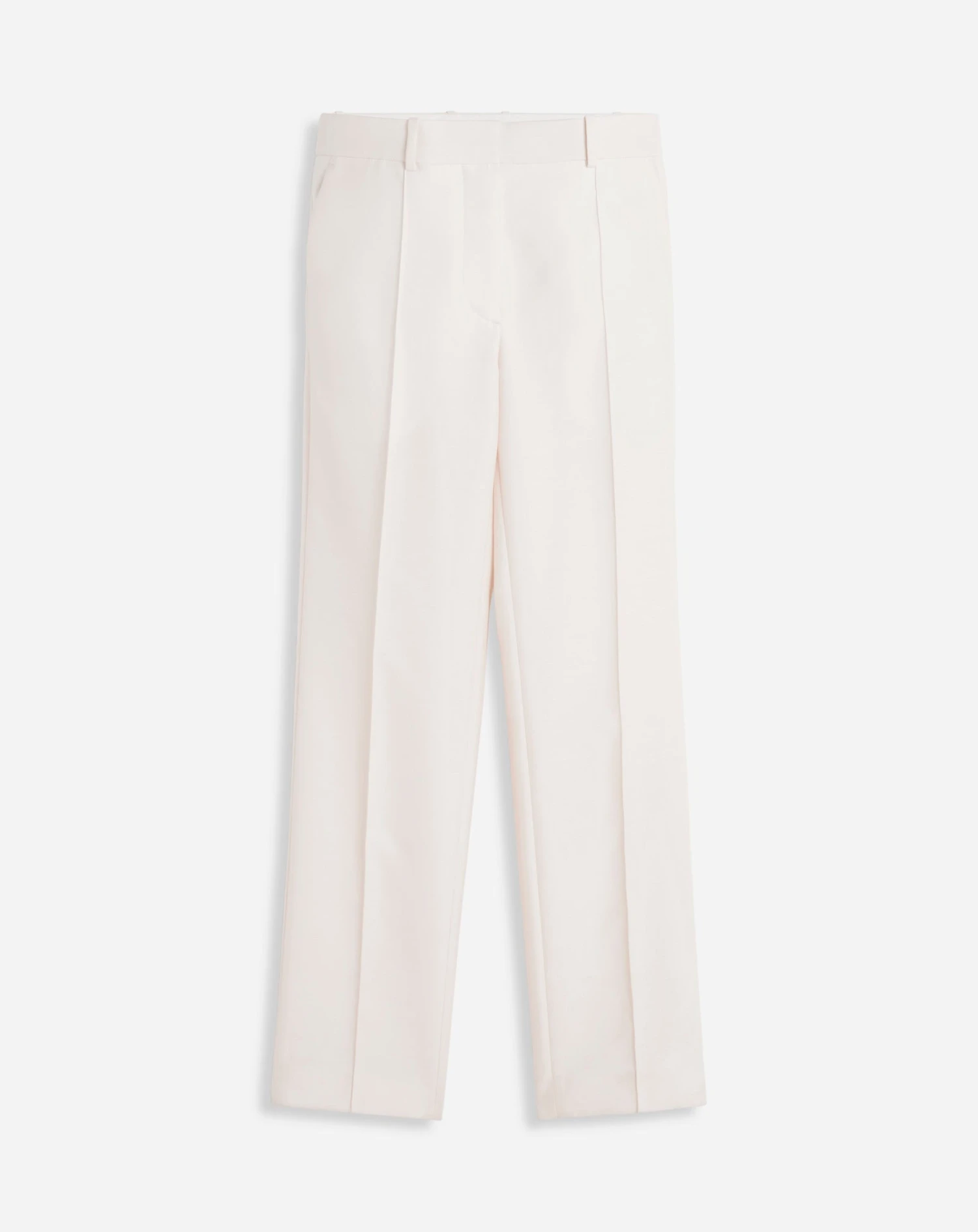 - Slim leg, ankle length, tailored trousers featuring permanent top stiched crease and Italian pockets.