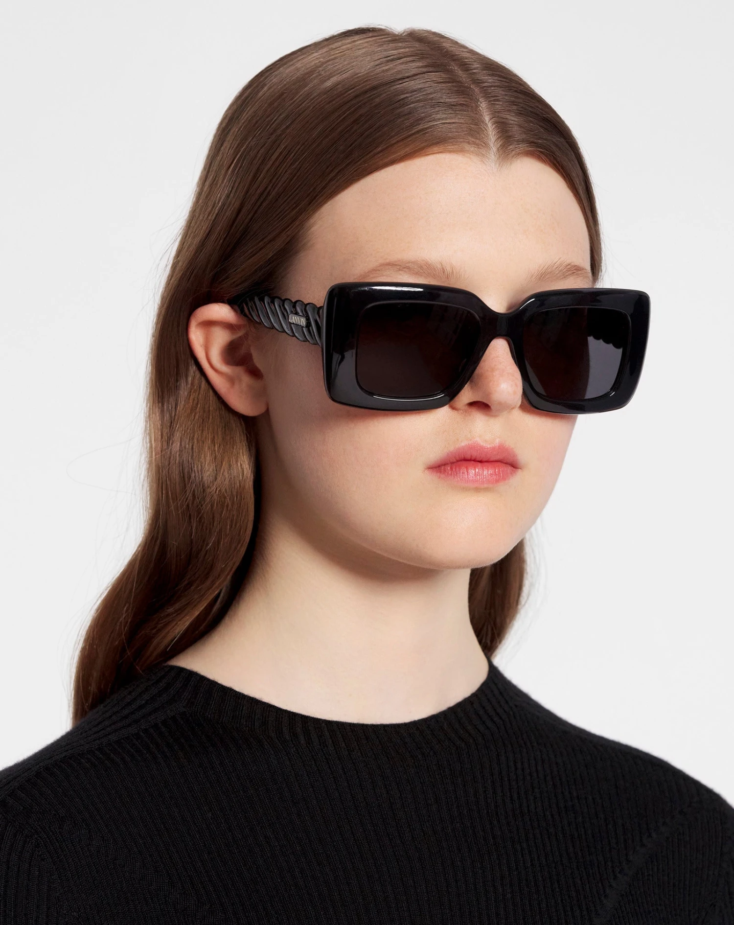 - Lightweight rectangular sunglasses in injection-molded bioplastic with a timeless twisted temple detail and Lanvin signature.
