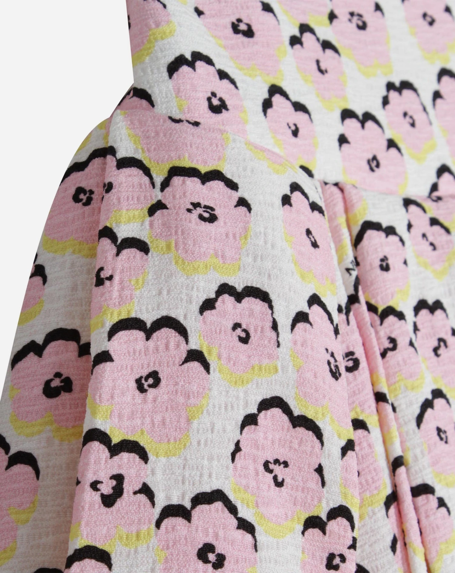 This Lanvin party dress is made of waffle fabric. Inspired by the adult collection, it features pleat details that accentuate the garment’s flared skater cut. Multicoloured daisies appear alongside the Lanvin logo.