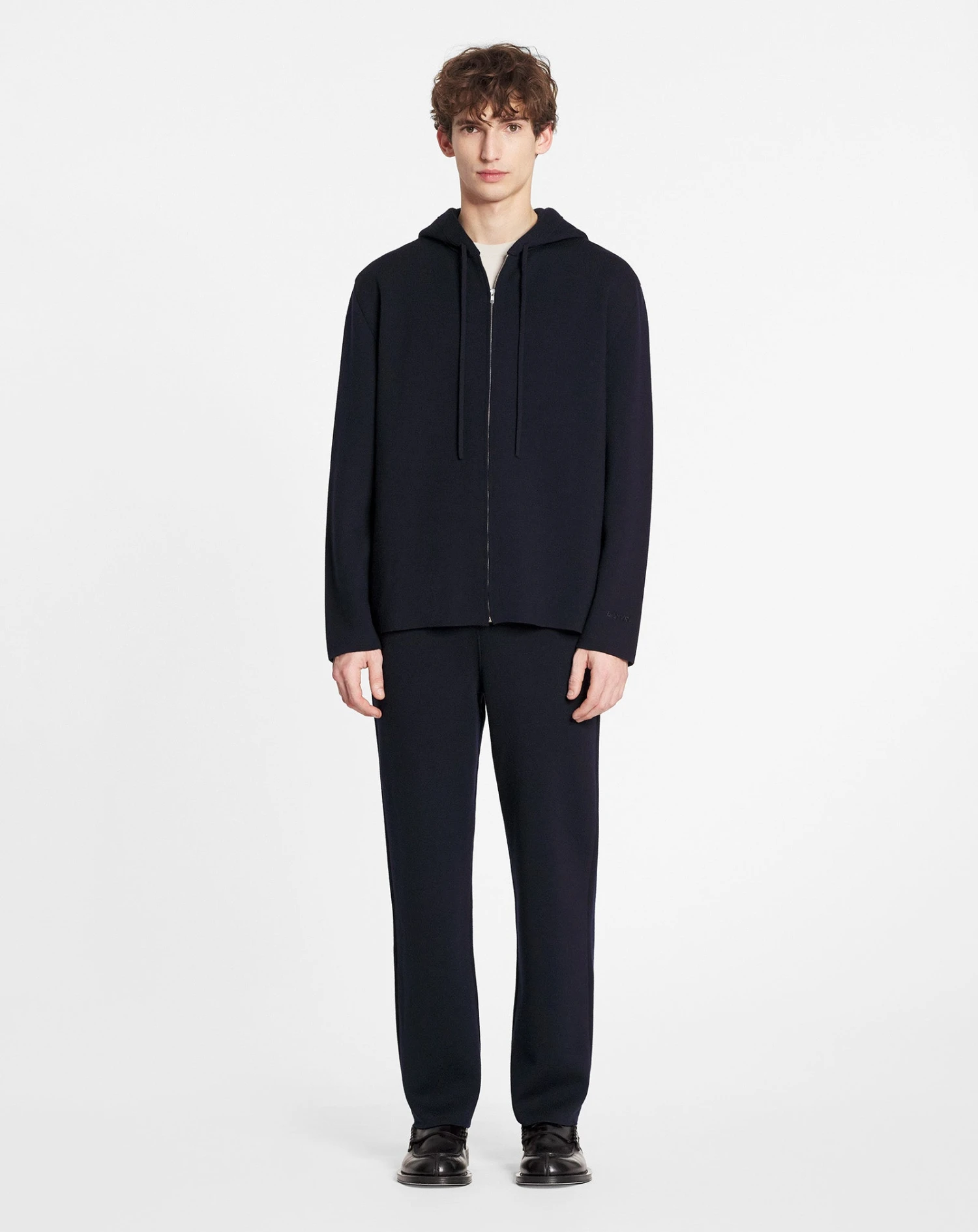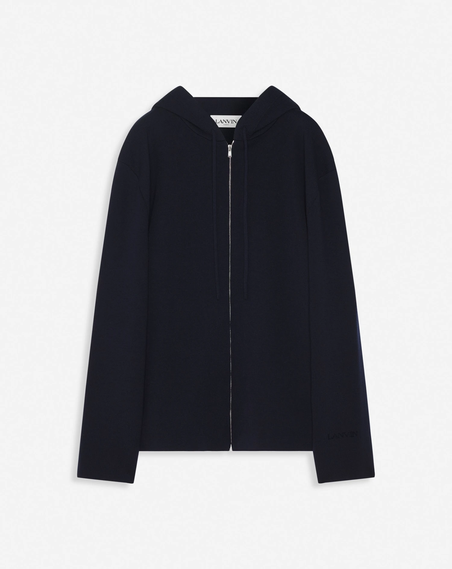 - Wool and viscose zip-up hoodie with embroidered Lanvin logo detail