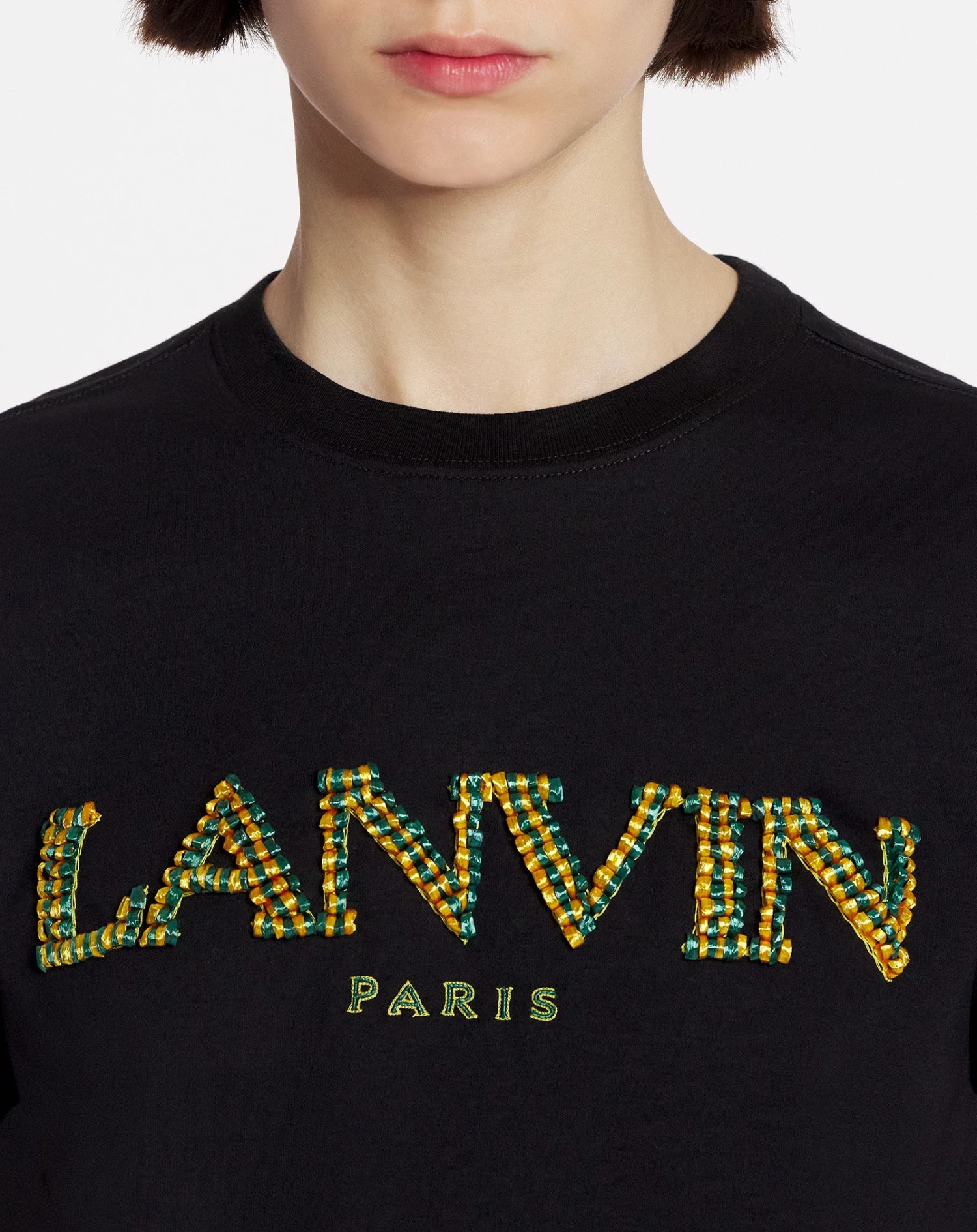 - Oversized jersey T-shirt with embroidered Lanvin Paris raffia