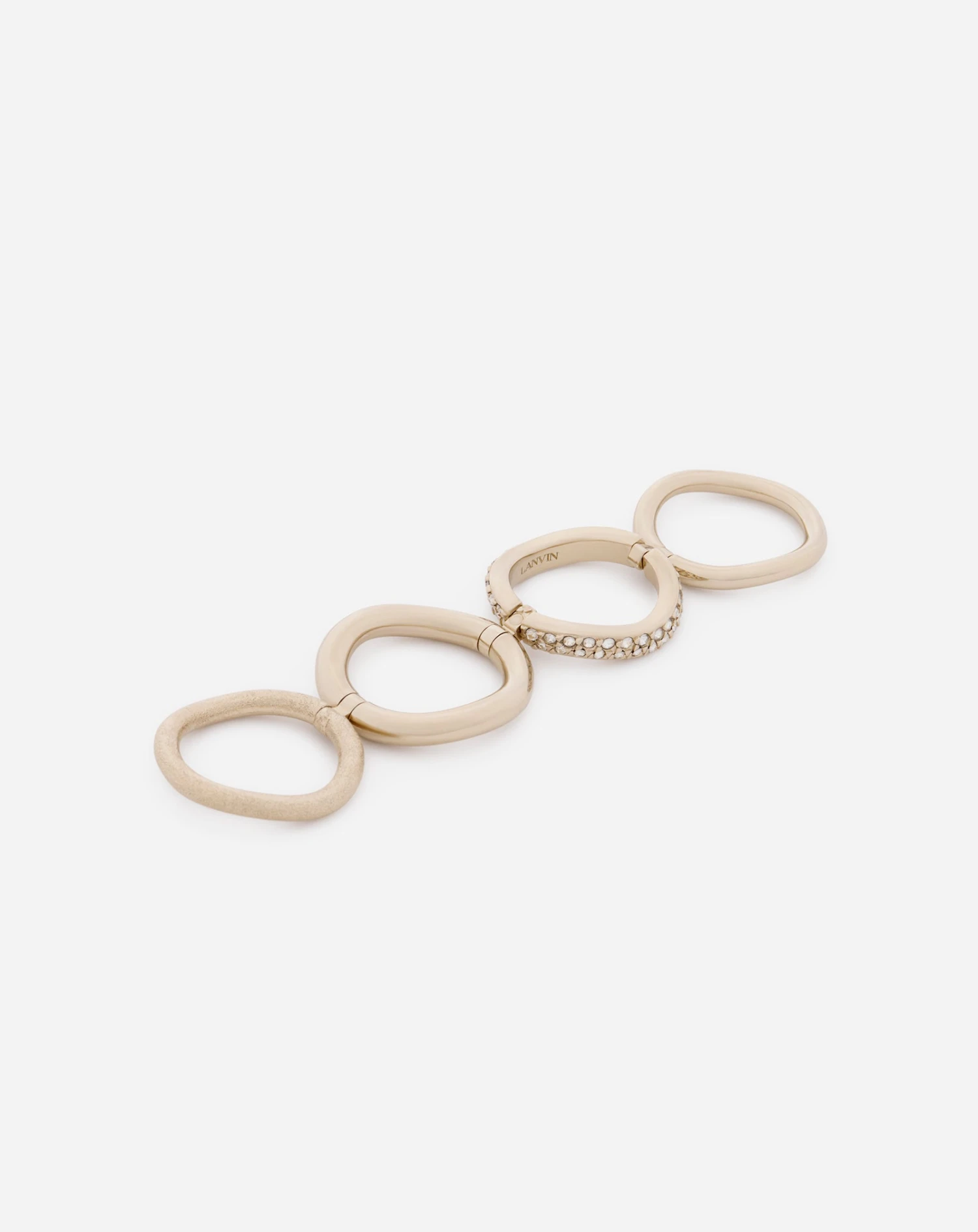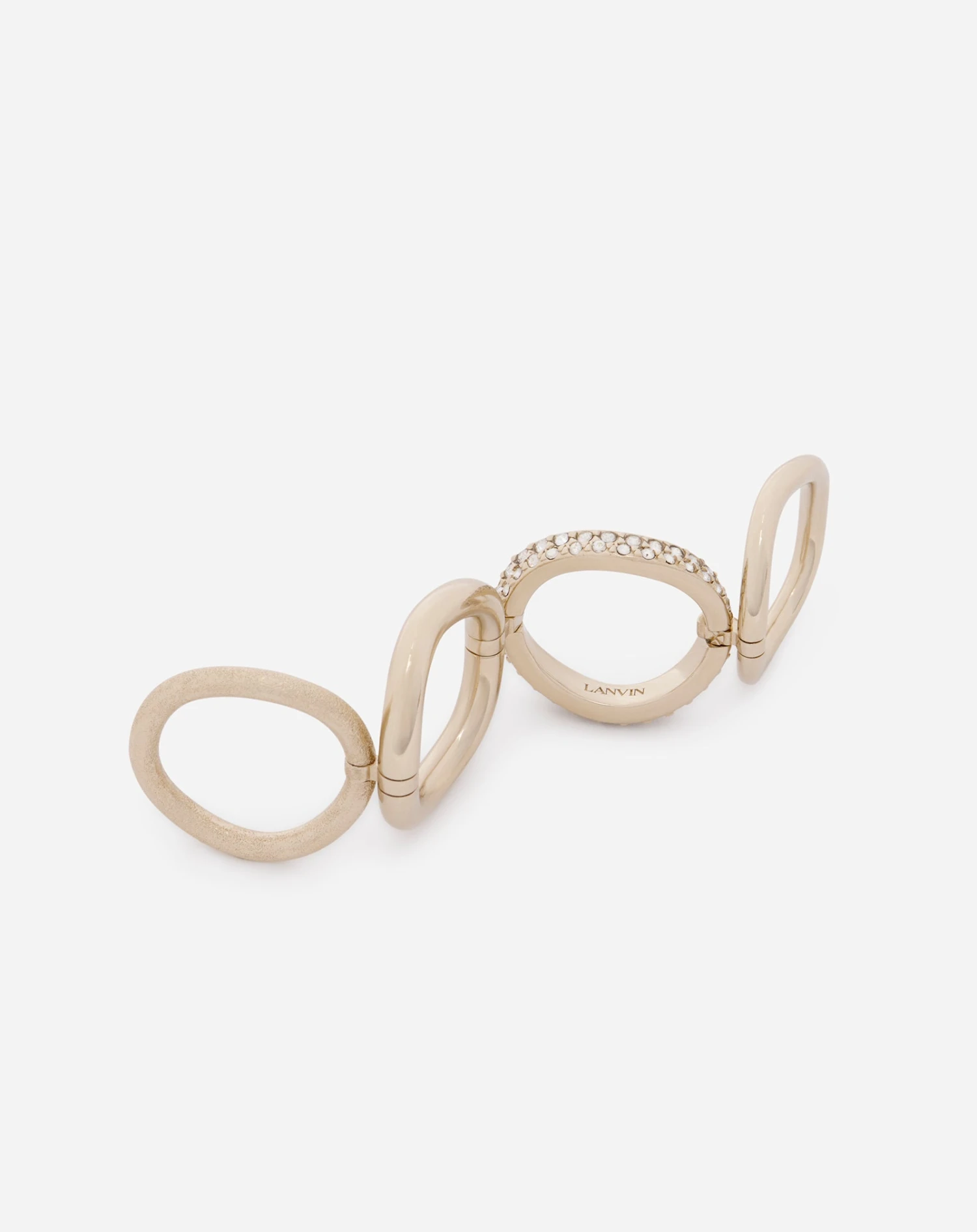 The Partition by Lanvin line is inspired by the graphic design of a musical score, transcribing femininity and elegance through a chain of interlaced rings, of different sizes, and rhinestones.